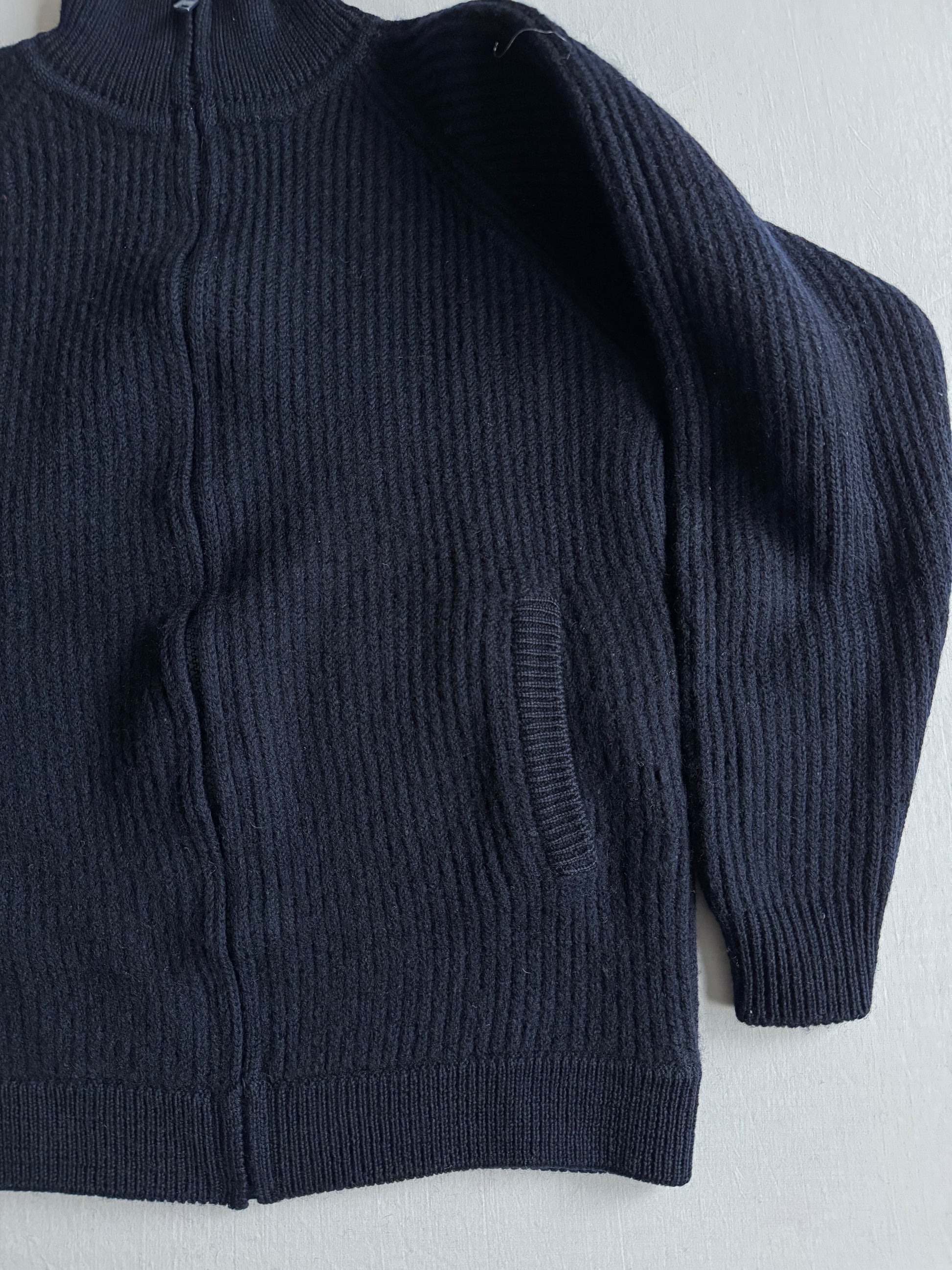 ⚓️ Cardigan Vintage Bărbați Bleumarin cu Fermoar din Lână Virgină – S