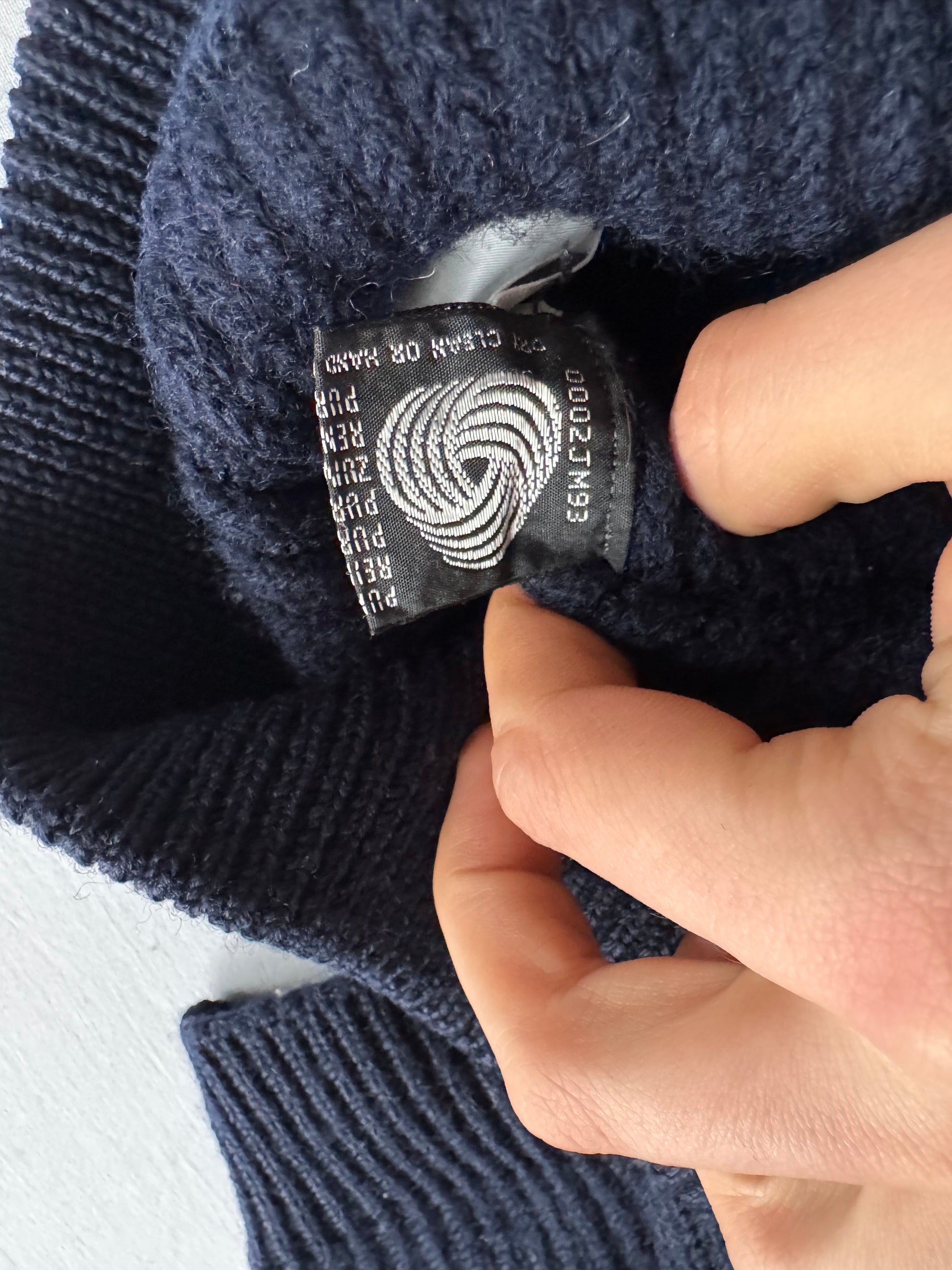 Cardigan vintage pentru bărbați, realizat din 100% pure new wool, în nuanță bleumarin închis, cu design clasic și închidere cu fermoar, ideal pentru layering și ținute casual sau smart. Etichetat S bărbați, piesă păstrată în stare foarte bună.