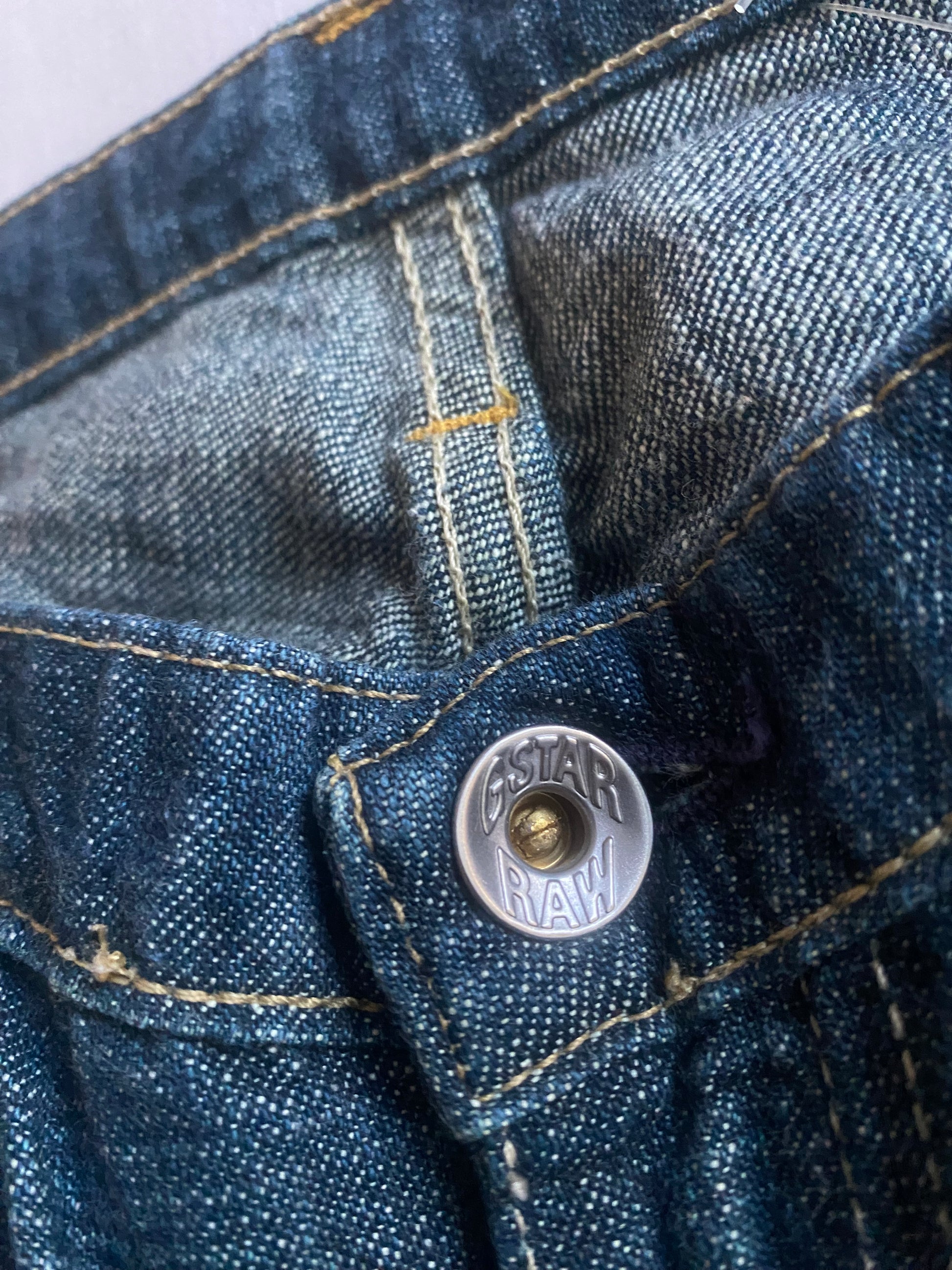 Jeanși Y2K G-Star cu croială low hip și flared, fabricați în Italia din denim de calitate. Designul este specific începutului anilor 2000, cu fit relaxat și deschidere mai amplă la crac, ideal pentru outfituri retro sau casual cu vibe Y2K.