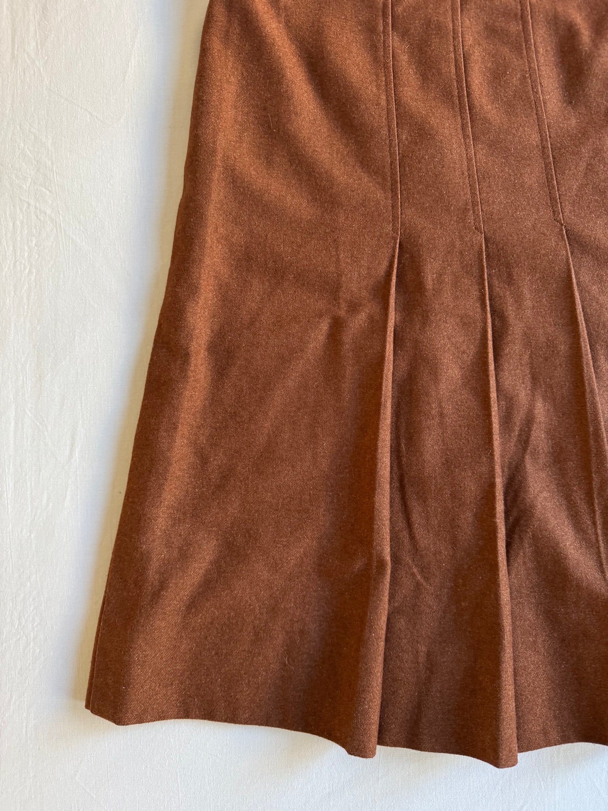 🍮 Fustă Vintage Plisată din Lână Caramel Brown – L (IT 46)