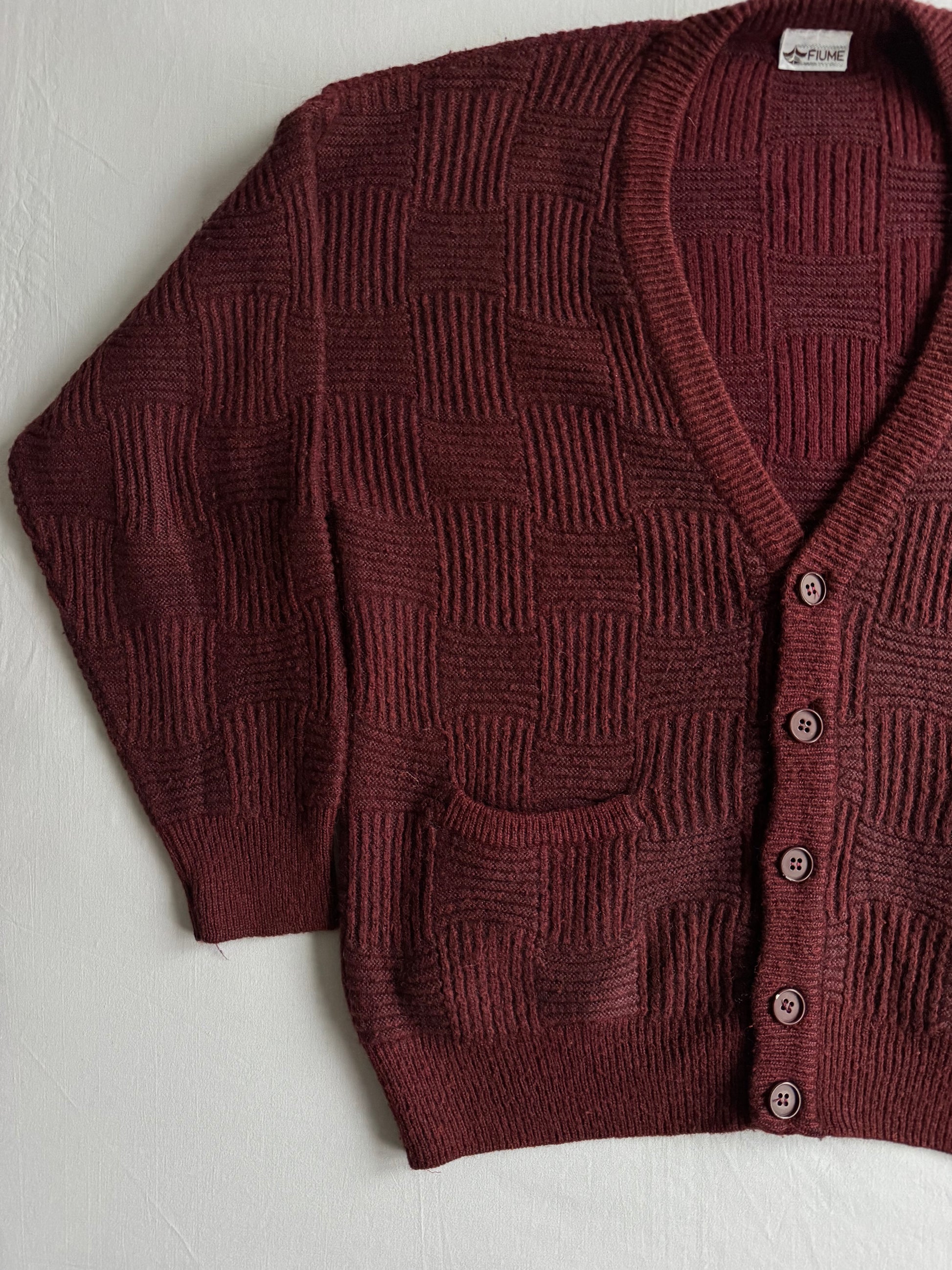 🍷 Cardigan Vintage Bărbați Burgundy Texturat – L