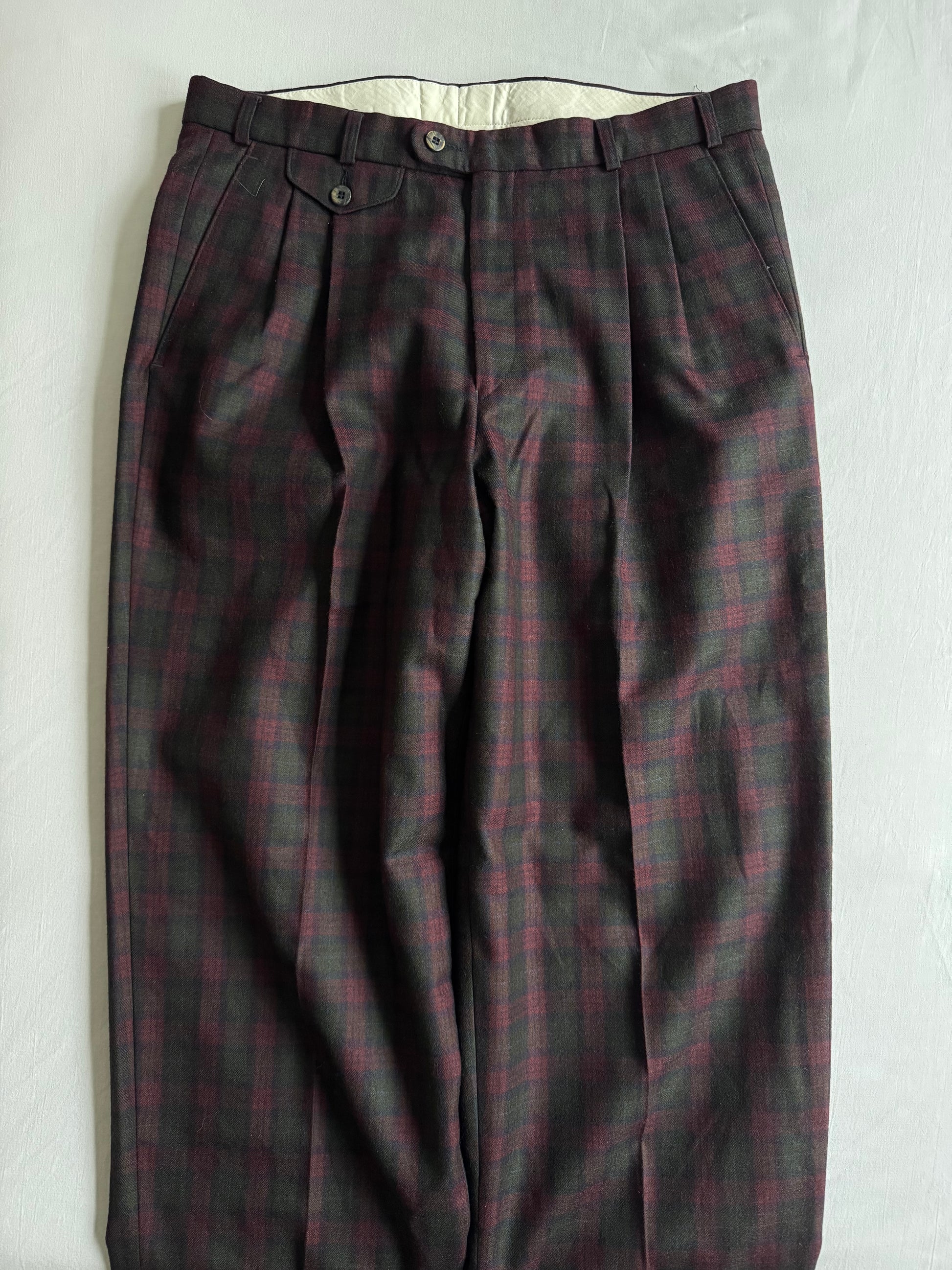 🍷 Pantaloni Vintage Slacks Burgundy & Verde / Pure New Wool (Size 50)