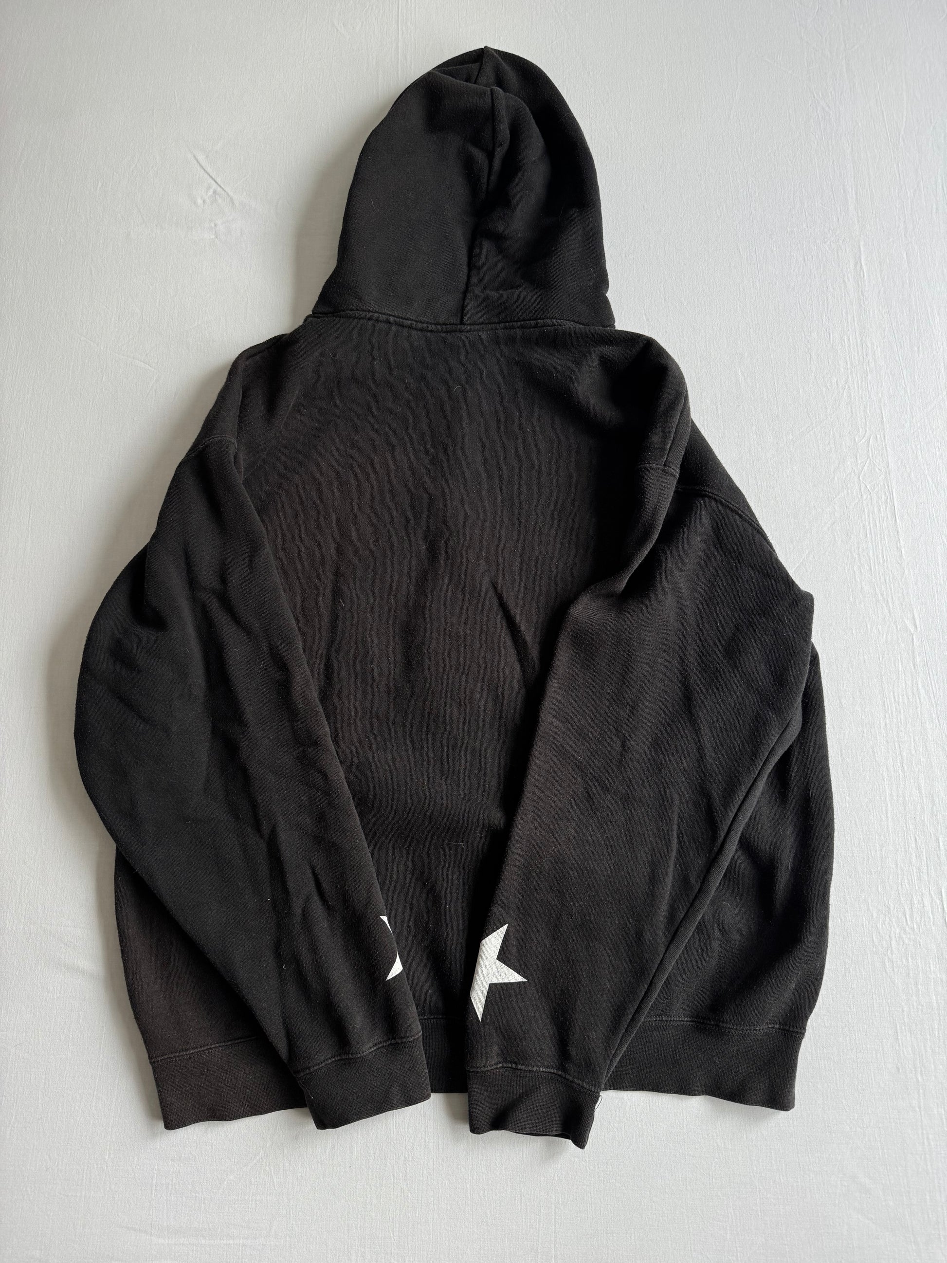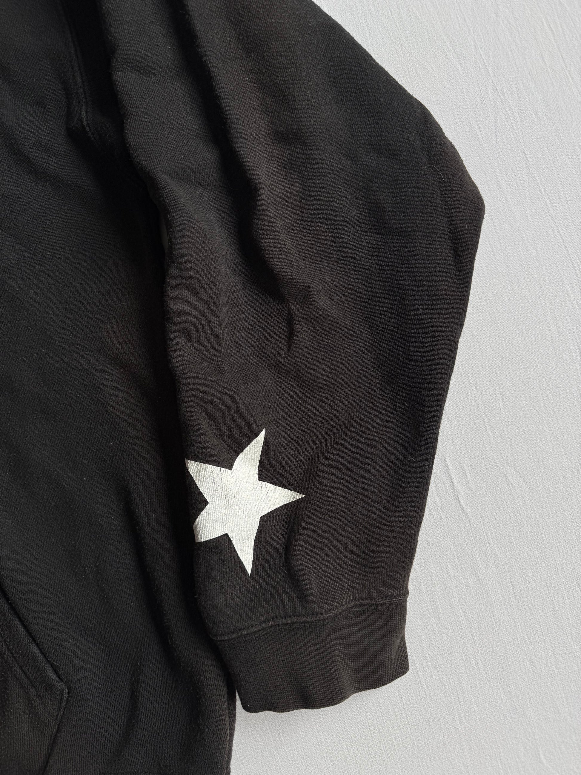 Hanorac band original din 2008, culoare negru, cu grafic specific trupei Rage Against the Machine, oferind un look autentic vintage. Etichetat XL, dar se potrivește mai bine pentru un L. Piesă în stare bună per ansamblu, ușor scămoșat și ușor decolorat (faded) – uzură normală pentru vârstă, vizibilă în poze.