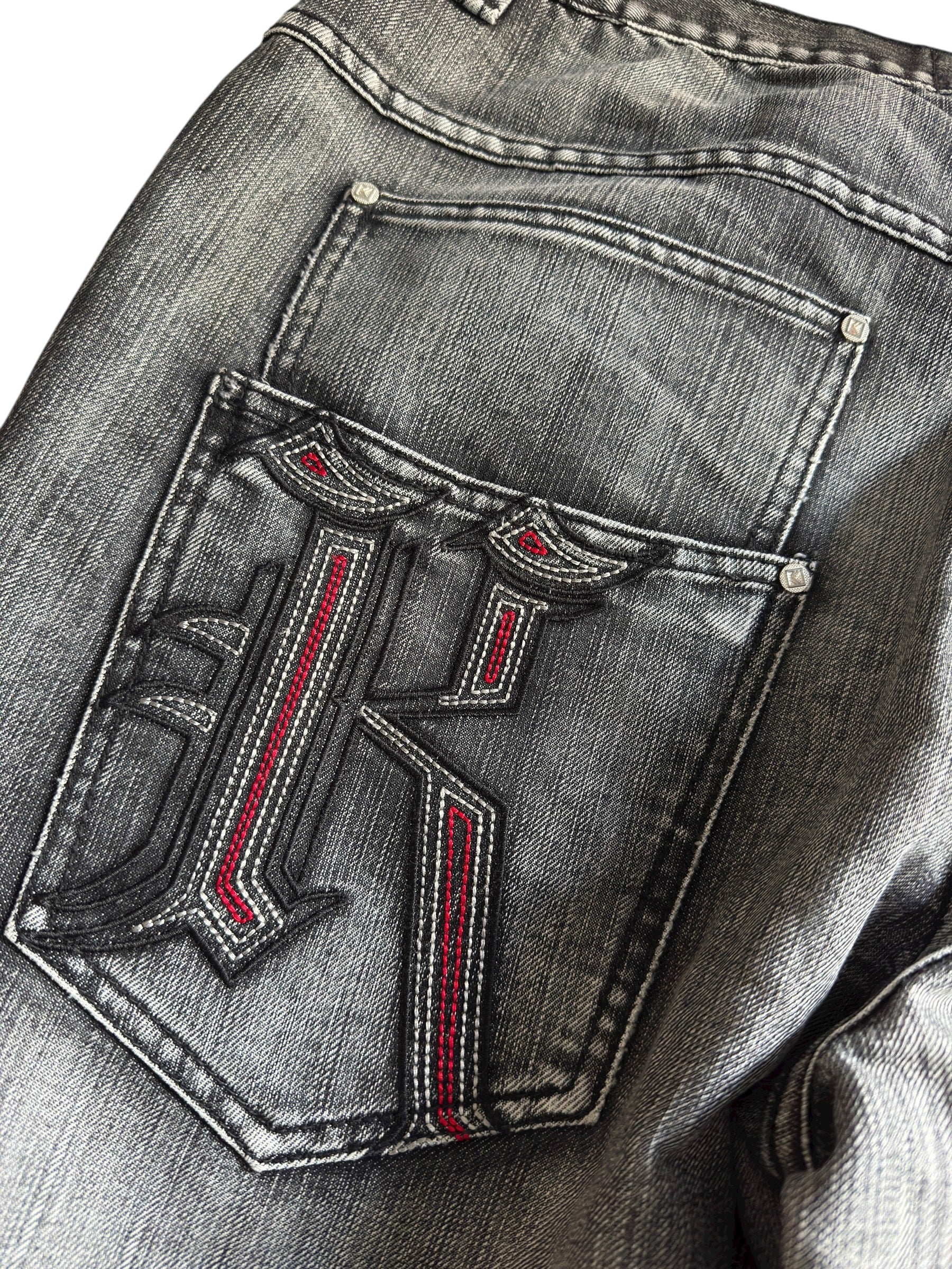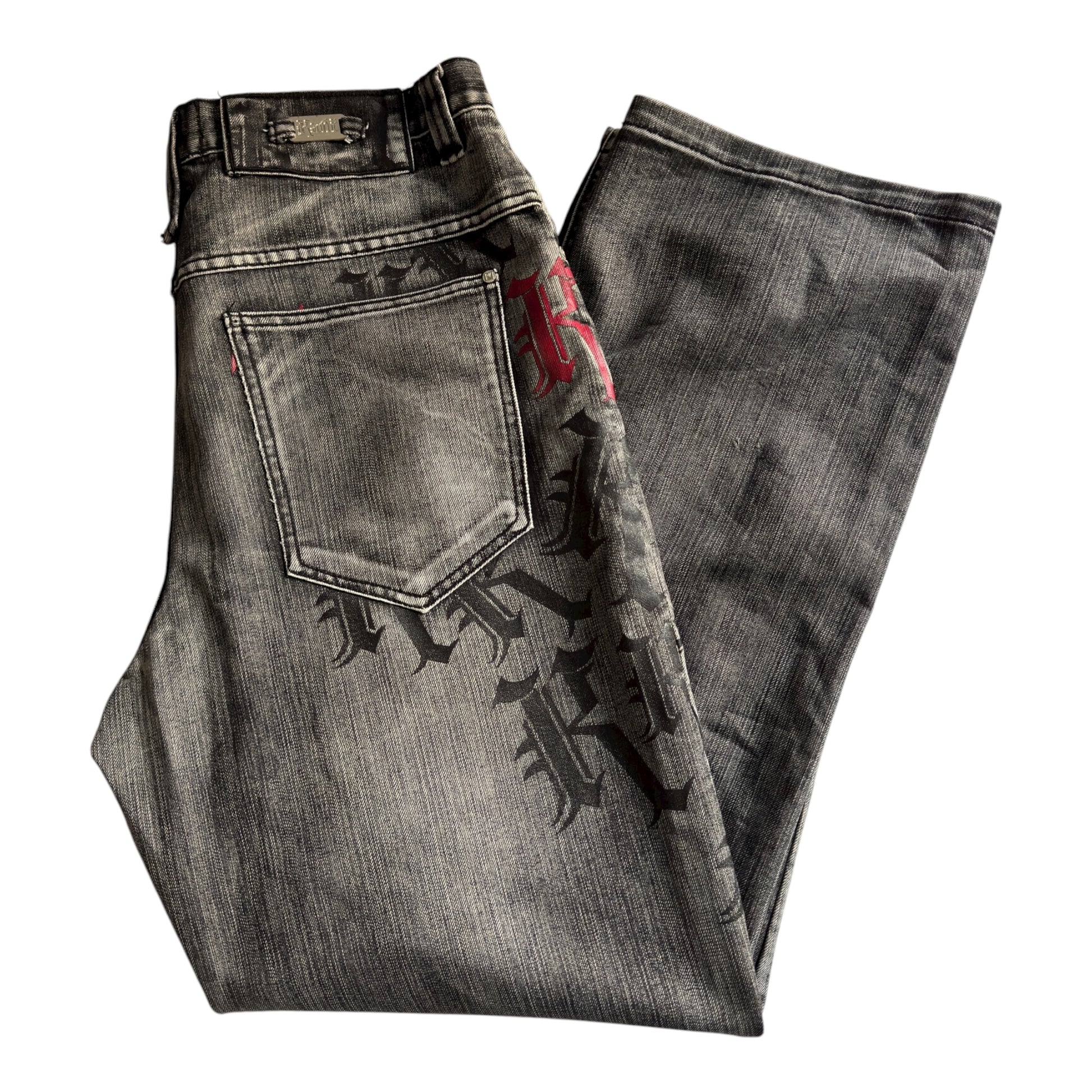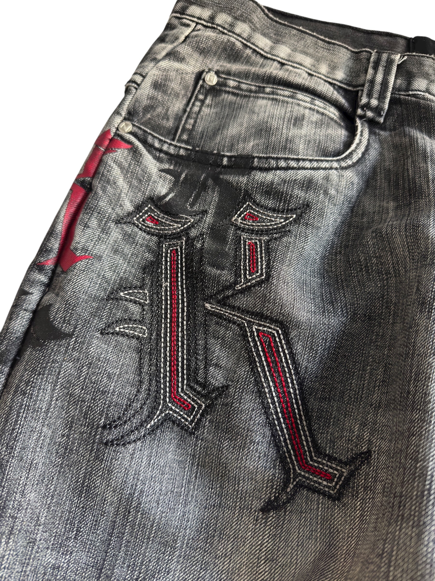 🎙️ Y2K Karl Kani Washed Black Baggy Jeans – W36 x L34 – Embroidered & Printed Details
