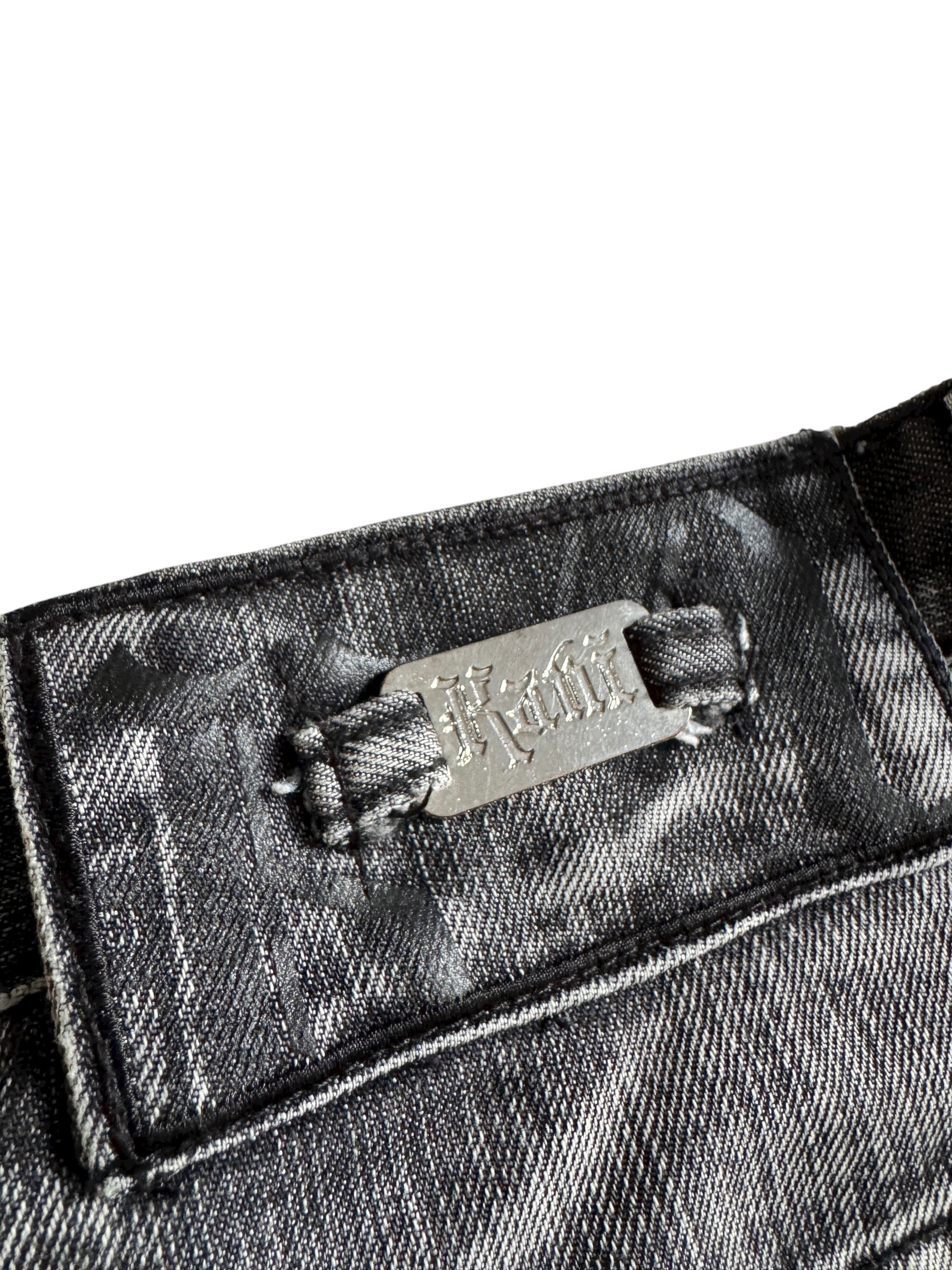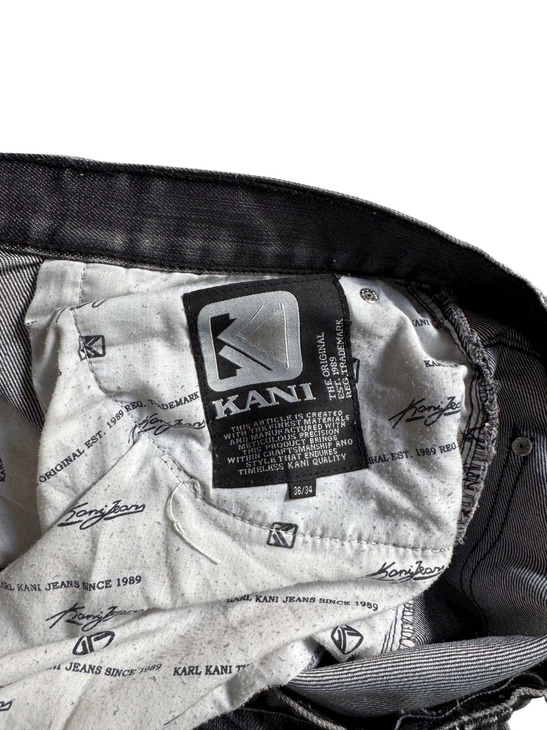 Jeans Karl Kani din perioada Y2K, cu spălare washed black, croială baggy și detalii distinctive – broderii și printuri specifice stilului urban 2000s. Un detaliu de menționat: butonul original al taliei a fost schimbat. În rest, piesa se află în stare foarte bună, ideală pentru outfituri retro streetwear.