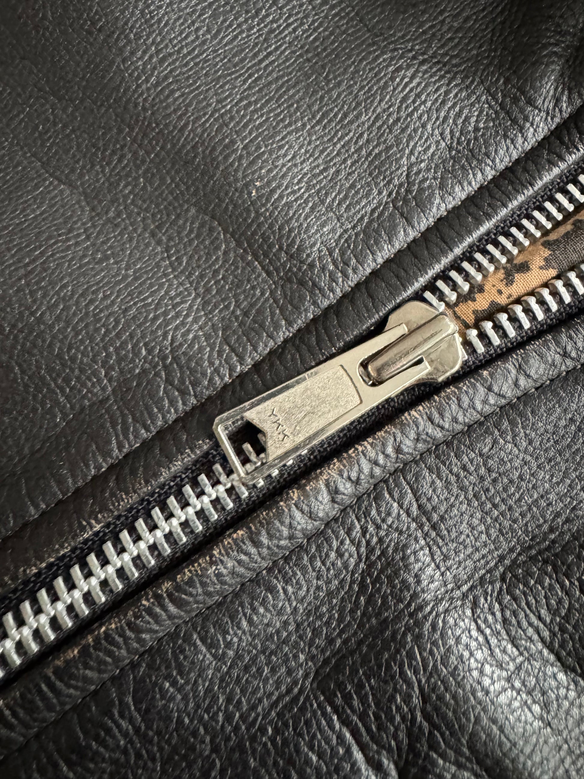 Căptușeala prezintă o ușoară deteriorare în zona inferioară, însă geaca rămâne în stare excelentă per ansamblu, cu fermoare și cusături solide. Ideală pentru outfituri urbane, inspirate de stilul anilor ’80–’90.