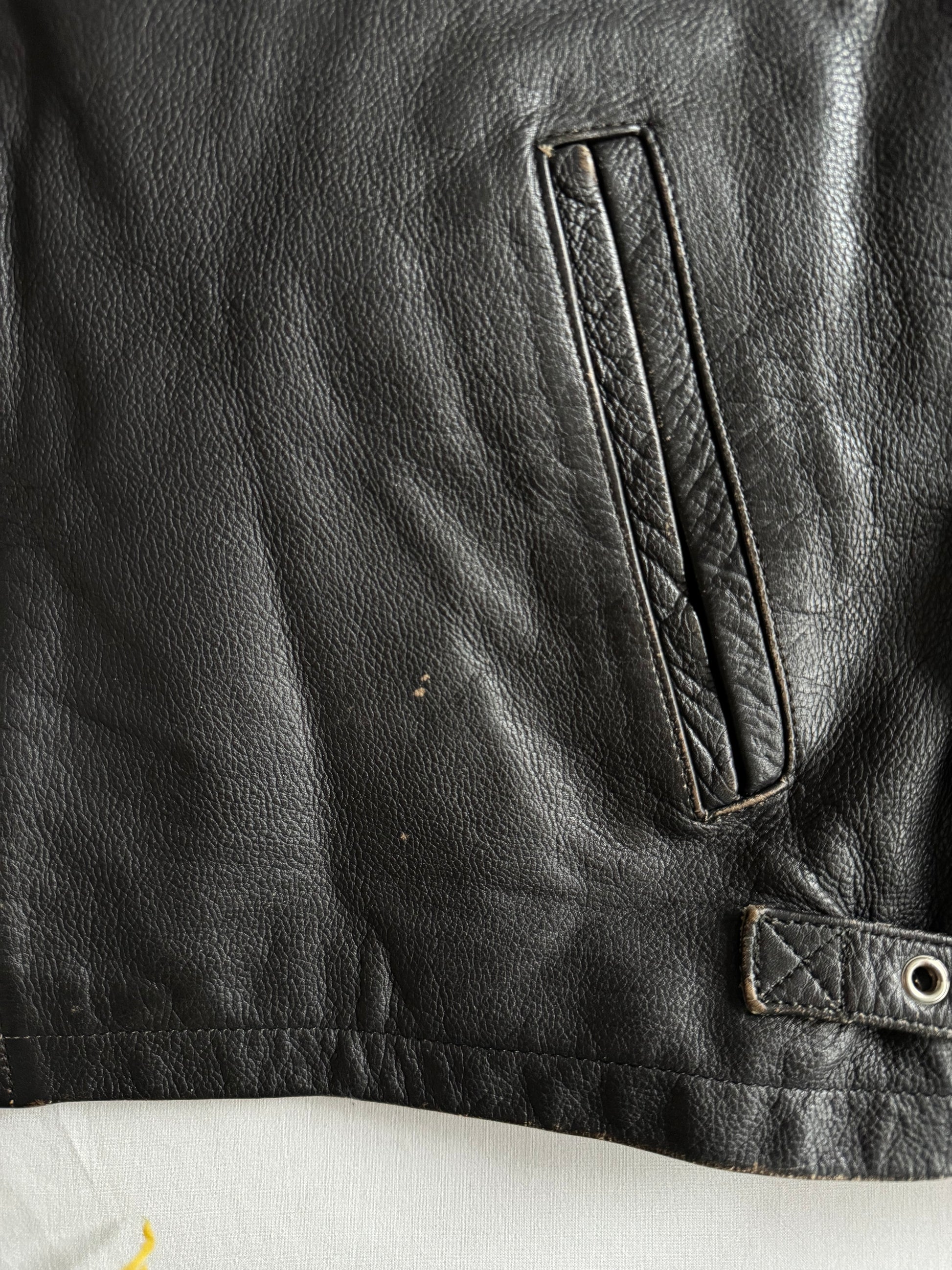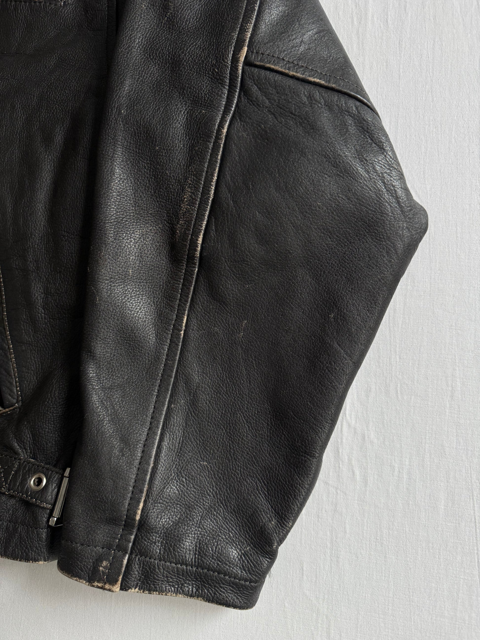 🏍️ Geacă vintage din piele neagră pentru bărbați – mărimea L – croială cropped – piele naturală cu patină autentică