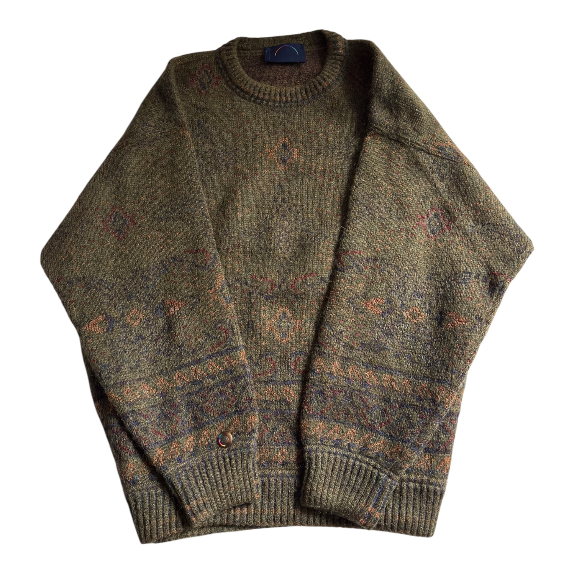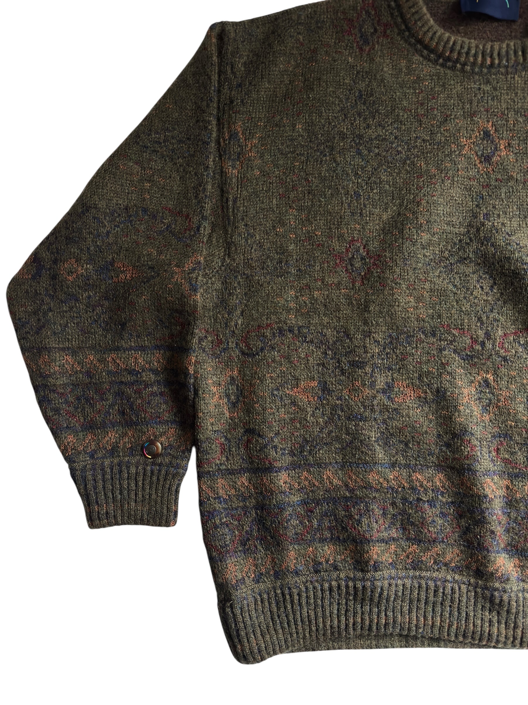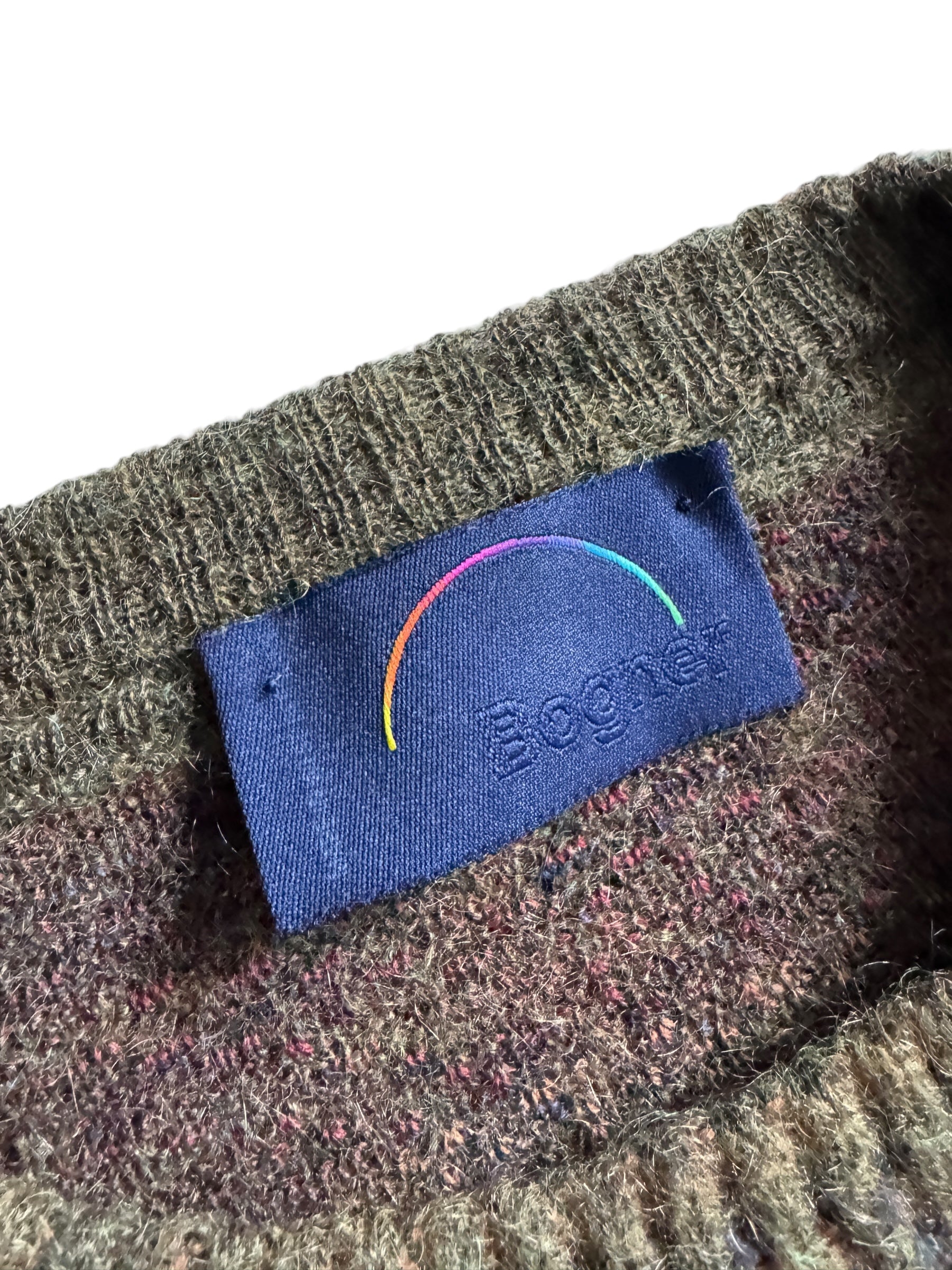 Jumper vintage Bogner, realizat în Germania de Vest, cu un pattern distinctiv retro. Material premium: mix de lână, super kid mohair și poliamidă, moale și confortabil. Etichetat mărimea 50 (Men’s L), într-o stare perfectă. O piesă autentică vintage, cu vibe anii ’80-’90.