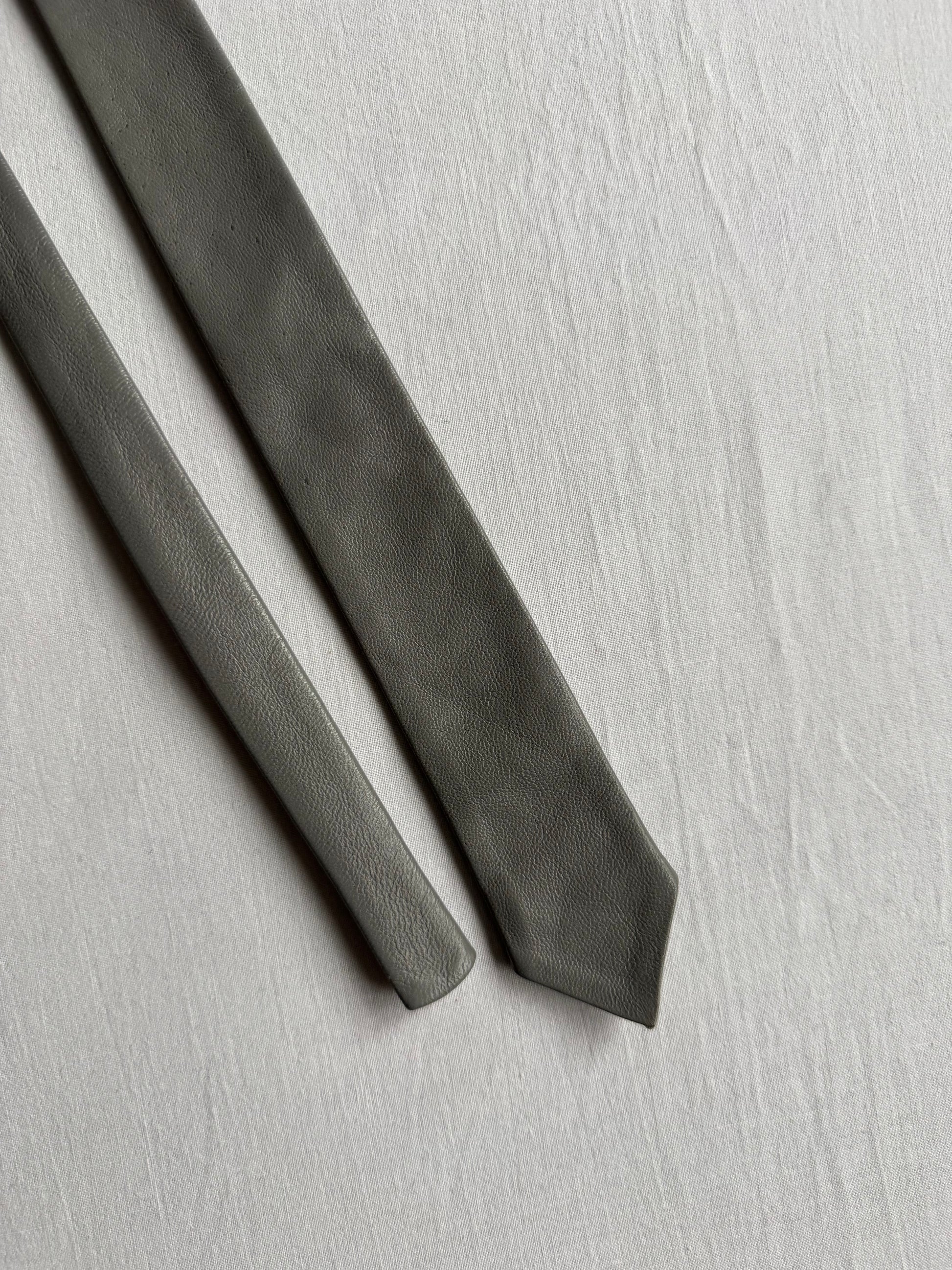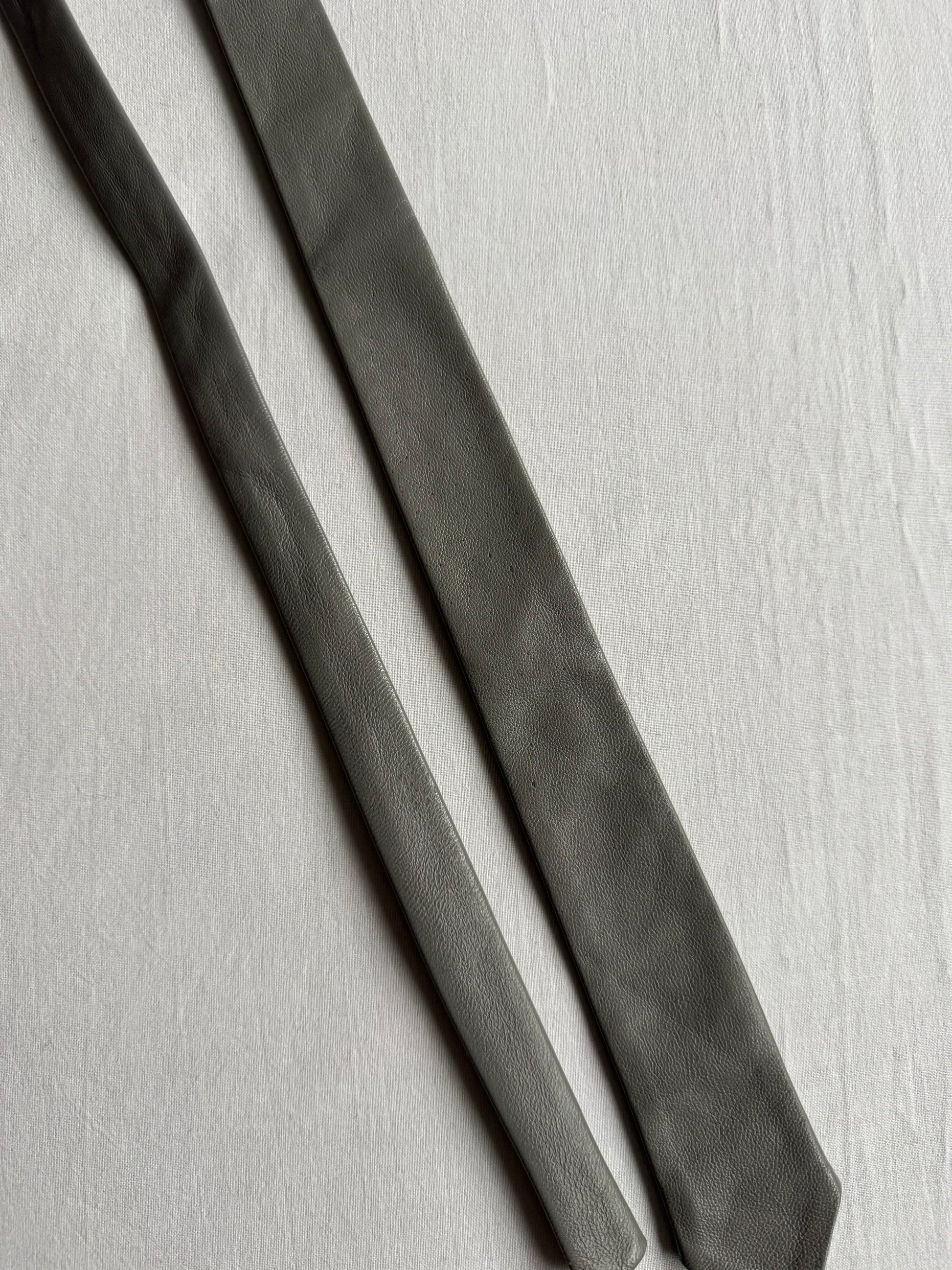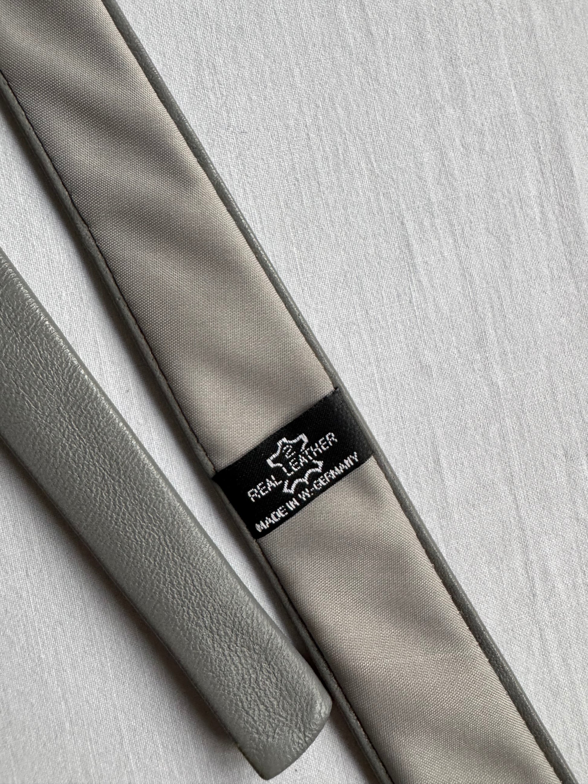 👔 Cravată Vintage Skinny din Piele Gri – Made in Western Germany