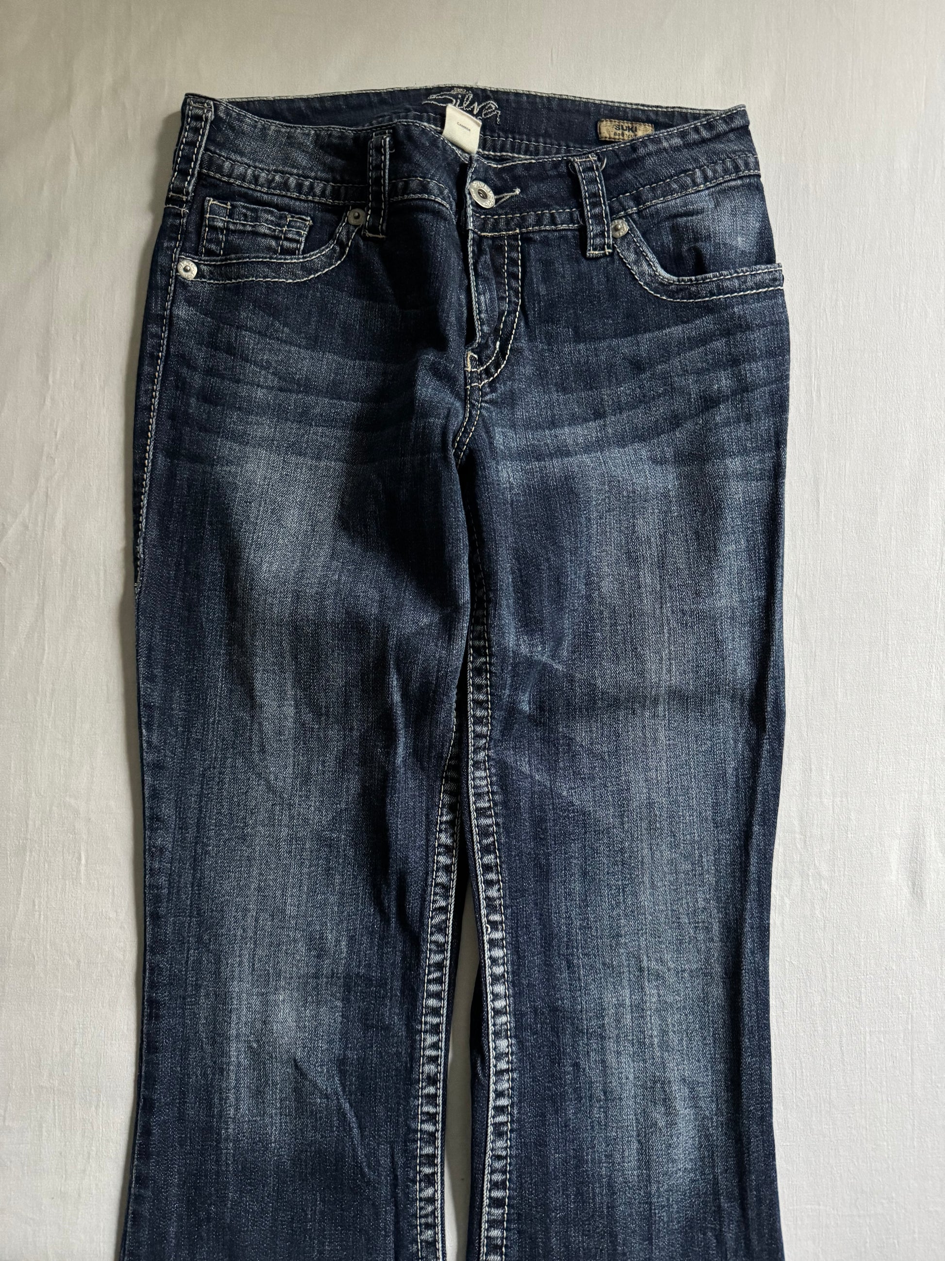 Jeans Y2K Silver Brand, model bootcut, concepuți pentru femei, cu croială lejeră și talie medie. Realizați din denim de calitate, acești jeans oferă un look autentic Y2K și se potrivesc perfect în outfituri casual sau retro. Se află în stare foarte bună.