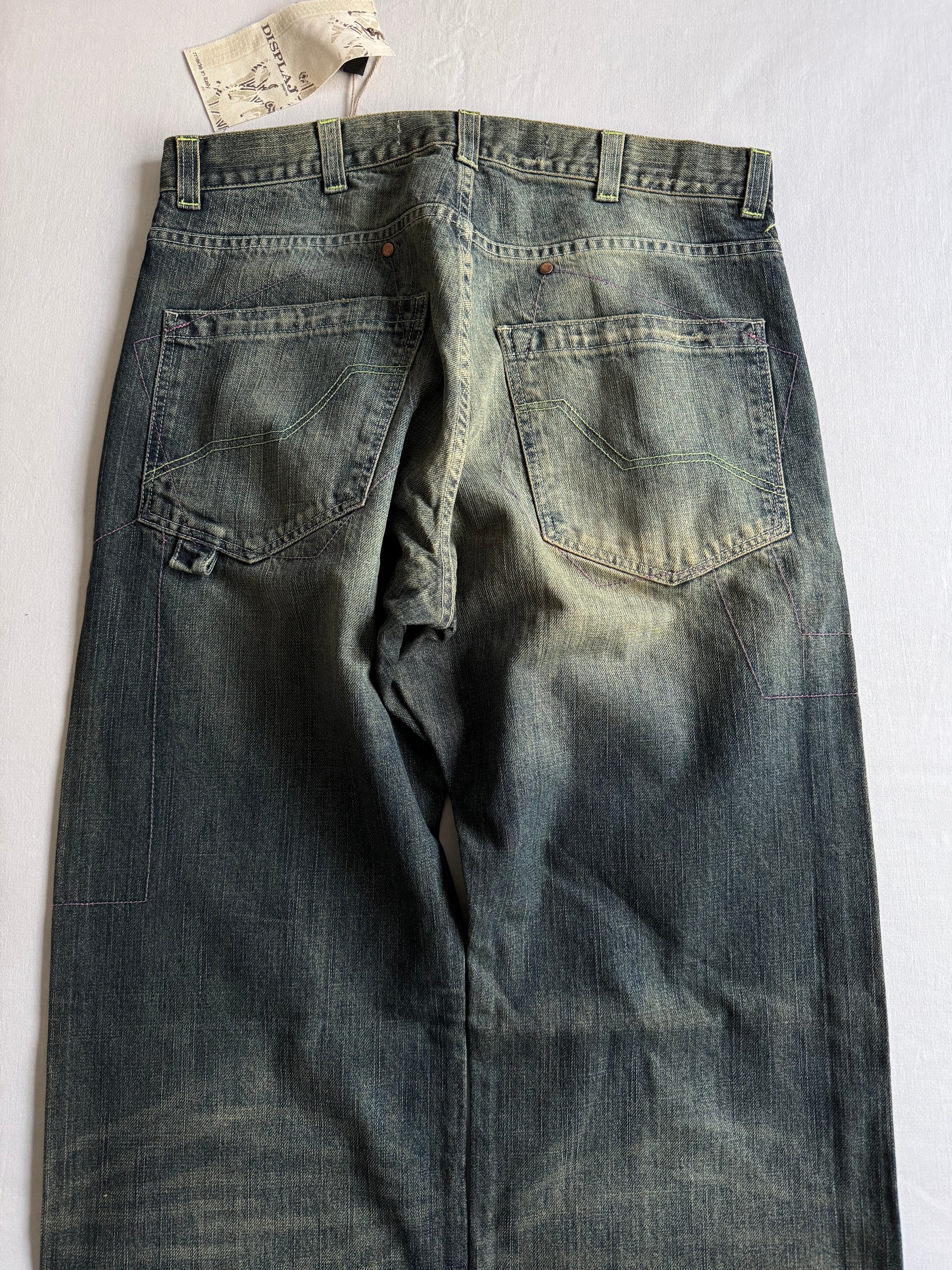 Jeansi deadstock autentici Y2K, fabricați în Italia, din denim gros, de calitate superioară. Croială baggy / relaxed fit, cu un wash nisipiu (sandy wash) care oferă un look cool și atemporal. O piesă perfectă pentru pasionații de modă Y2K, streetwear și arhive vintage italiene.