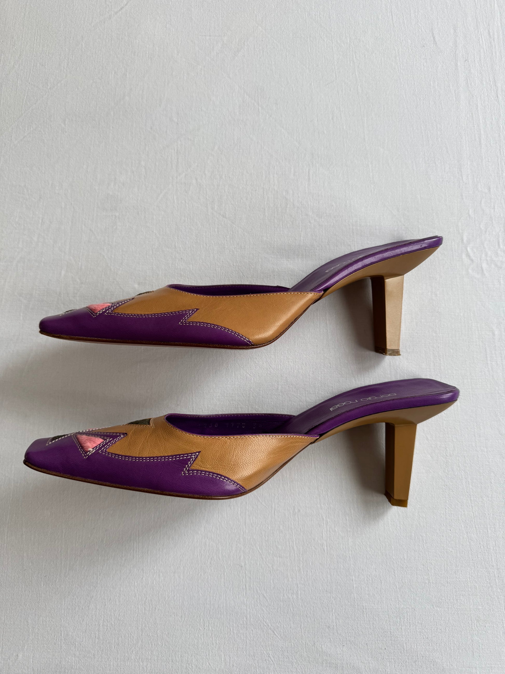 👡 Mules Vintage Sergio Rossi din Piele și Păr de Vacă – EU 38.5 ( tagged EU 39 )