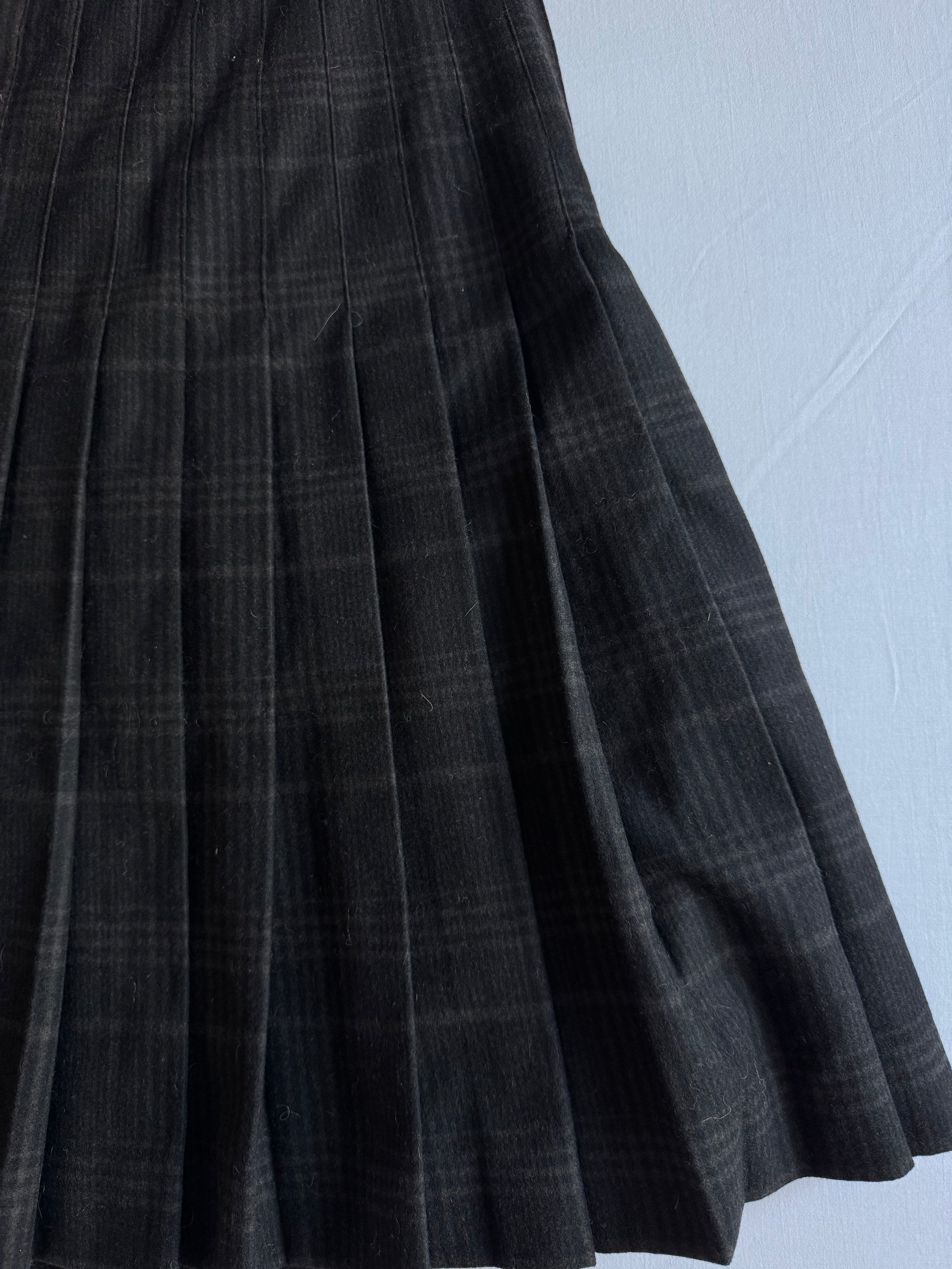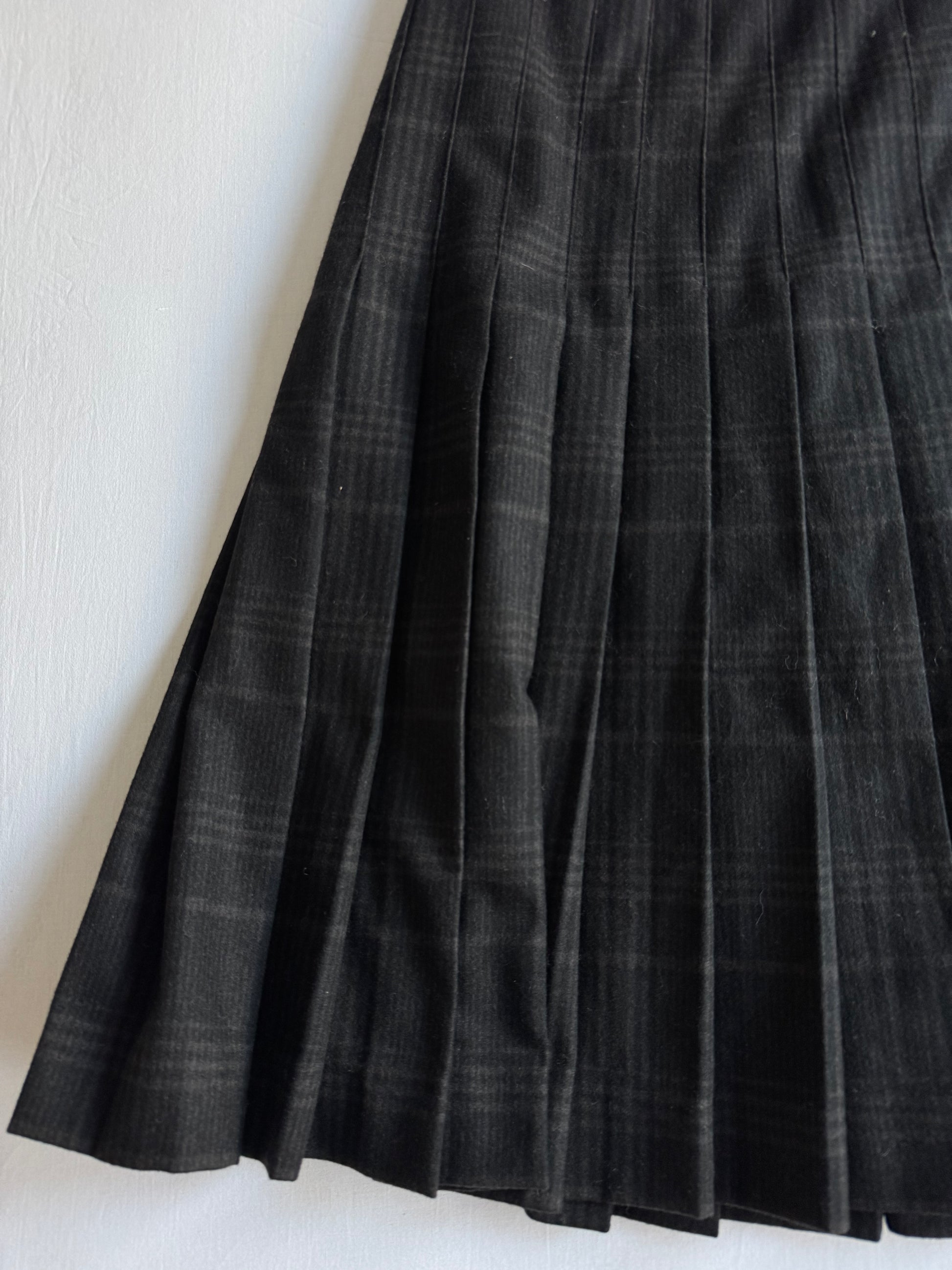📞 Fustă Vintage Plisată din Lână Neagră cu Model Tartan – aprox. M