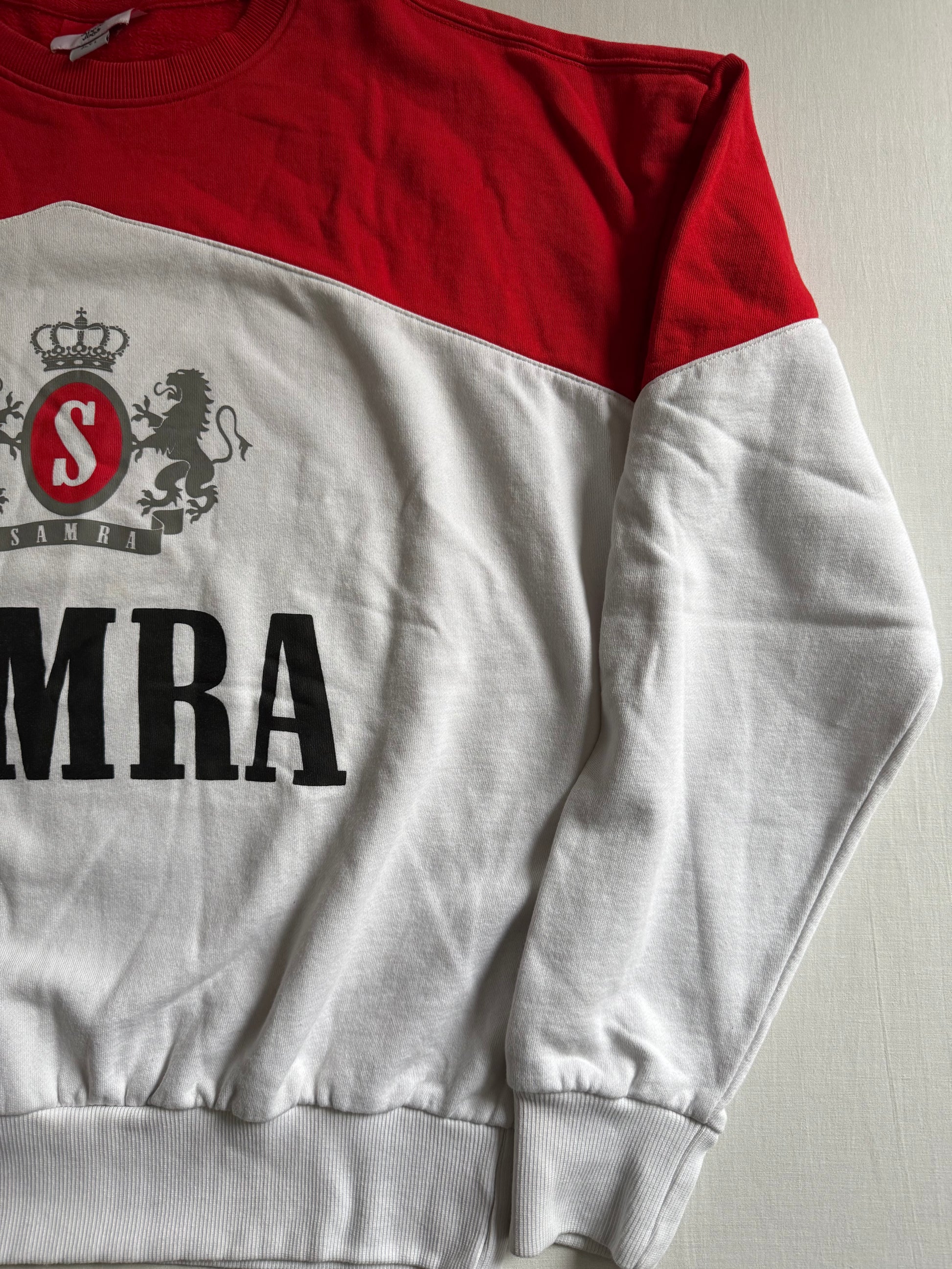 Crewneck Samra inspirat din iconica estetică Marlboro, cu un look puternic, statement. Țesătură moale și croială confortabilă, perfect pentru un stil casual cu personalitate. Piesa este în stare excelentă, fără defecte majore.