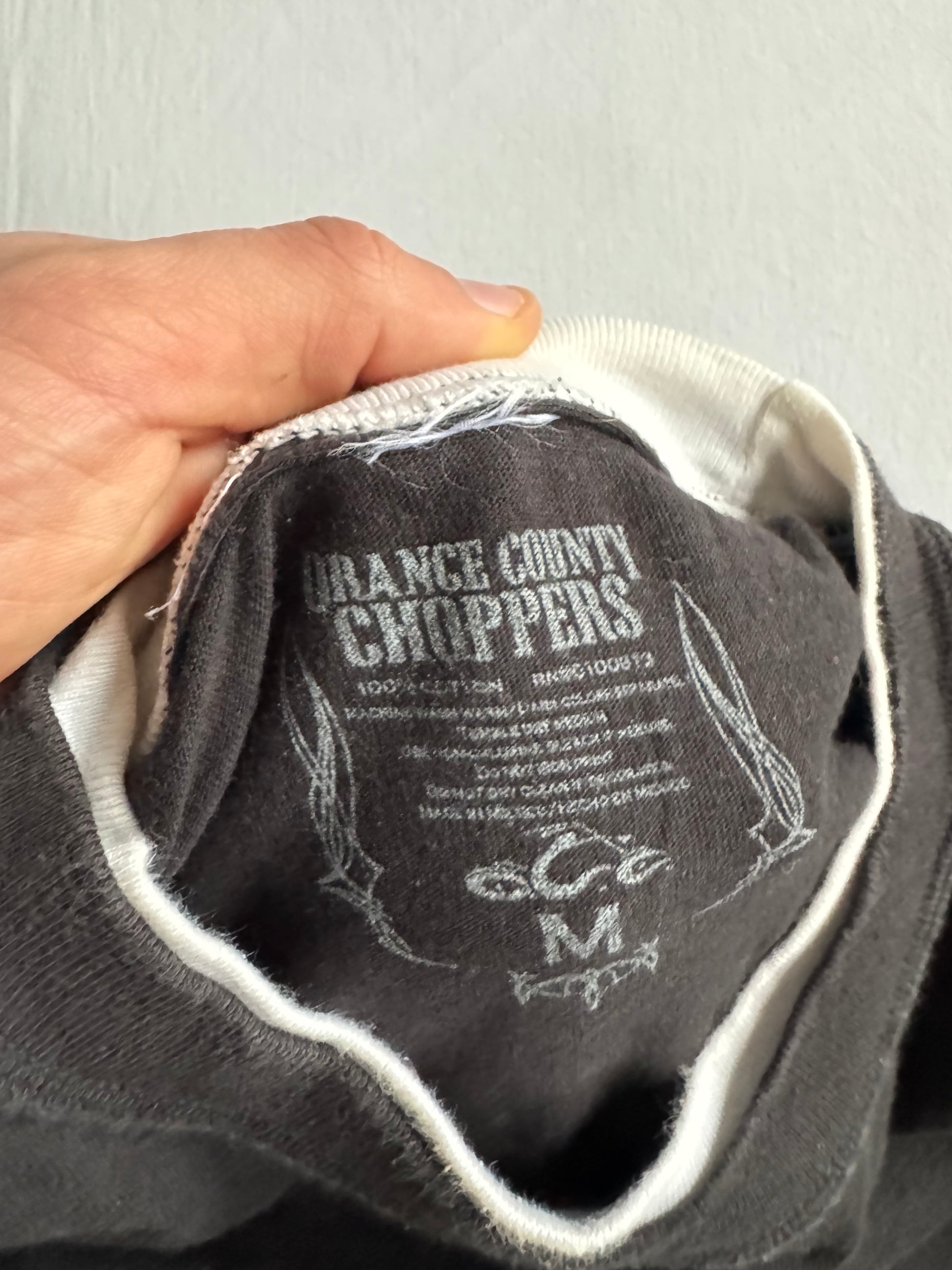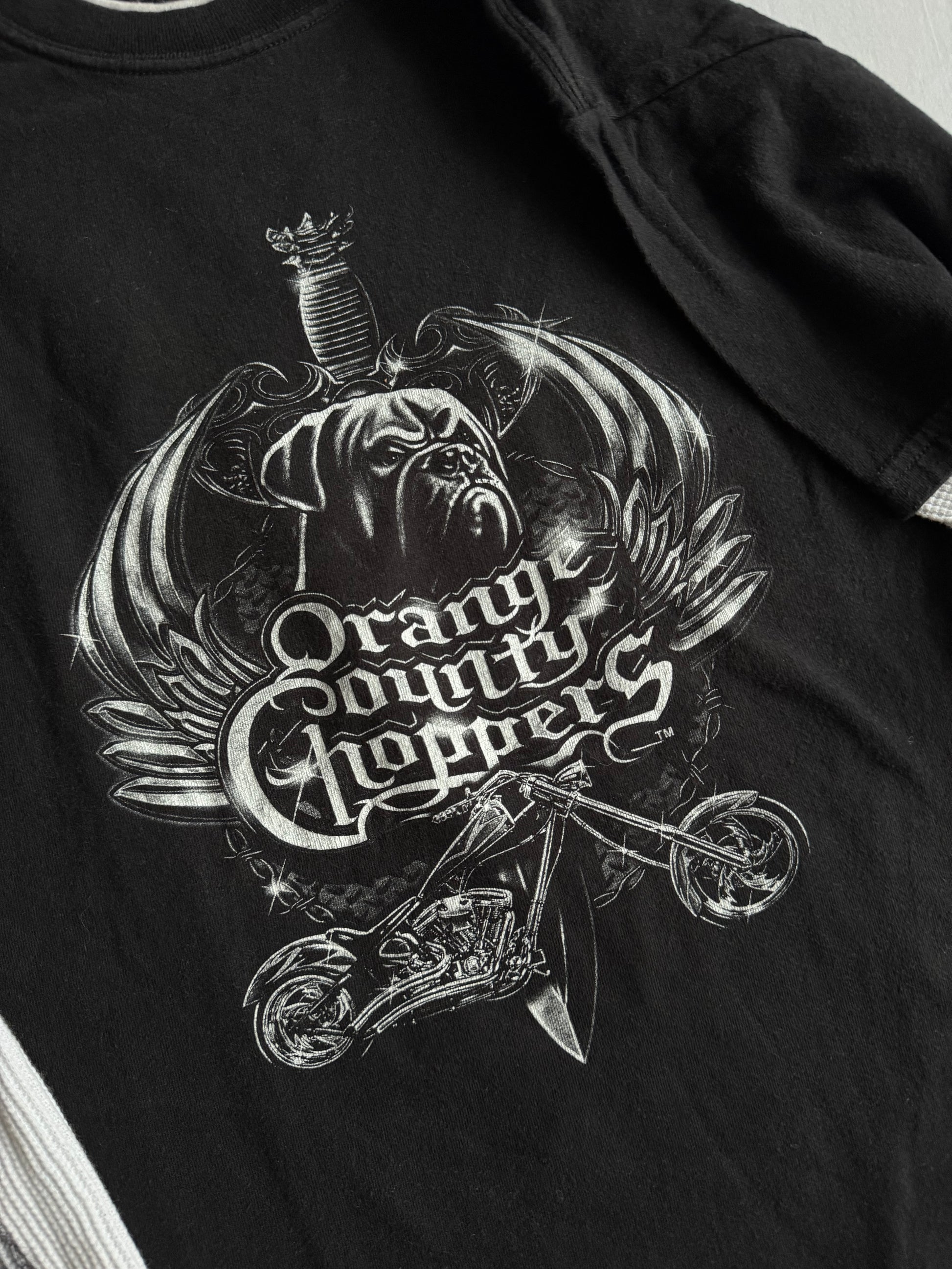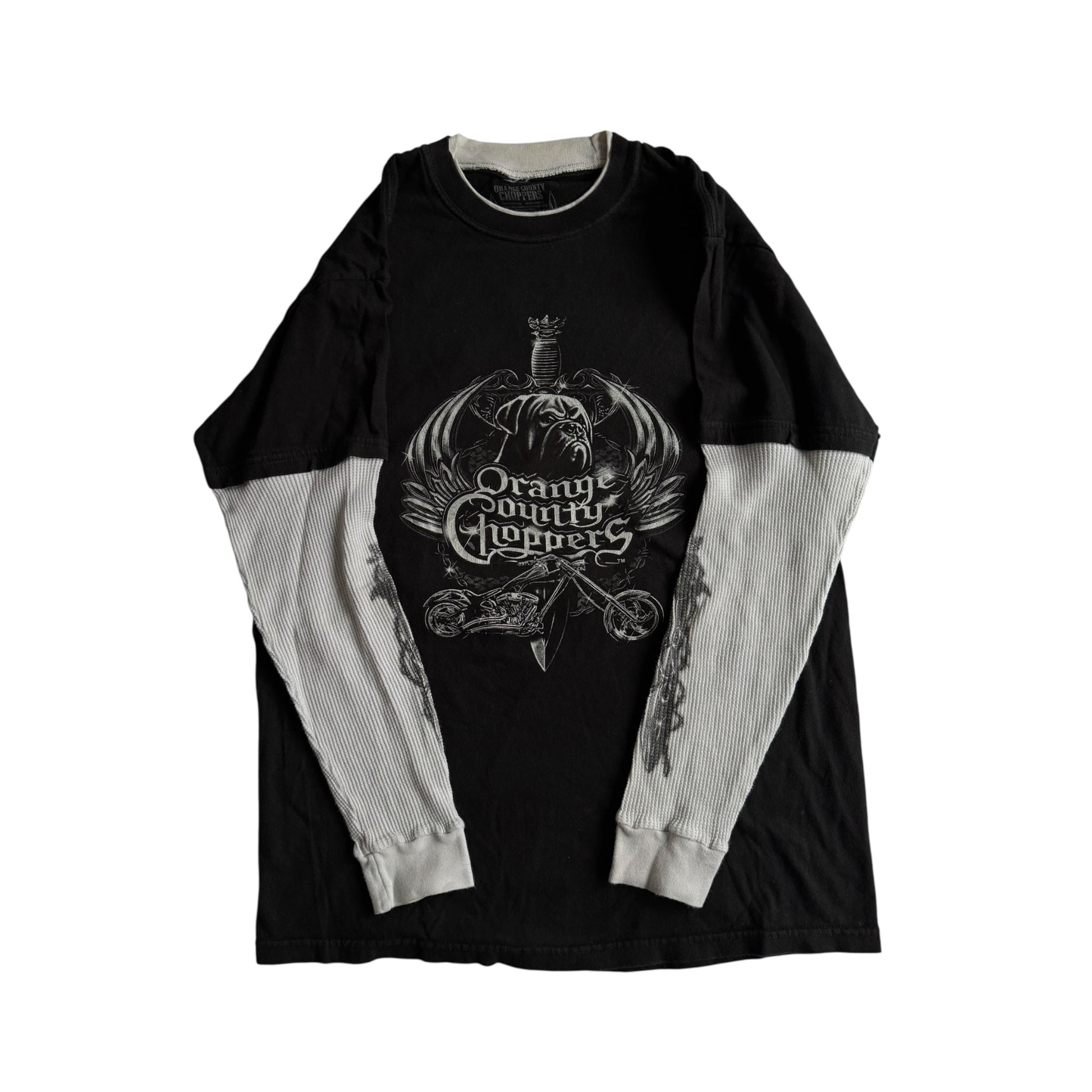 🛠️ Bluză Y2K Neagră cu Mâneci Thermal Waffle Orange County Choppers – M