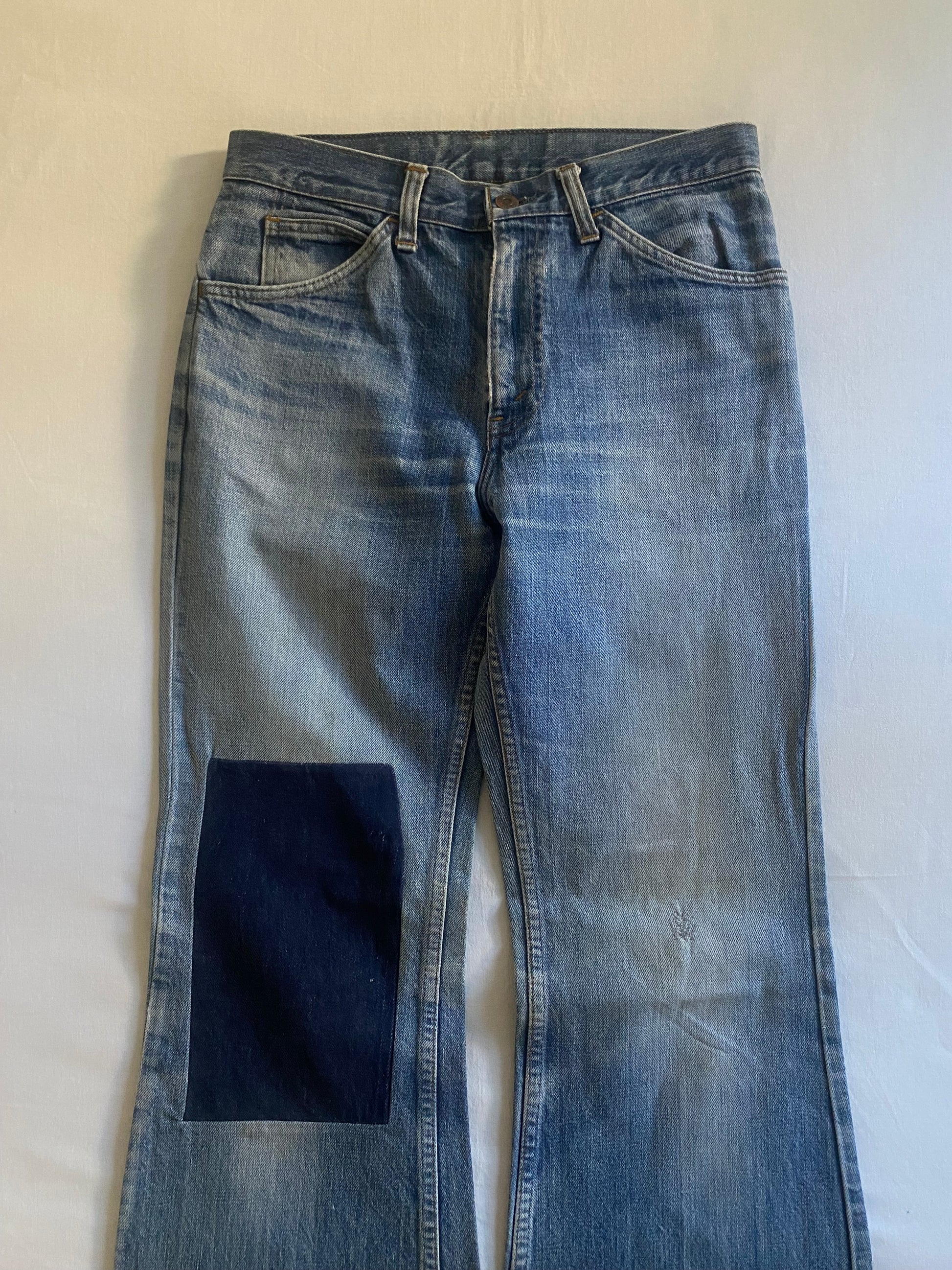 70's Vintage Levi's Orange Tab Light Wash Repaired Flared Jeans