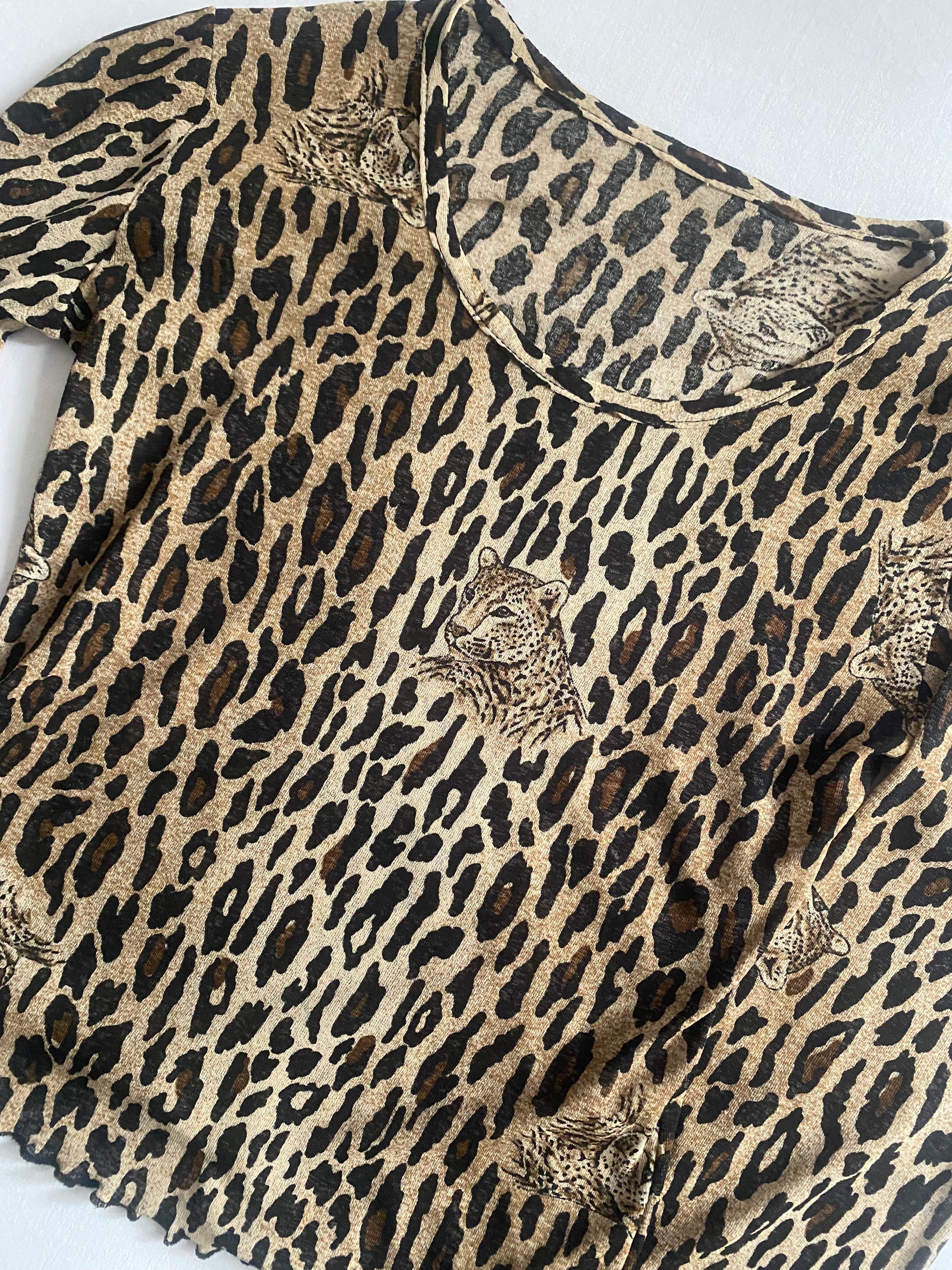 Top Y2K Animal Print Mesh – Mărime M – Fabricat în Italia
