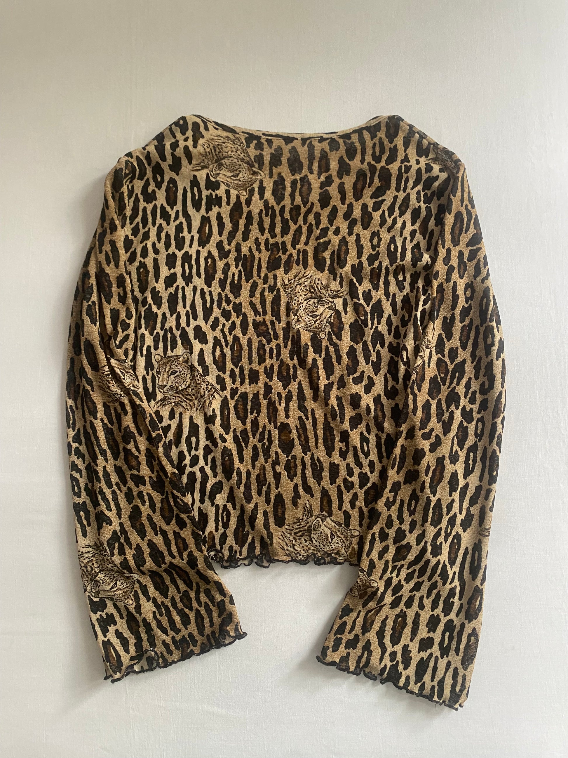 🐆 Top Y2K cu Mâneca Lungă, Animal Print, Mesh – M – Made in Italy