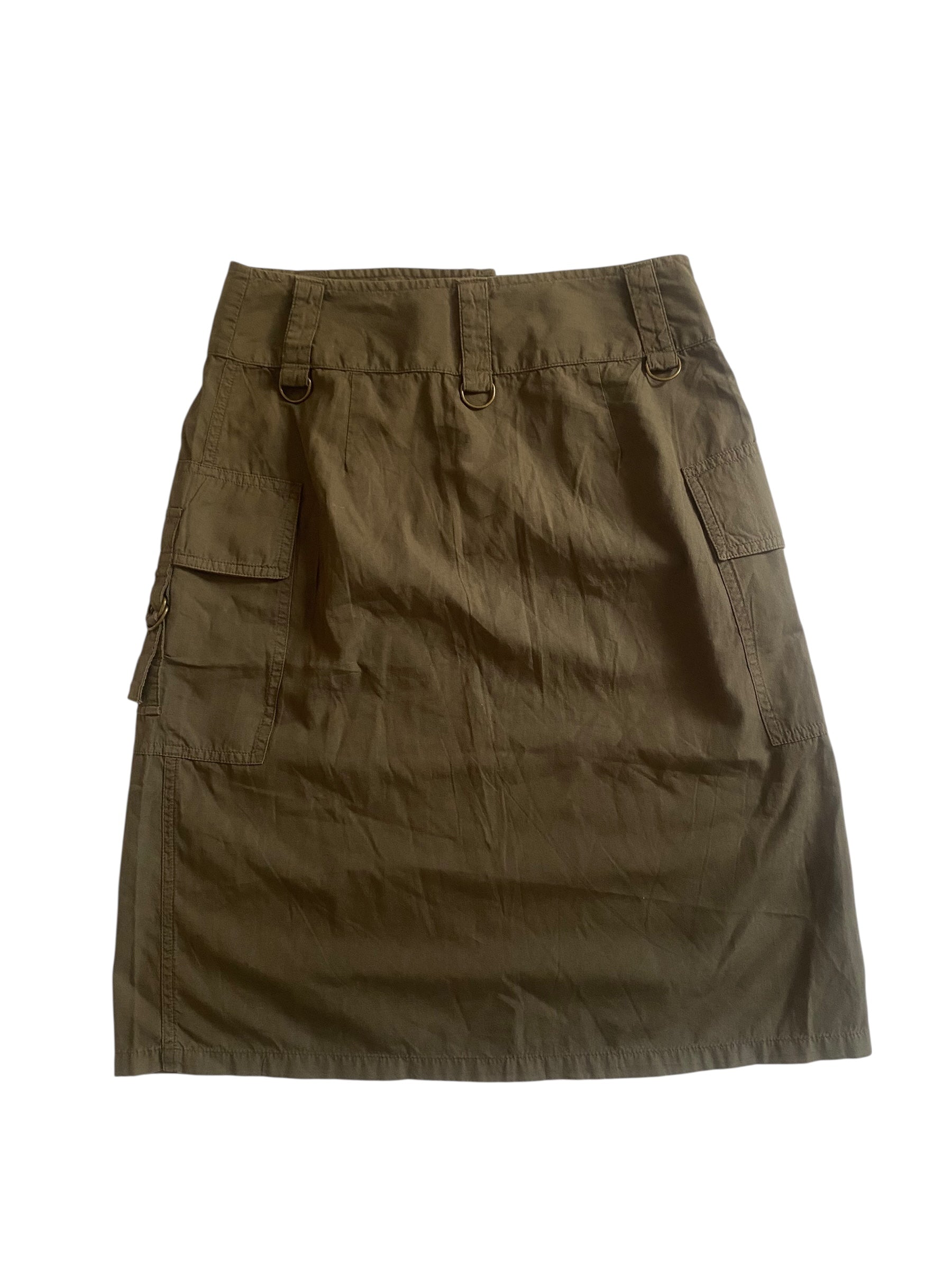 Fustă Y2K Benetton în stil technical / military inspired, croială cargo cu buzunare funcționale și detalii utilitare. Material tehnic, ușor, potrivit pentru ținute edgy, streetwear sau layering. Culoare neutră versatilă. Ideală pentru un look Y2K autentic, cu influențe utilitare.