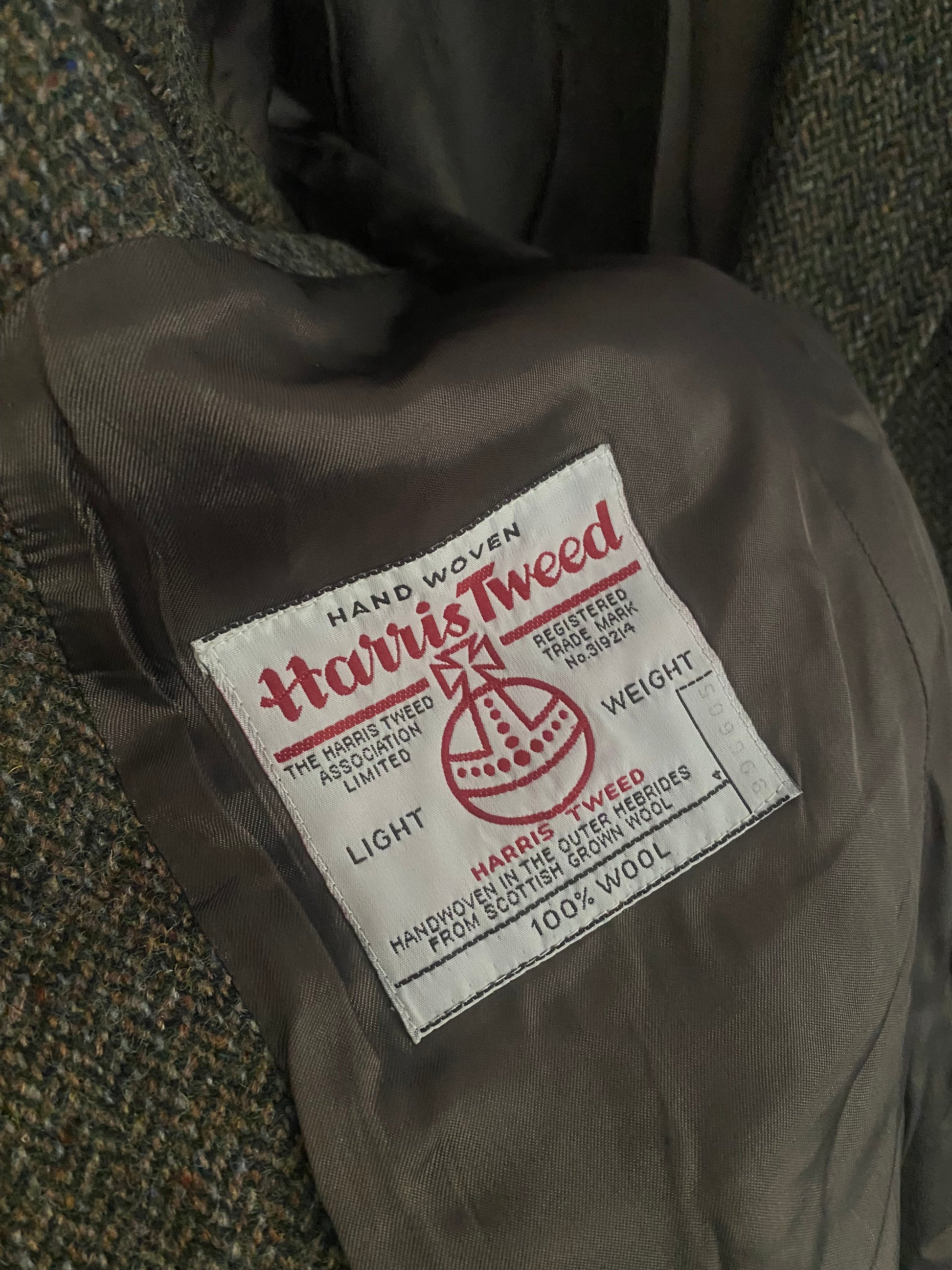 Blazer vintage Harris Tweed, confecționat 100% din lână pură (pure new wool), cu croială clasică și textură specifică Harris Tweed. Perfect pentru ținute smart-casual sau elegante, această piesă adaugă un aer sofisticat oricărui outfit.
