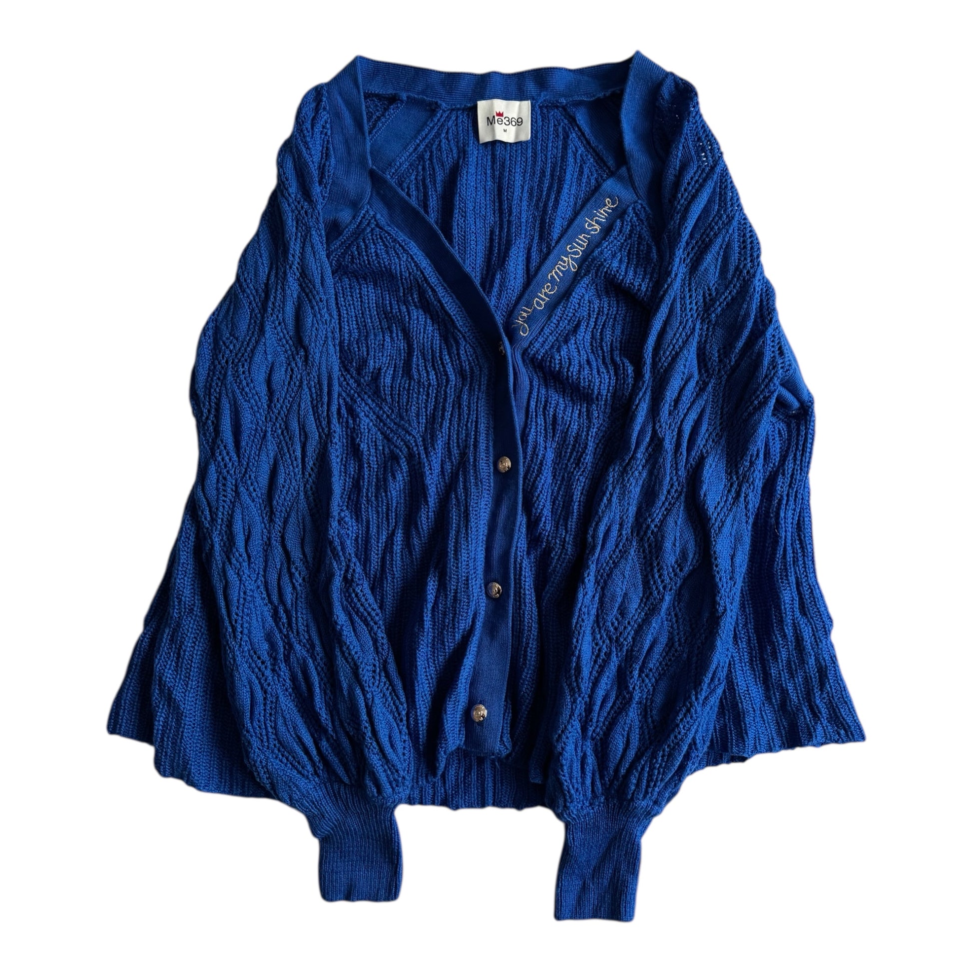 🧶 Cardigan Albastru Tricotat cu Broderie – Mărime M Femei