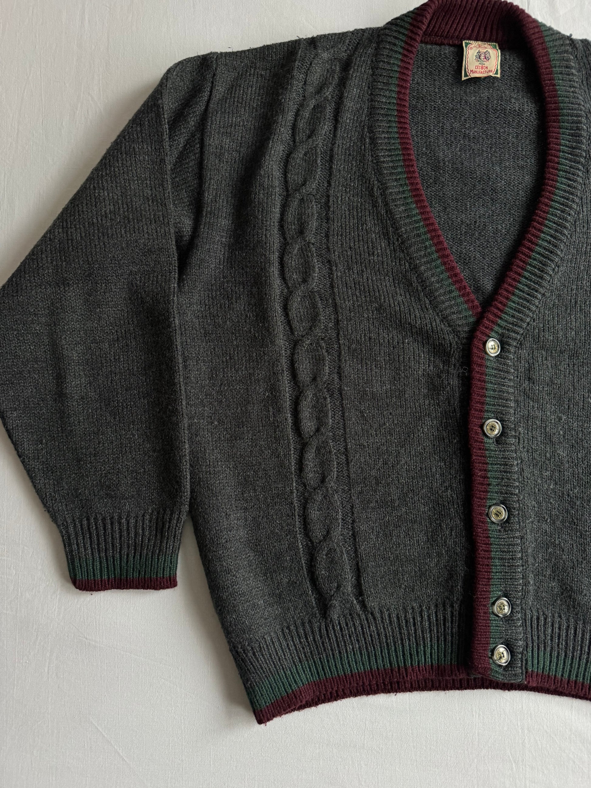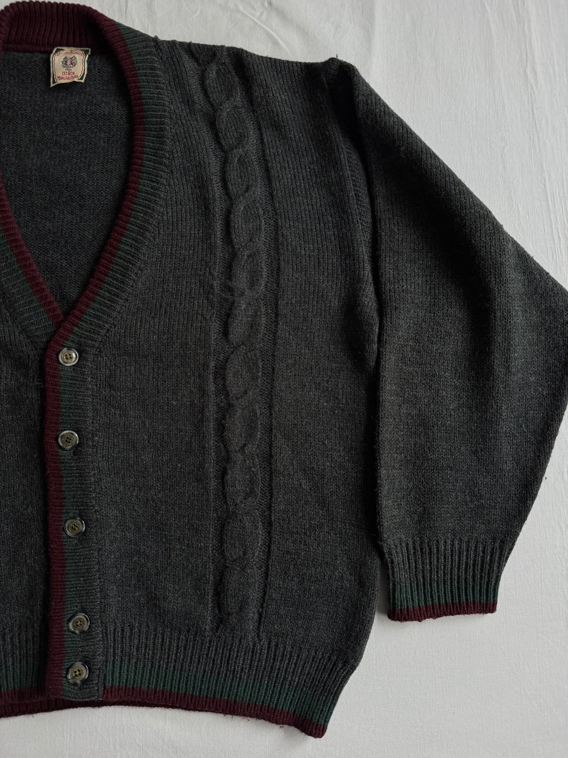 🧶 Cardigan Vintage Bărbați Gri Cable Knit – M