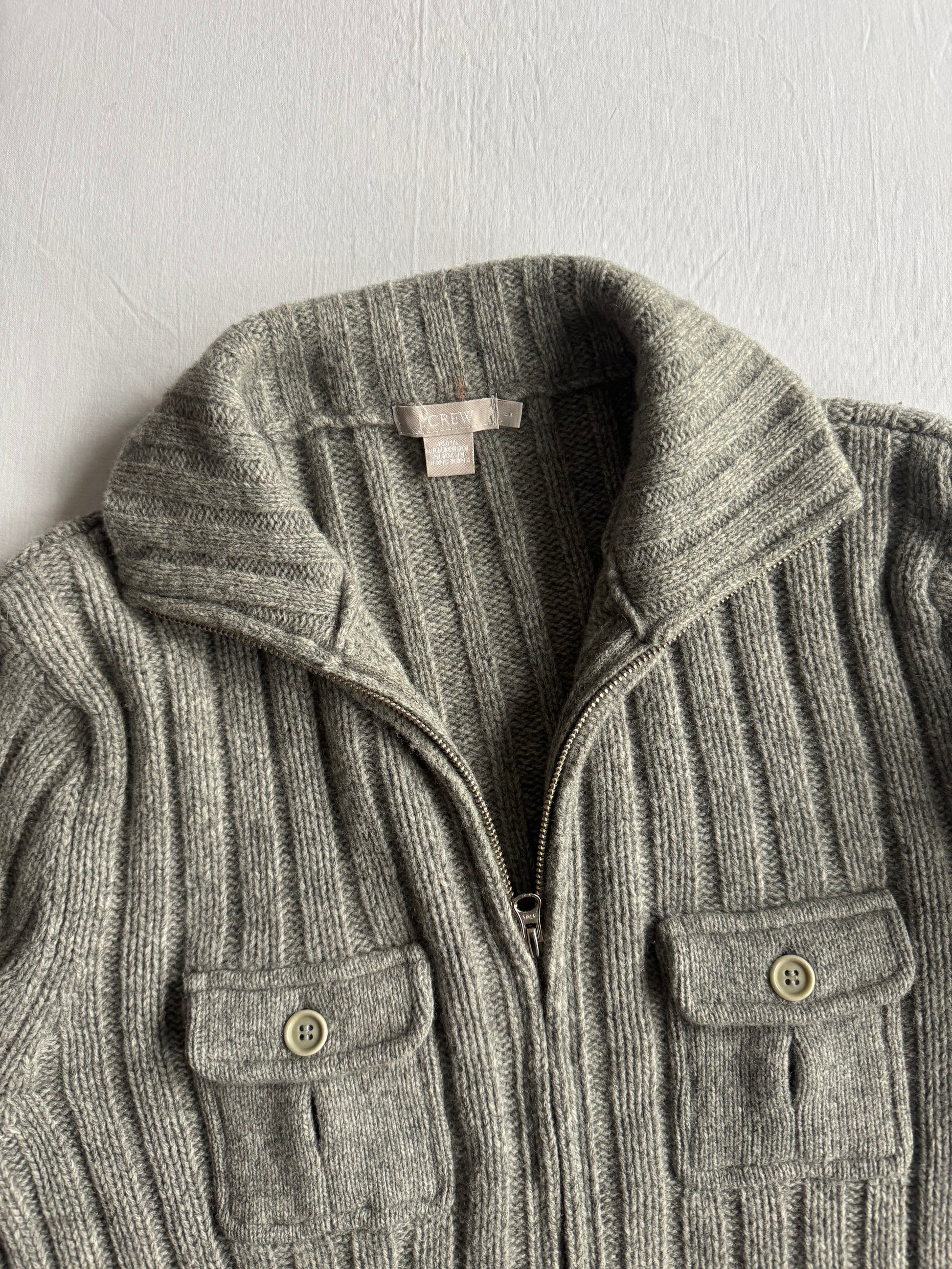 🧶 Cardigan Y2K Bărbați J.Crew Gri cu Fermoar din Lambswool – L