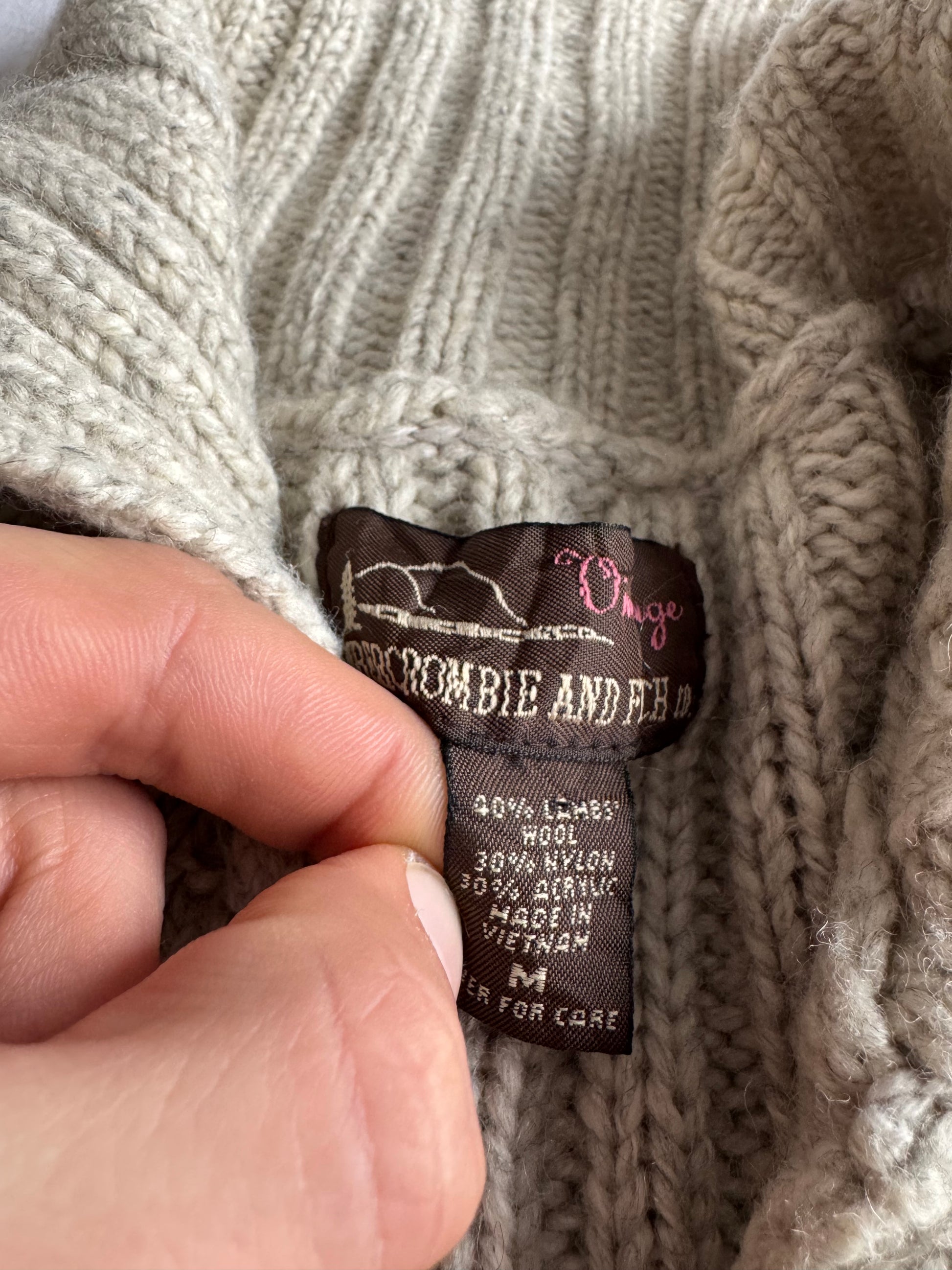 🧶 Cardigan Y2K Damă Abercrombie & Fitch Cable Knit din Lambswool Blend – M