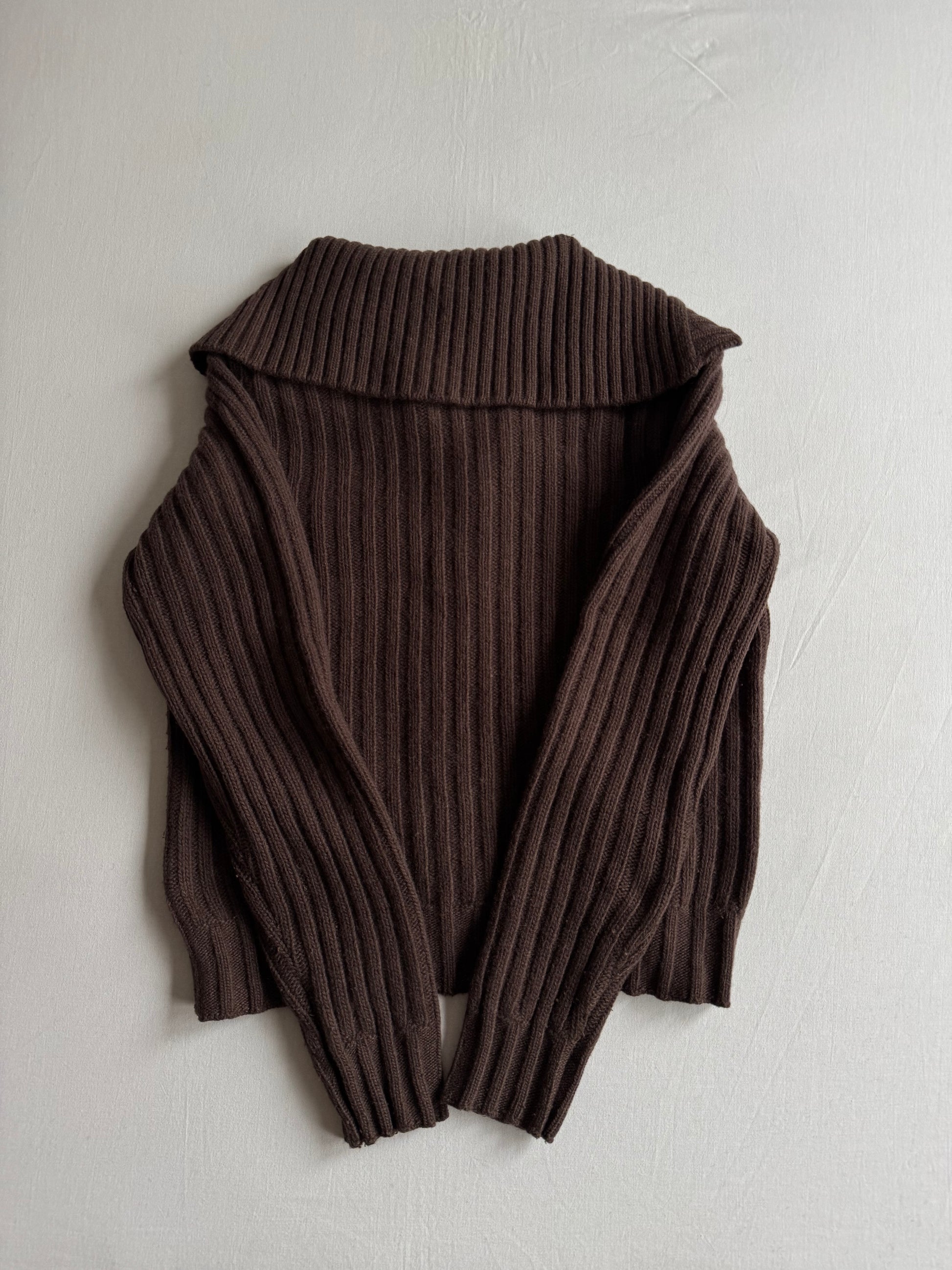 Cardigan Y2K pentru femei, realizat din blend cu 80% lână, în nuanță maro, cu model striped clasic ce oferă un look cozy și versatil. Fabricat în Italia, croială potrivită pentru un S damă (etichetă S). Piesă păstrată în stare foarte bună.