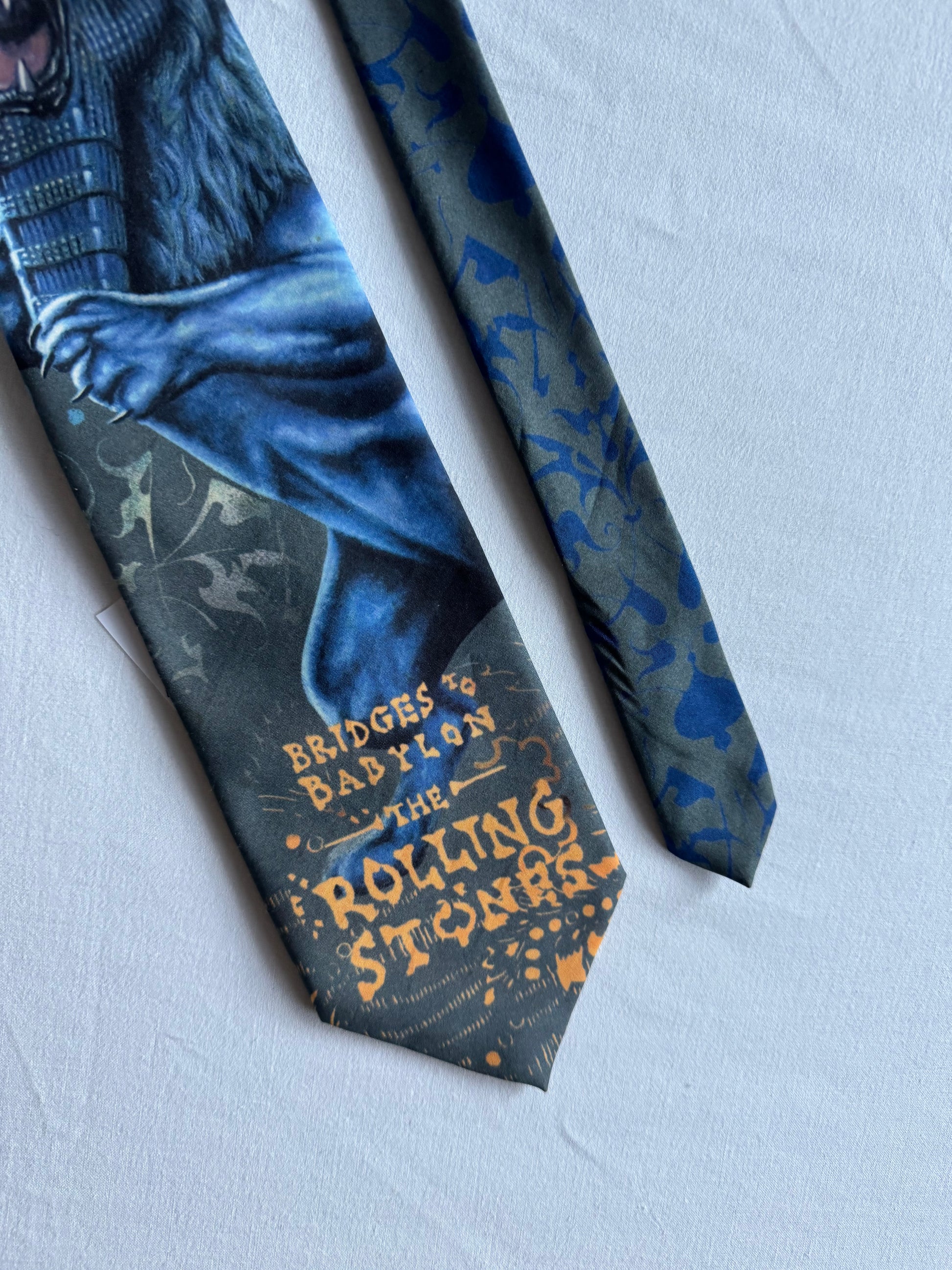 Cravată Rolling Stones din 1997 – o piesă vintage de colecție pentru fanii trupei și iubitorii de accesorii statement. Fabricată în SUA, cu design iconic inspirat de estetica legendară a trupei. Se află în stare foarte bună.
