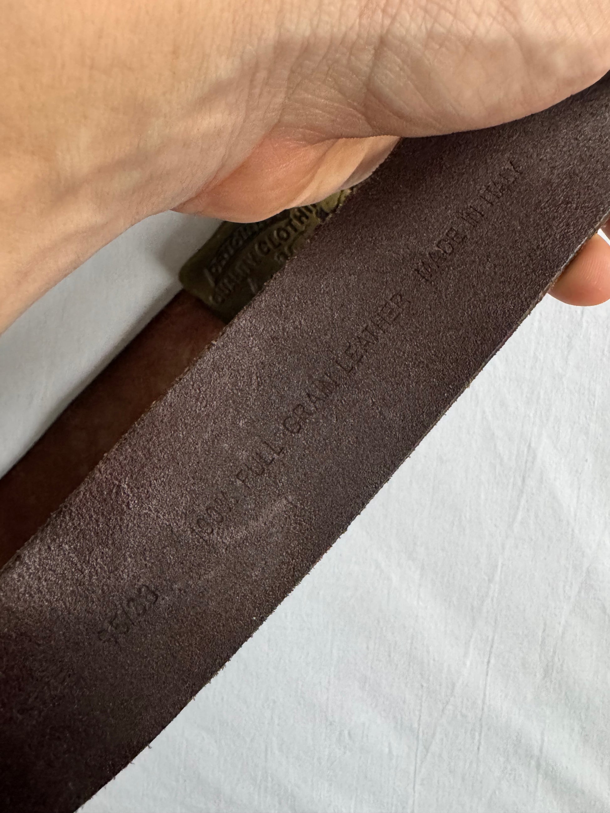 Curea vintage realizată din piele full grain maro, cu design clasic și cataramă metalică, potrivită atât pentru ținute casual cât și smart. Fabricată în Italia, piesa este în stare foarte bună, cu patină plăcută specifică pielii naturale.