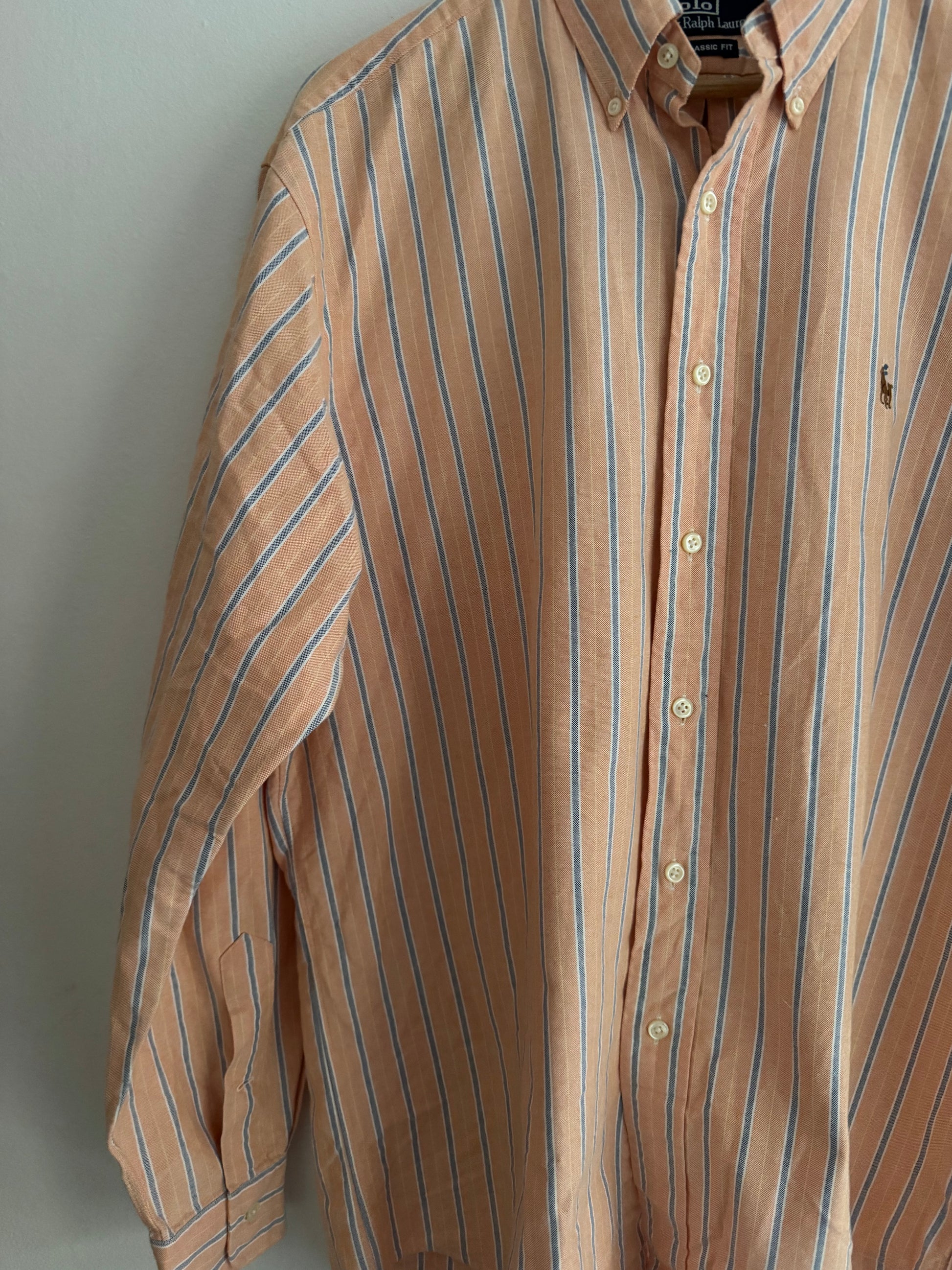 👔 Cămașă vintage Ralph Lauren în dungi somon (Mărime L)