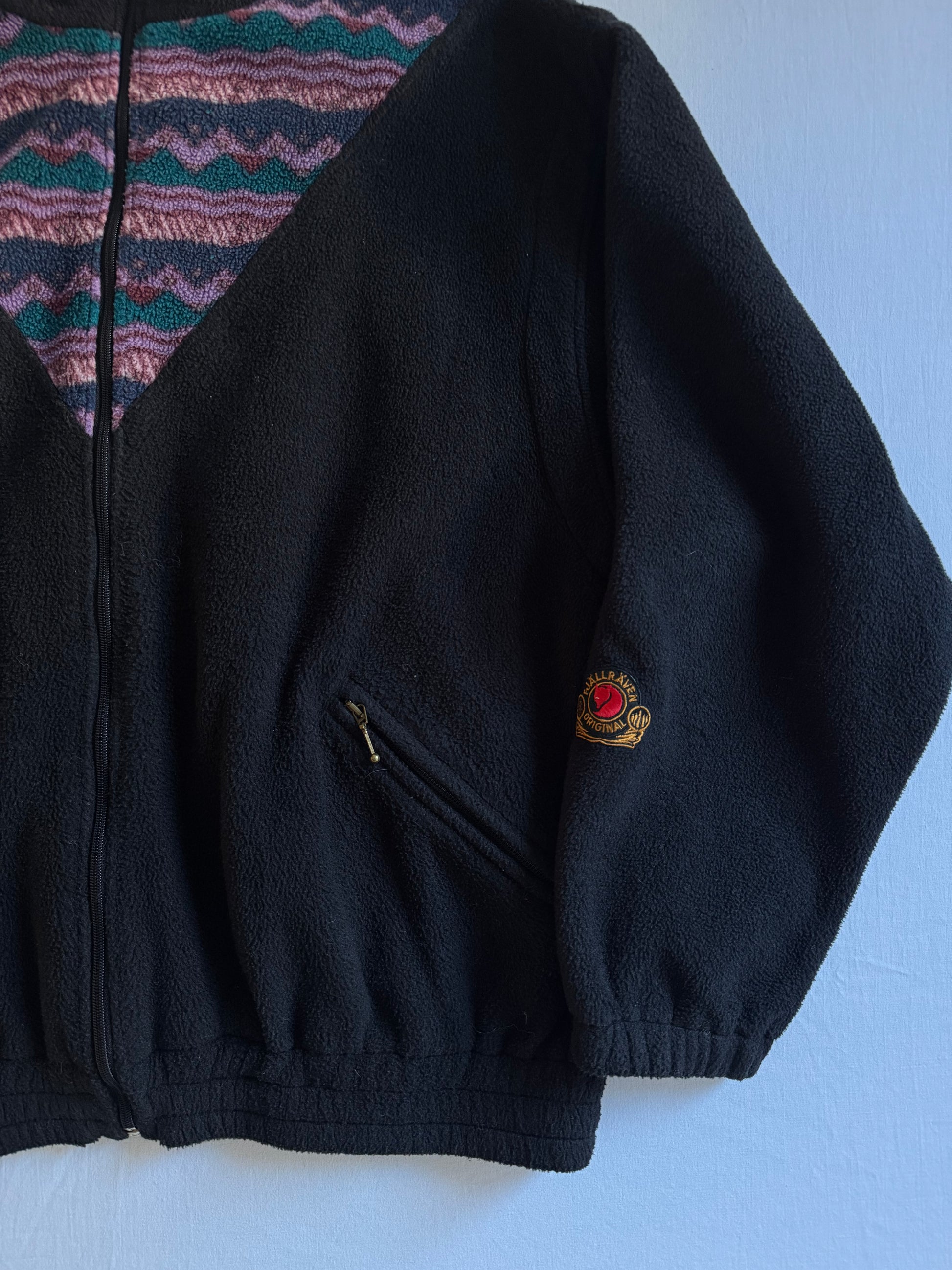 🦊 Fleece vintage Fjällräven cu imprimeu abstract – mărimea XL