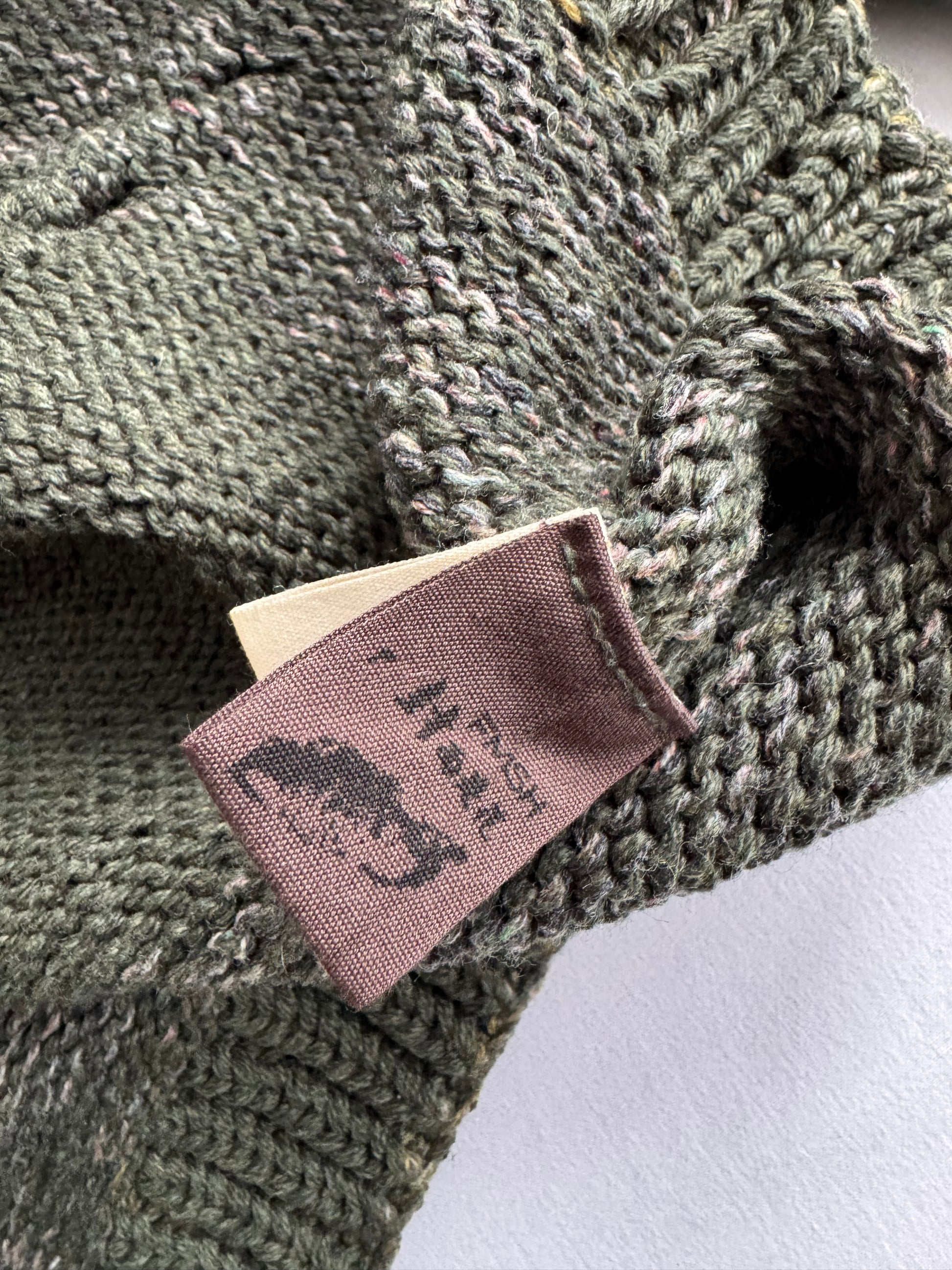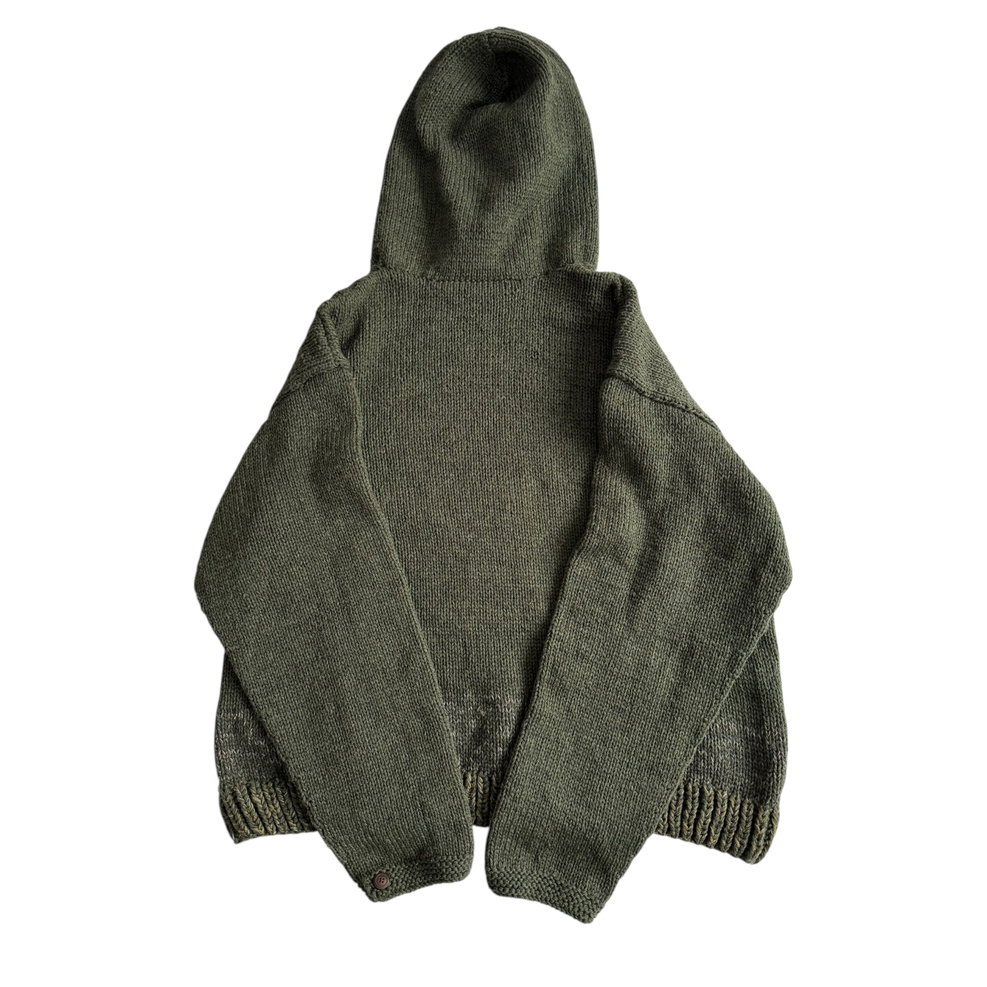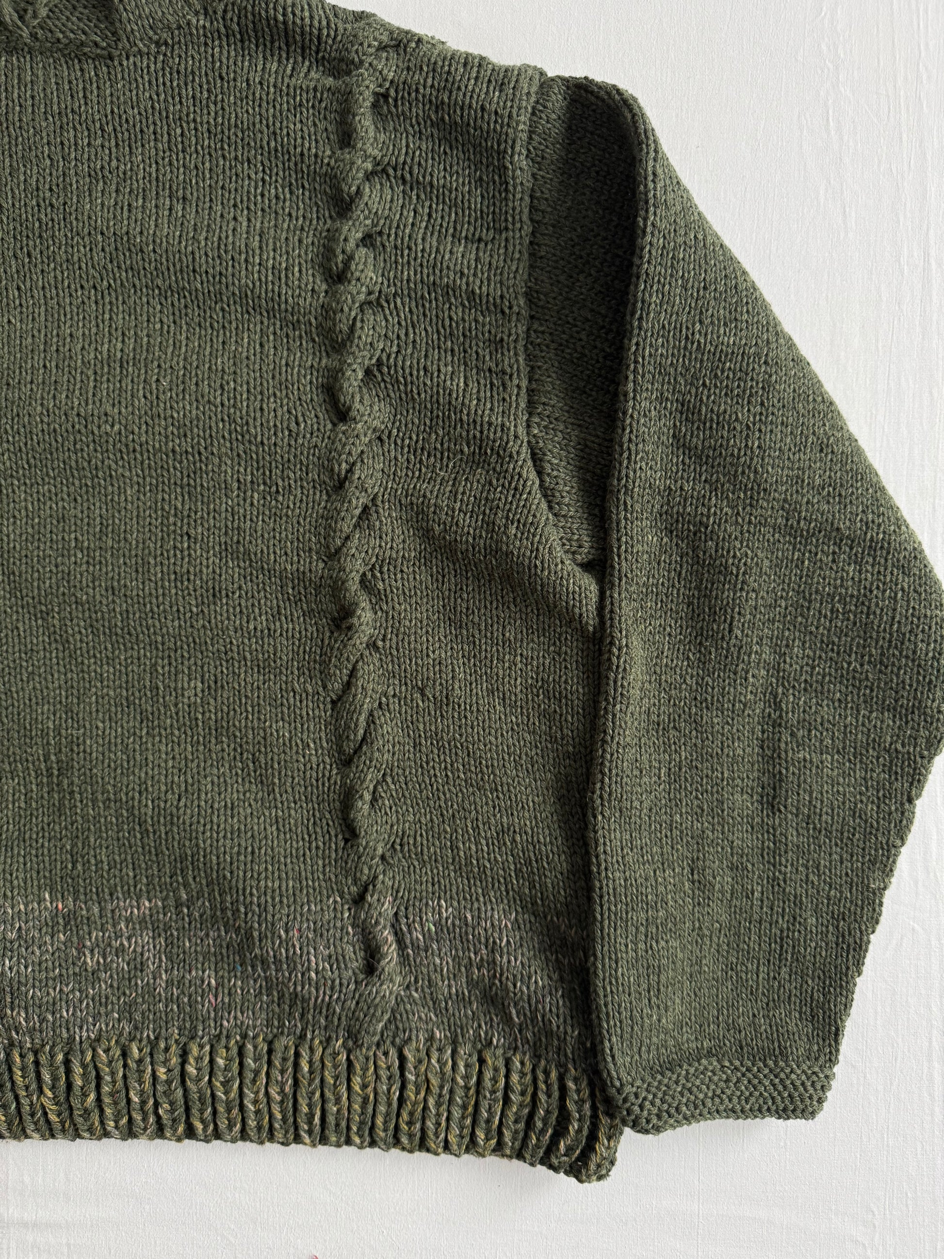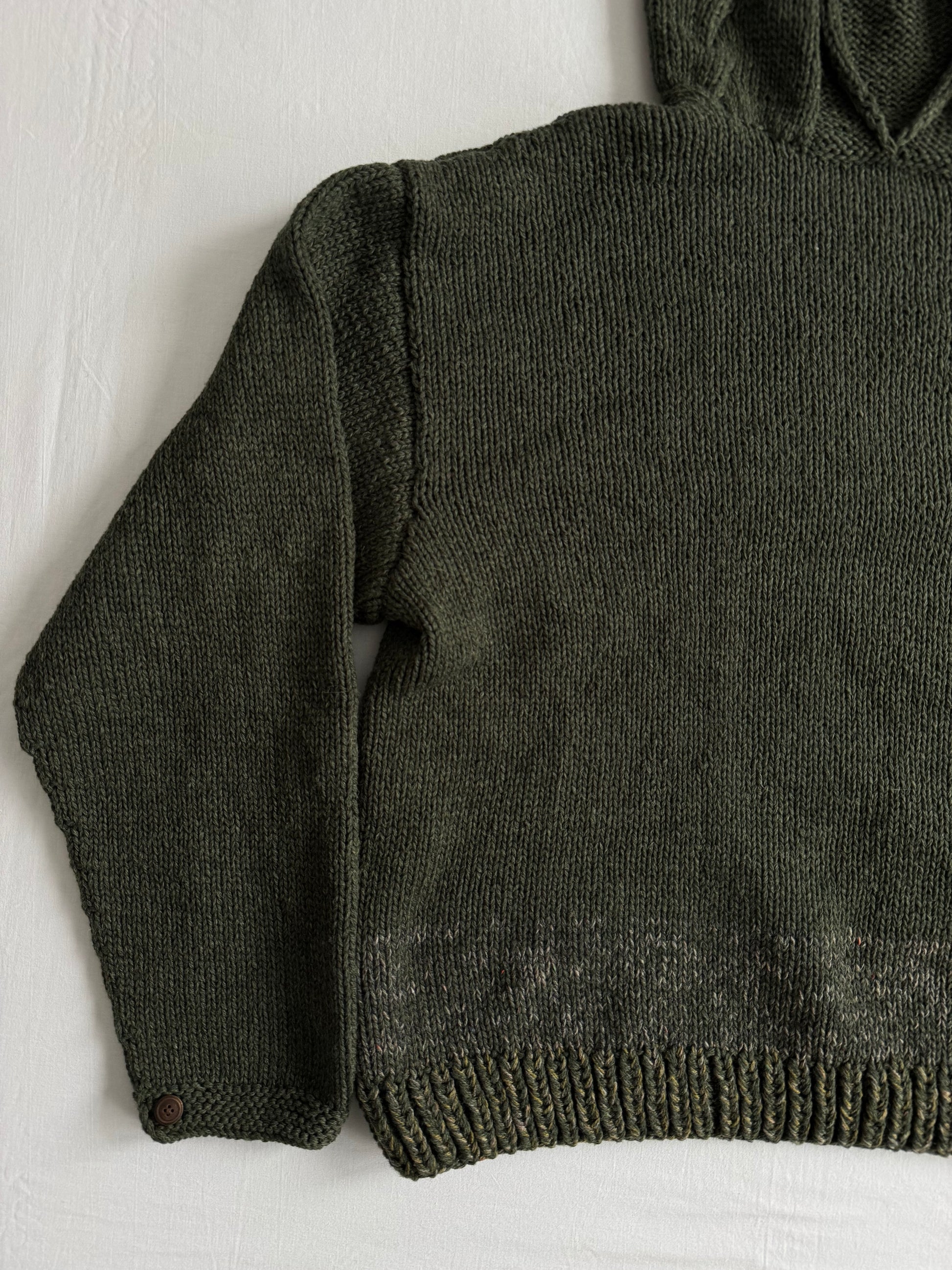 🧶 Hanorac Tricotat Vintage Verde Închis din Lână Merino – M Bărbați (Cropped Fit)