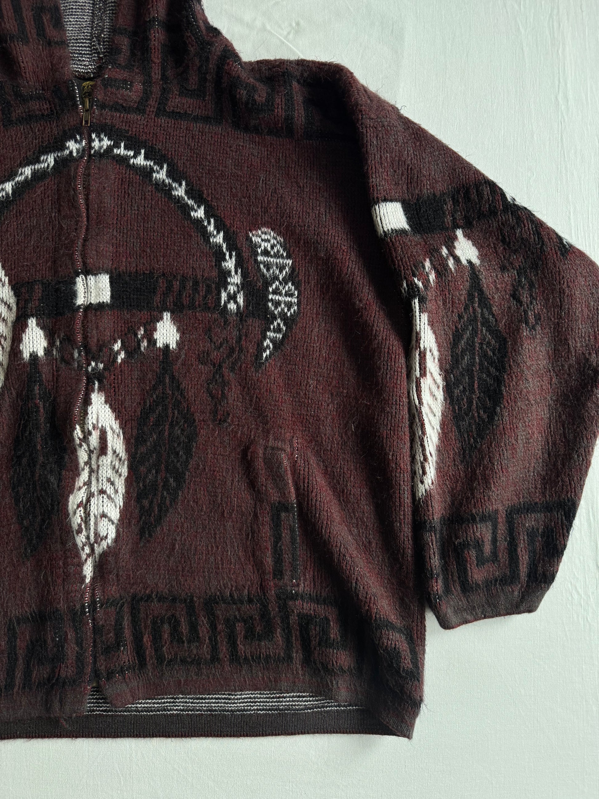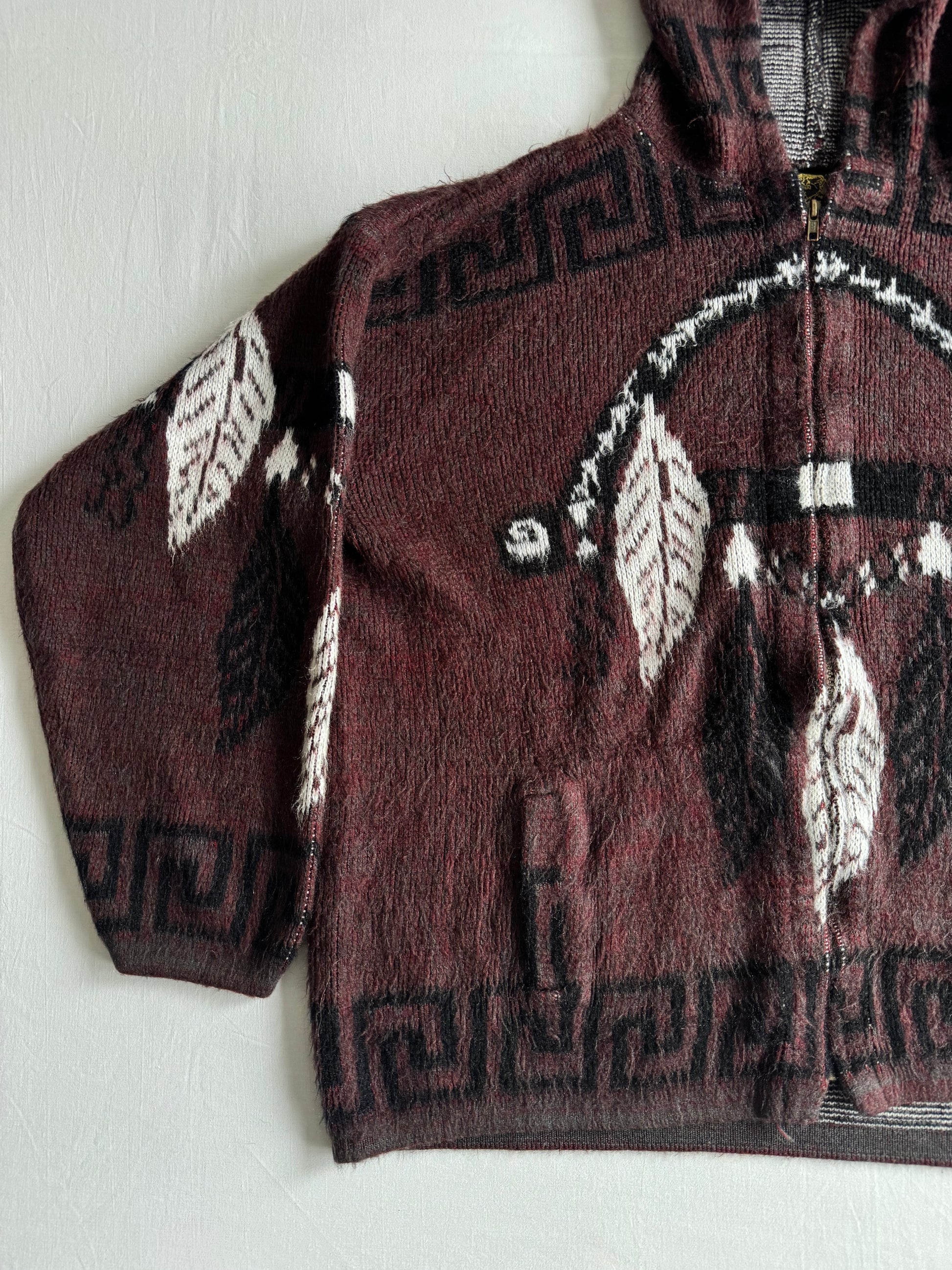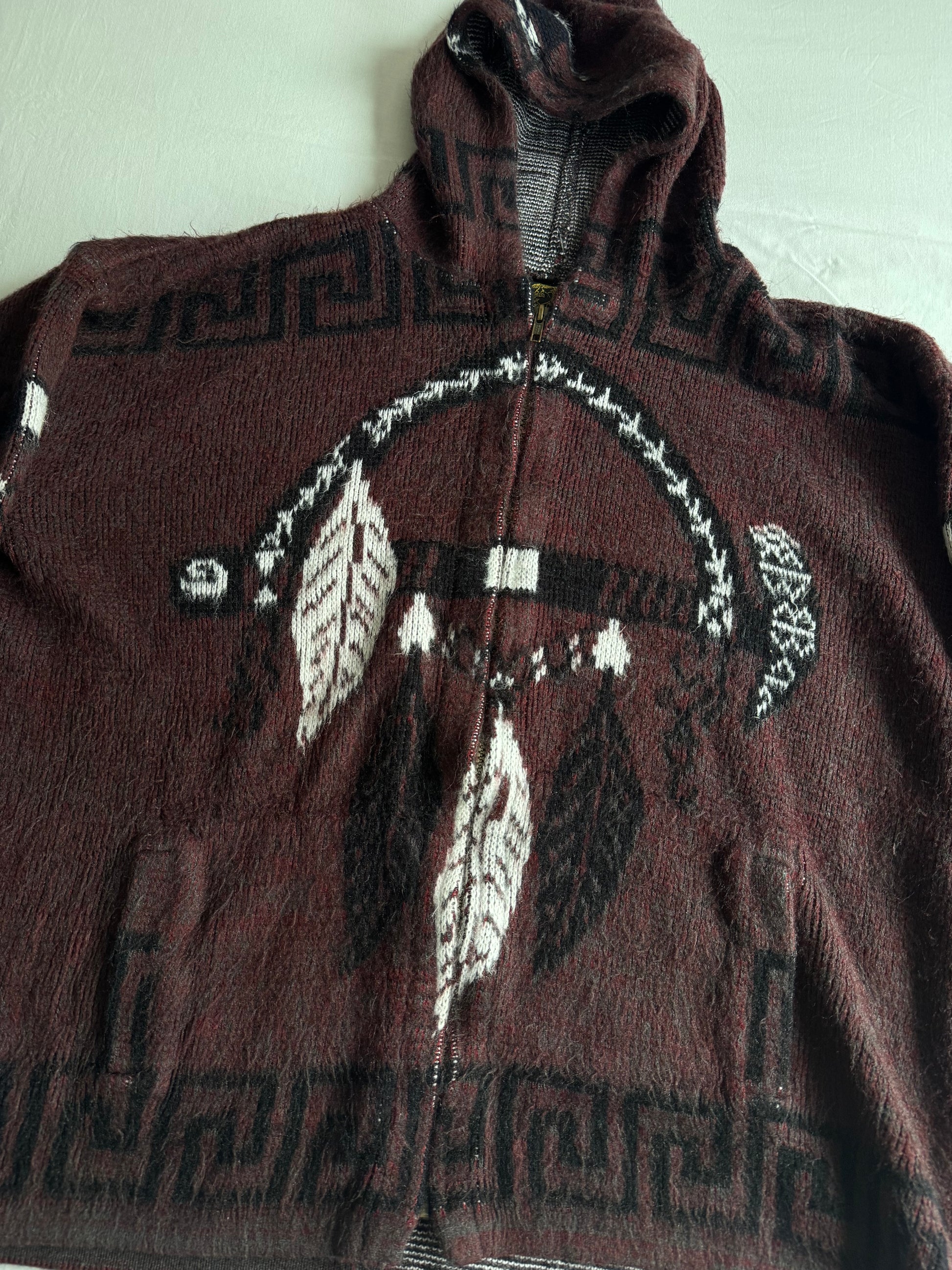 Hoodie vintage pentru bărbați, realizat dintr-un blend de alpaca, oferind confort, căldură și textură moale. Croială lejeră, potrivită pentru un XL bărbați, ideal pentru ținute casual sau layering. Fabricat în Ecuador și păstrat în stare foarte bună.