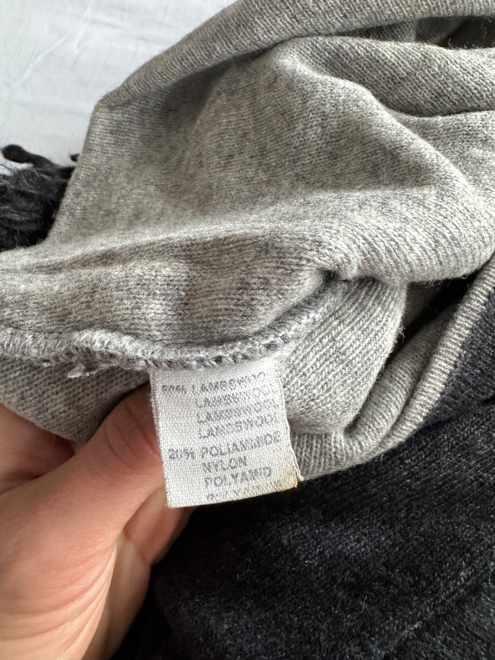 Hoodie Y2K pentru femei, realizat din lână de miel (lambswool), cu croială confortabilă și glugă relaxată. Nuanță neutră gri, perfect pentru layering sau ținute casual cozy. Fabricat în Italia și păstrat în stare foarte bună. Nu are etichetă de mărime; conform măsurătorilor, se potrivește aproximativ unui M / L damă.