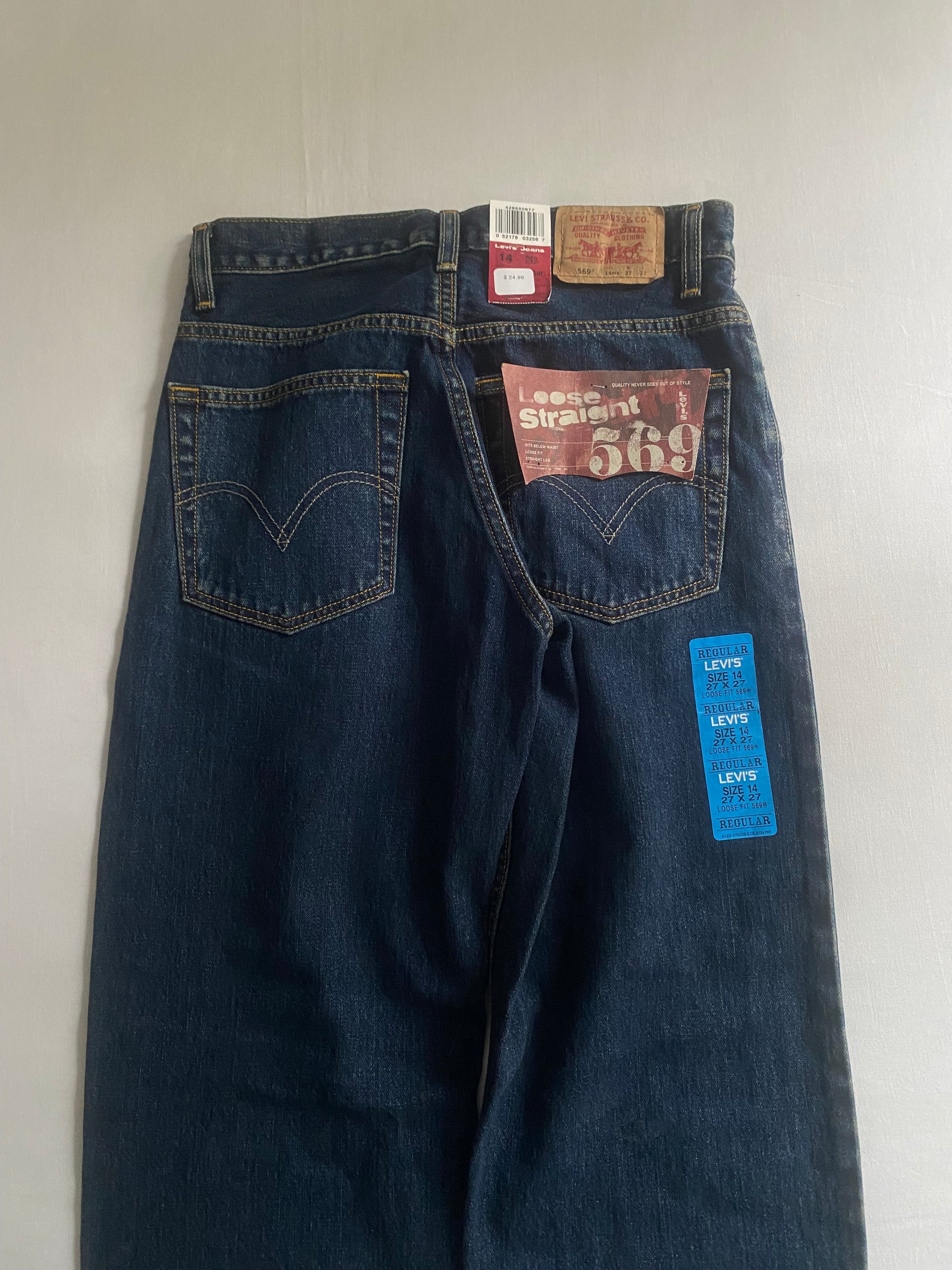 Jeanși Y2K Levi’s model 569, cu croială loose fit, o piesă reprezentativă pentru stilul anilor 2000. Denim autentic, într-o mărime mai rară, perfect pentru un look relaxed sau streetwear retro. Produsul este nou, cu etichete (NWT).