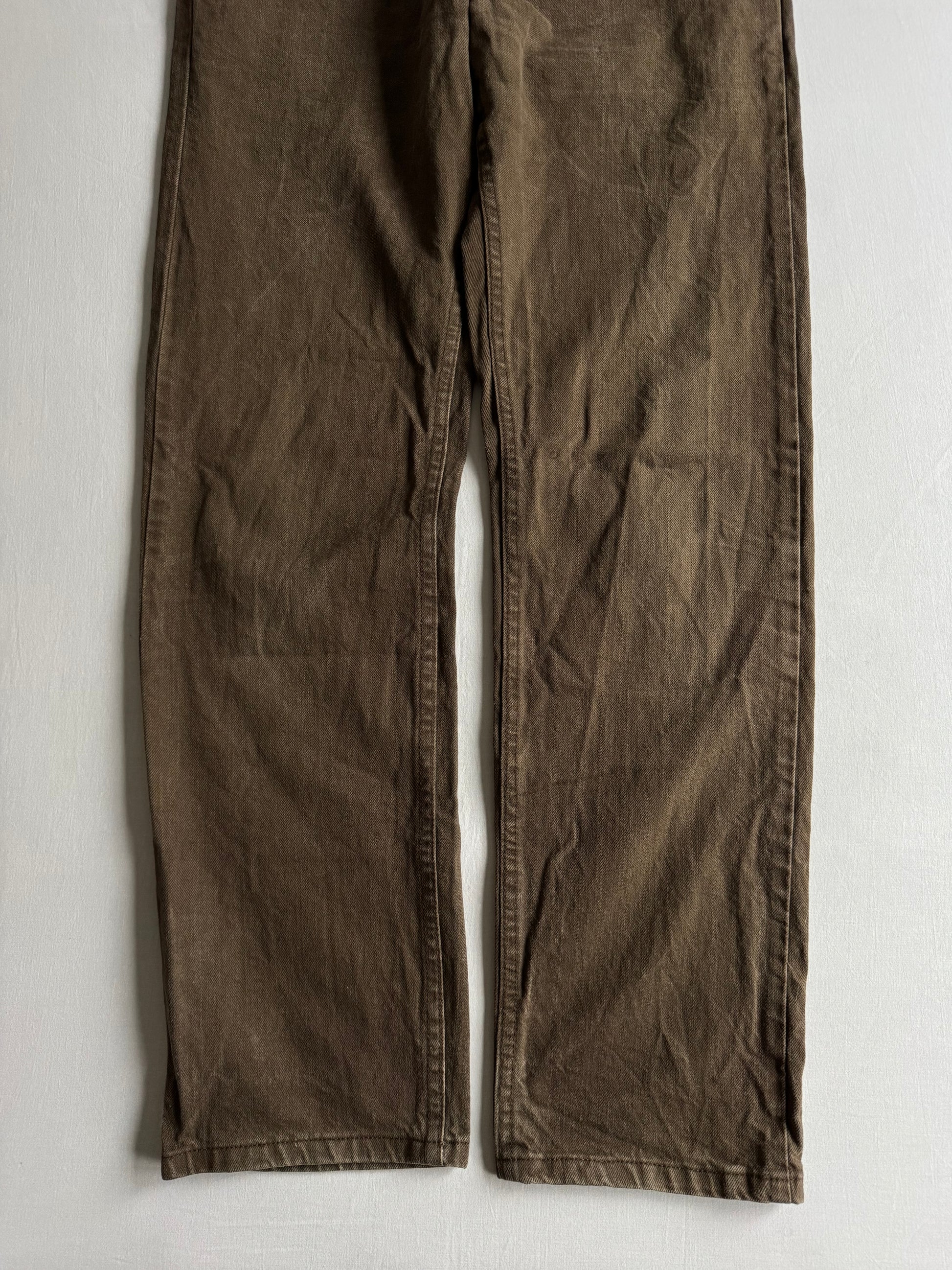 Jeans pentru bărbați, model regular fit, în nuanță washed brown, oferind un look casual și versatil. Realizați din material SUA și fabricați în Mexic, etichetați W32 x L32. Piesă în stare foarte bună.