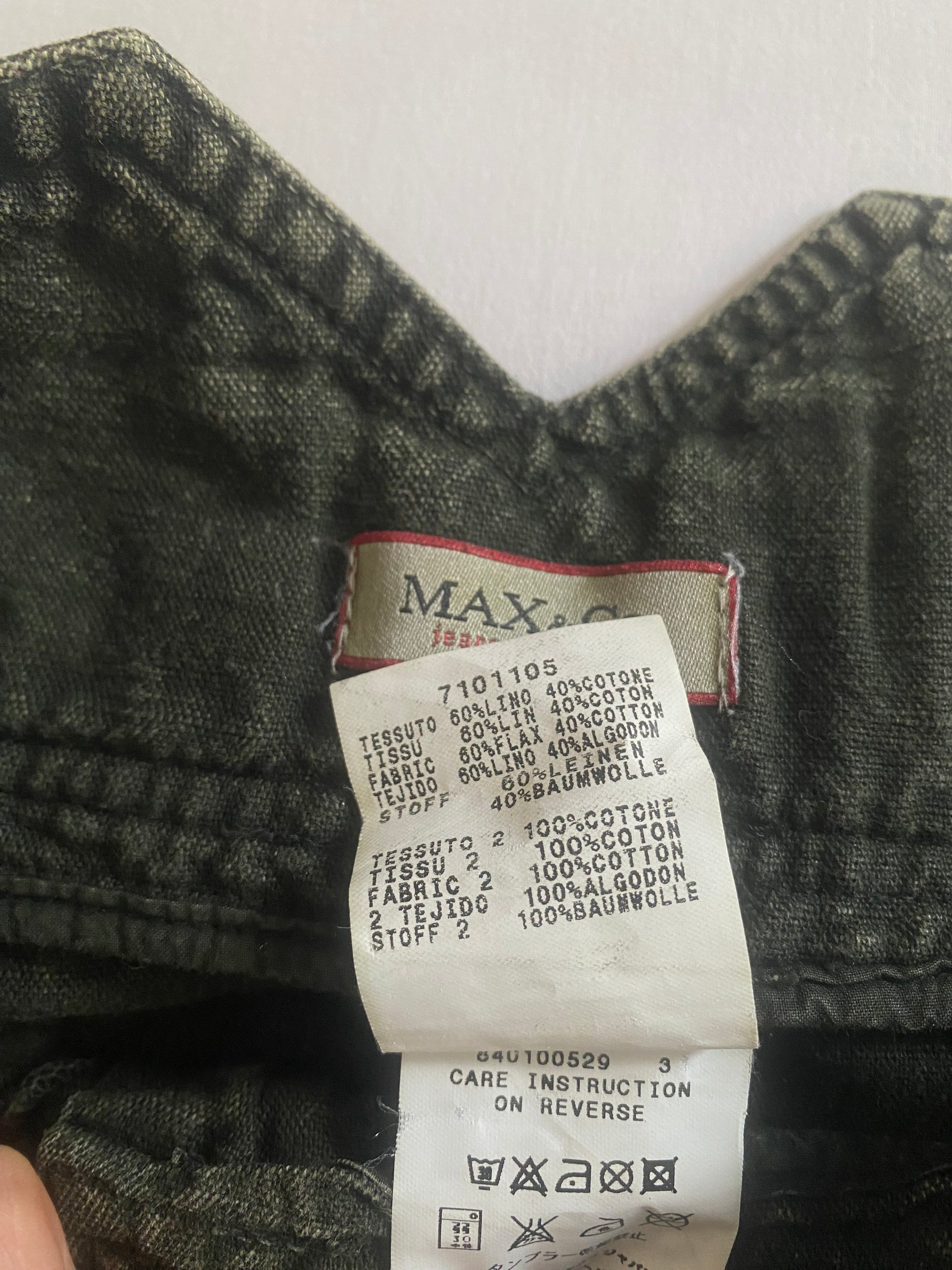 Fustă Y2K vintage semnată Max & Co, confecționată în Italia 🇮🇹 dintr-un amestec natural de bumbac și in, în nuanță verde închis washed. Croială lejeră și feminină, textură ușor structurată, perfectă pentru zilele călduroase ☀️.