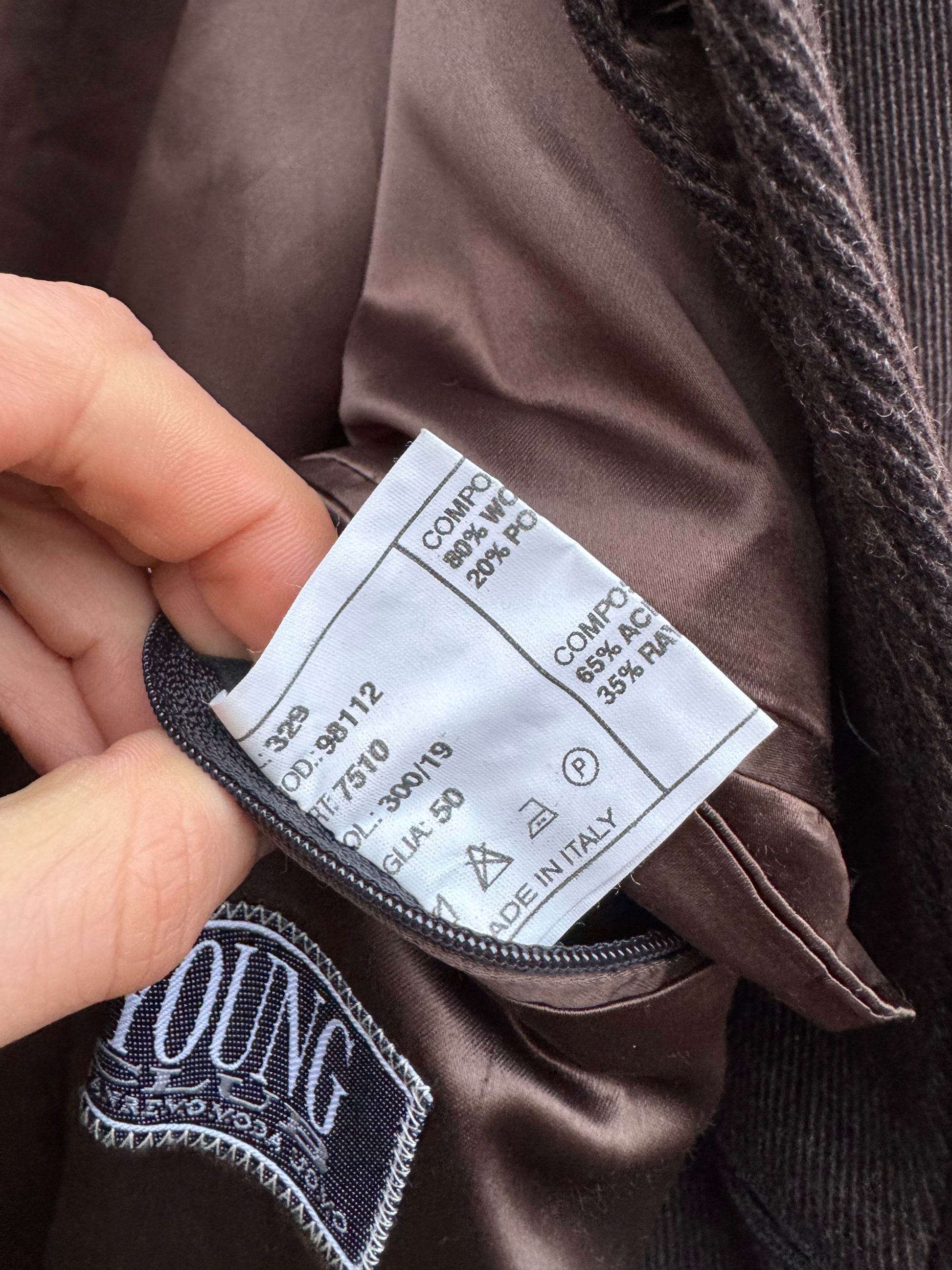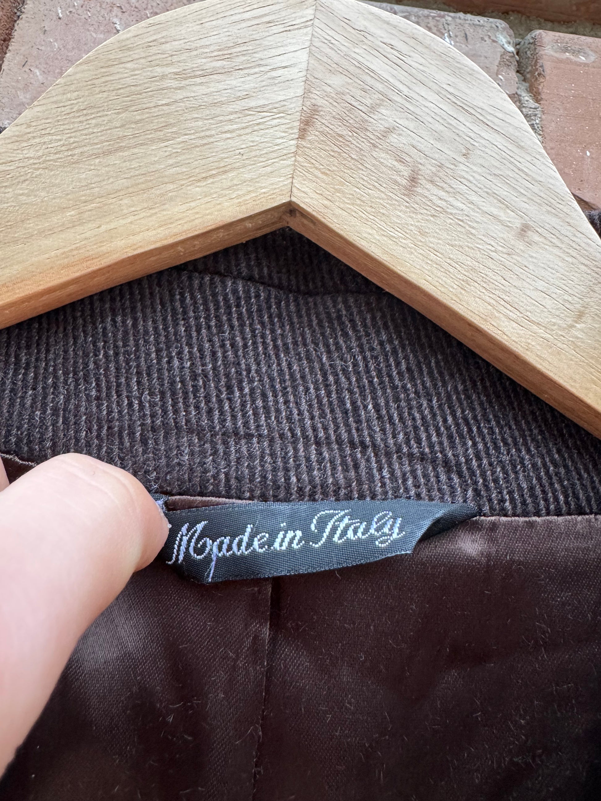 Palton vintage pentru bărbați, realizat din lână într-o nuanță elegantă de maro închis. Croială clasică, cu structură frumoasă și purtare confortabilă. Fabricat în Italia. Se află în stare foarte bună, fără defecte notabile.