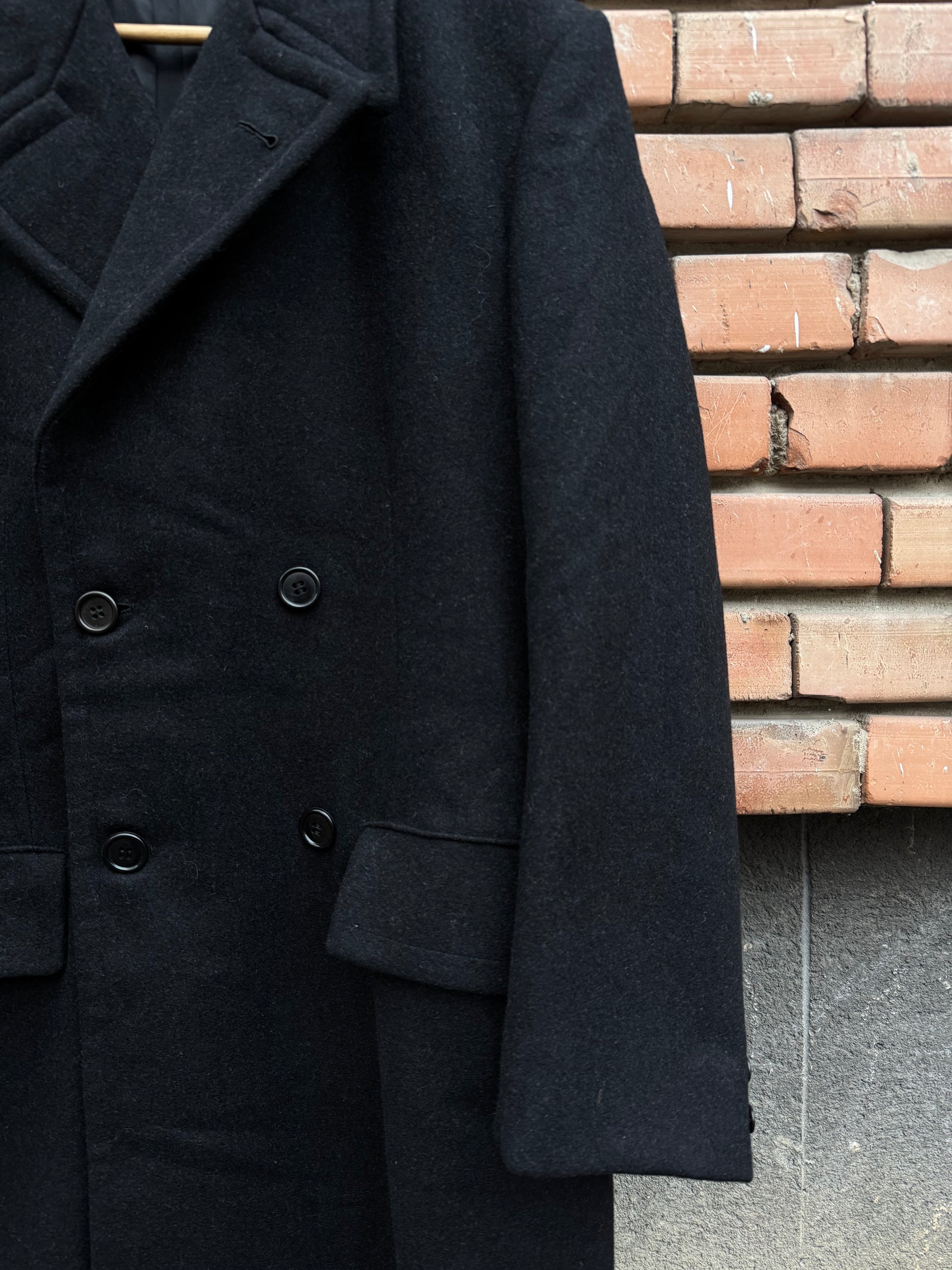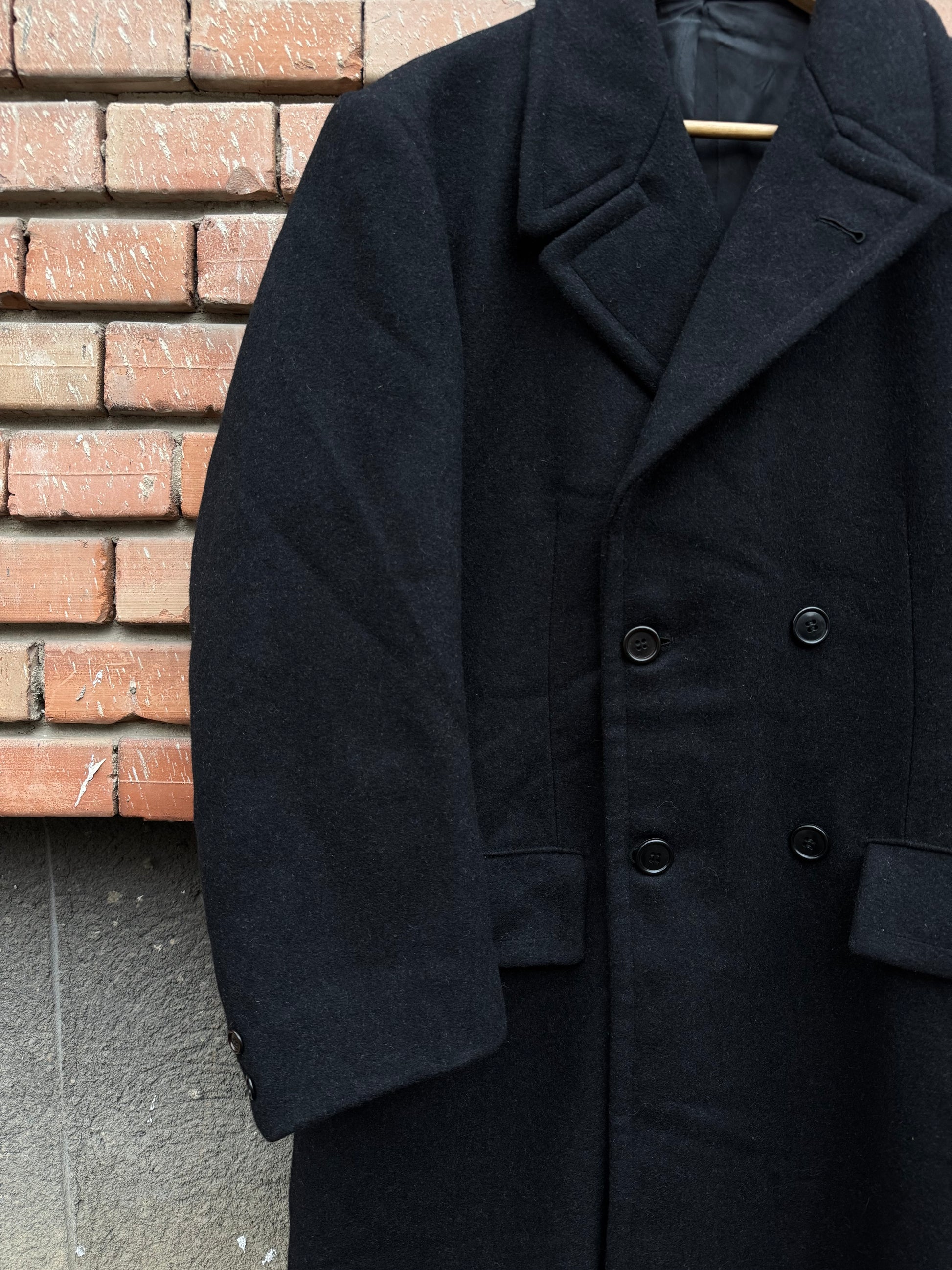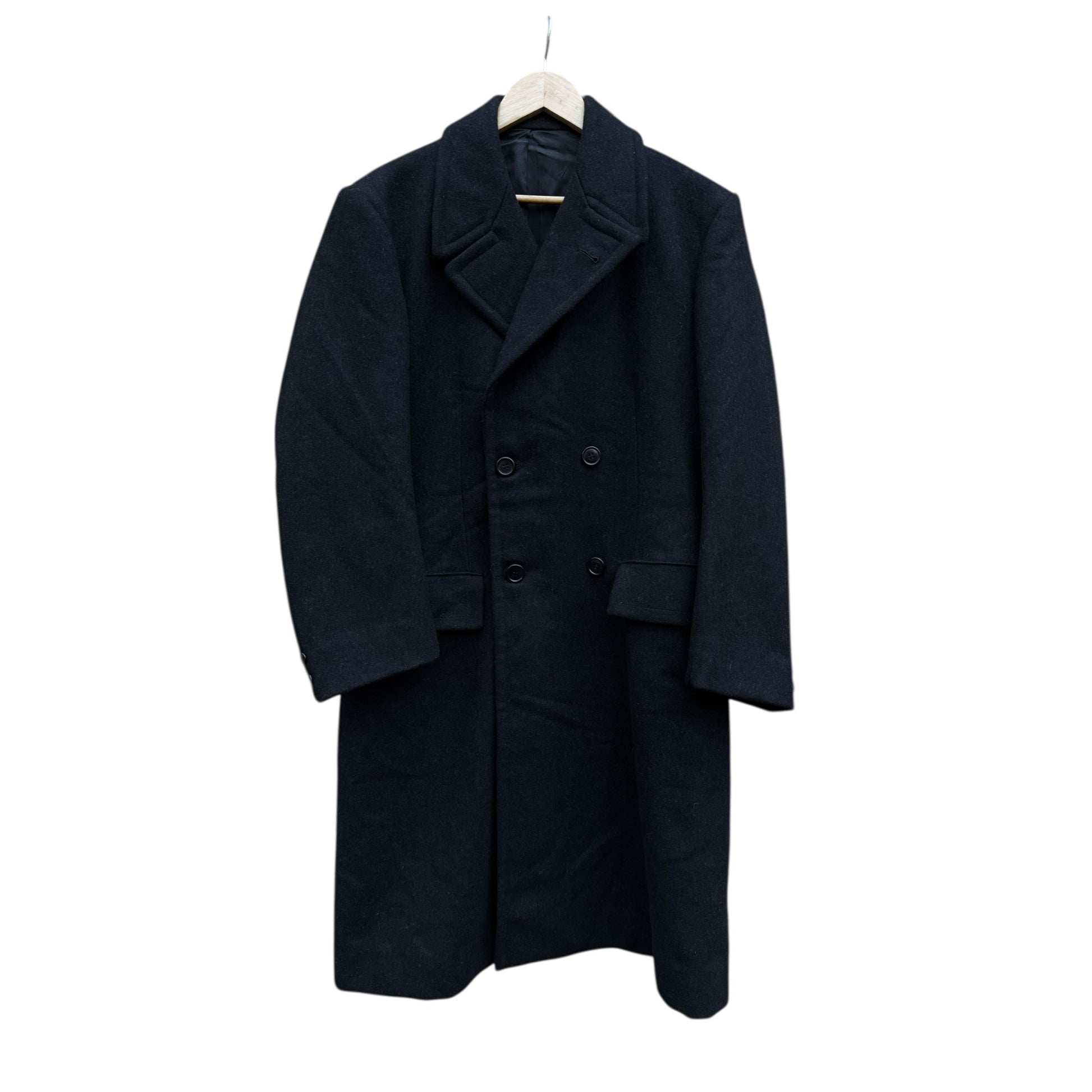 🧥 Palton Vintage Bărbați Negru Double Breasted din Lână Pură – Marimea EU 50 (L)