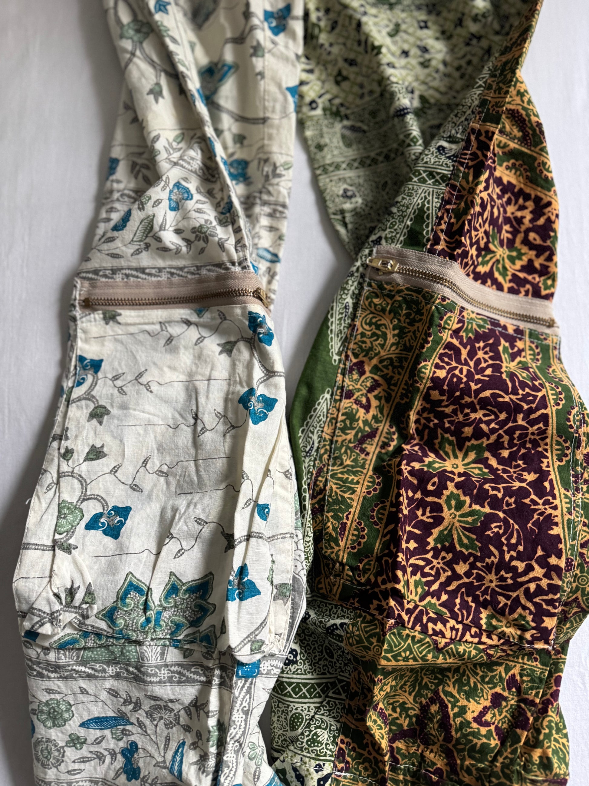 Pantaloni cargo vintage P.A.R.O.S.H. din anii ’90, realizați în stil patchwork cu detalii grafice și croială lejeră. O piesă statement, specifică esteticii brandului italian, combinația de materiale și imprimeuri conferind un aer unic și contemporan. Tivul reglabil cu fermoar permite personalizarea look-ului.