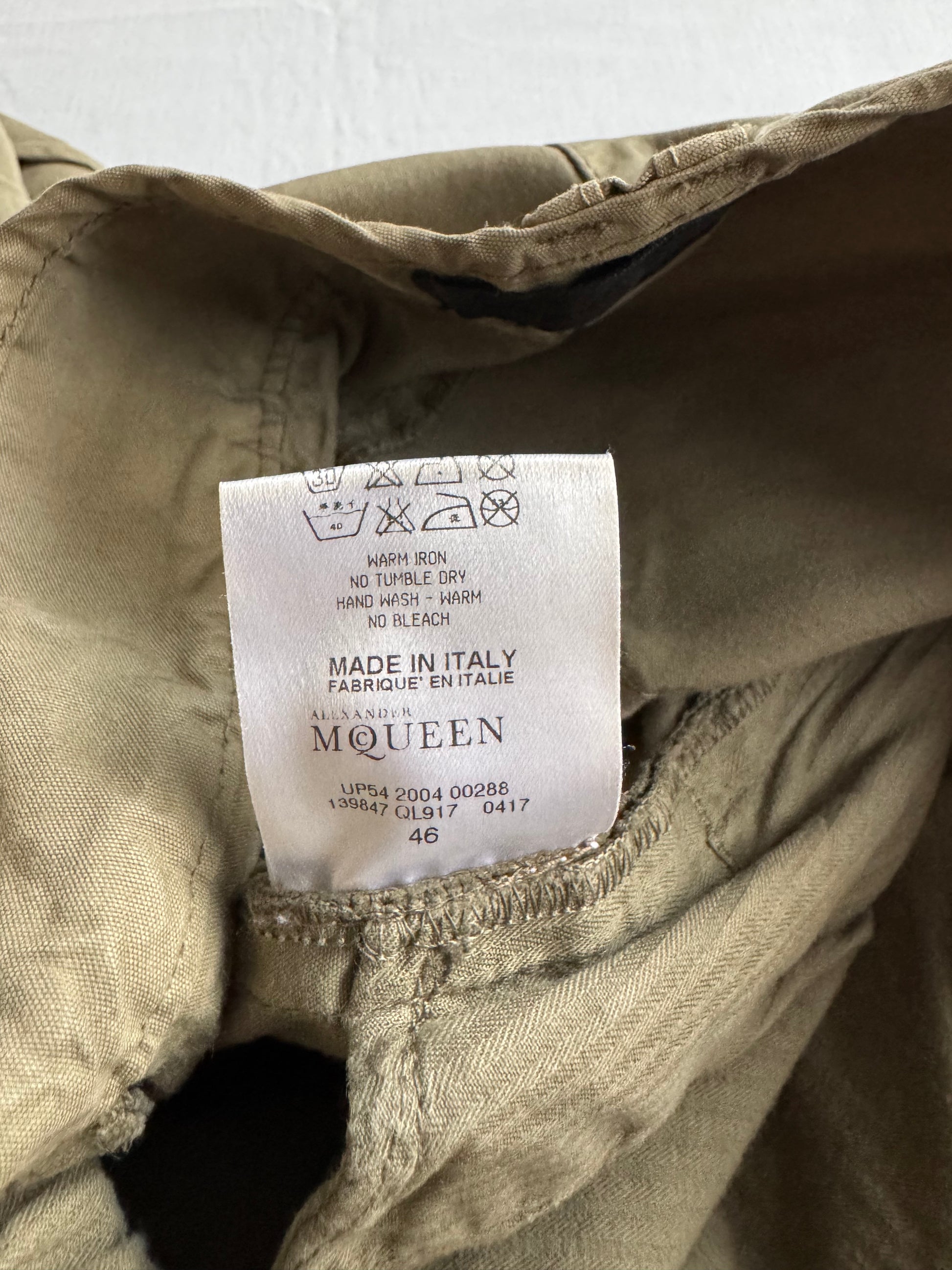 Pantaloni cargo Y2K Alexander McQueen, realizați în Italia din materiale de calitate superioară, într-o nuanță versatilă de olive green. Croială lejeră, cu detalii utilitare specifice esteticii anilor 2000 – o piesă statement semnată de unul dintre cei mai apreciați designeri britanici.