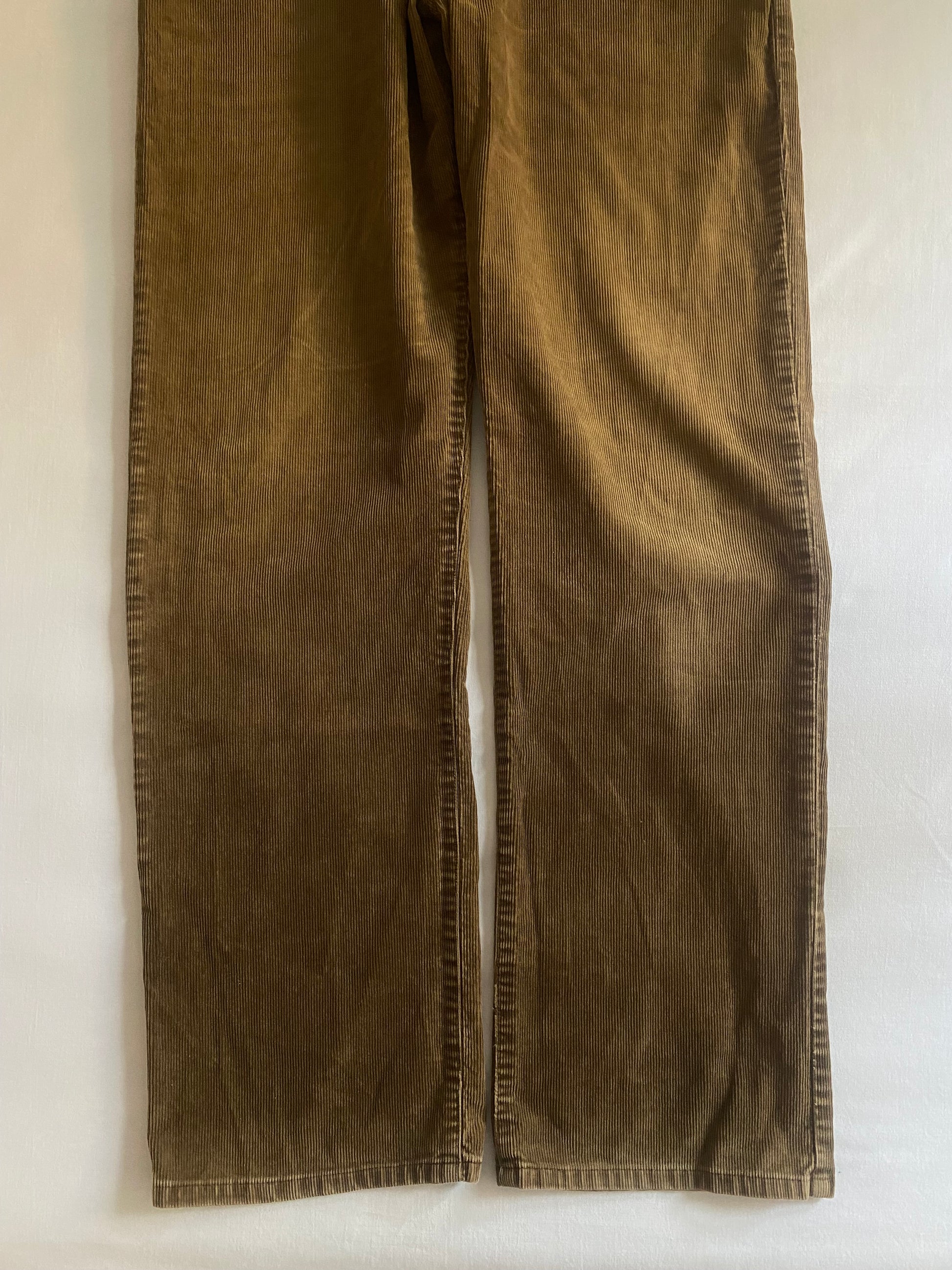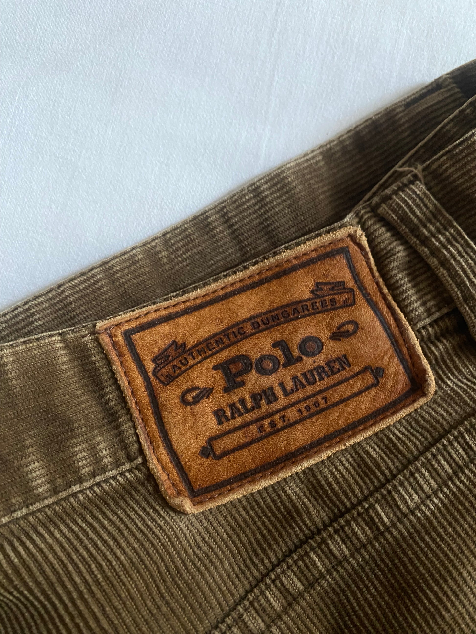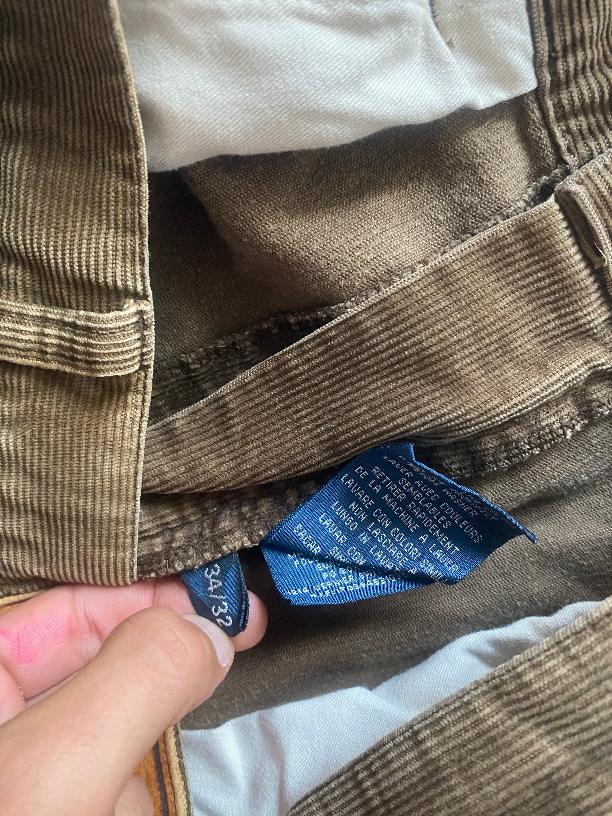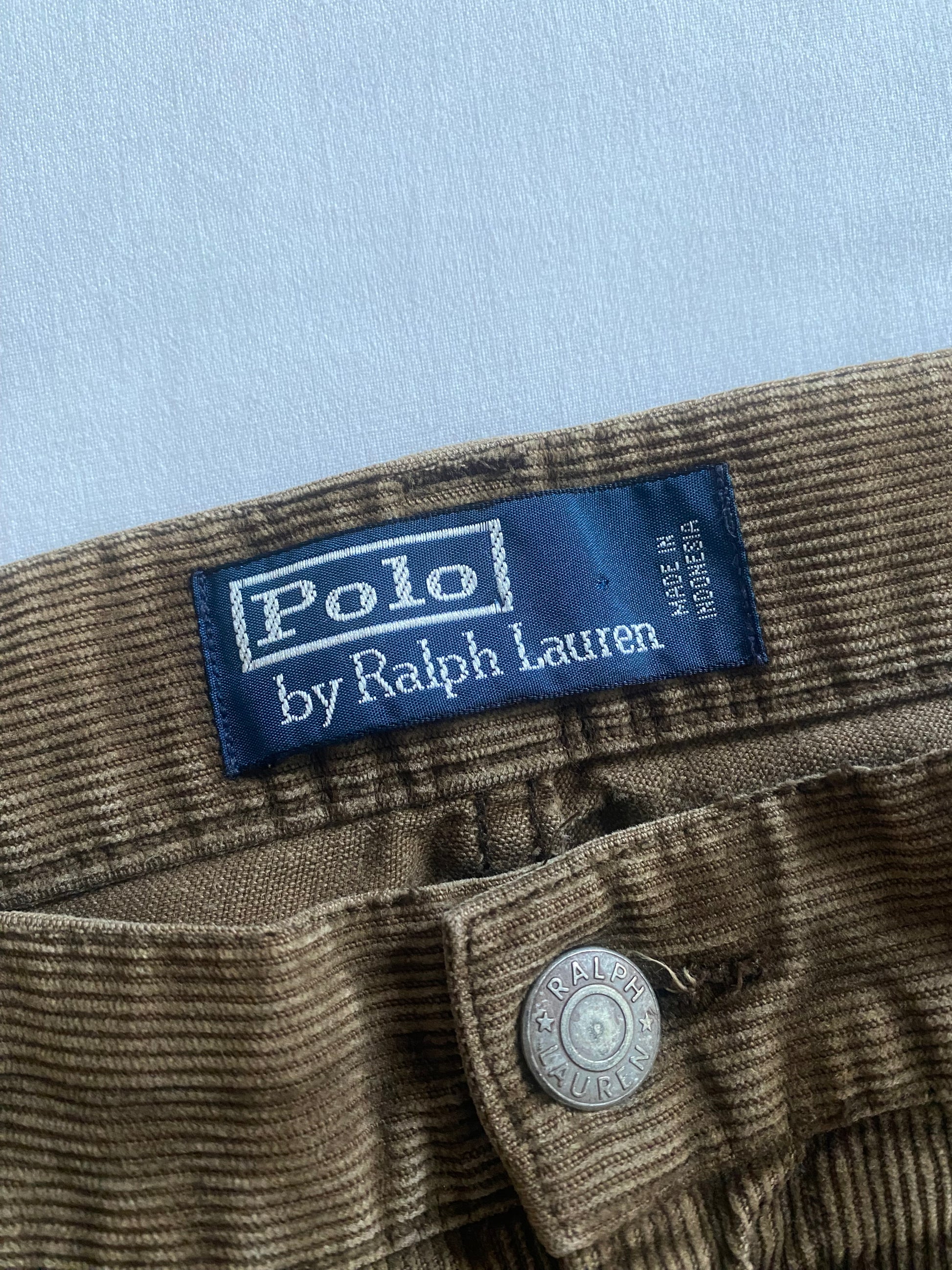 Pantaloni vintage Polo by Ralph Lauren din catifea cordonată (corduroy) de culoare maro. Model clasic și versatil, cu croială dreaptă și material de calitate, specific brandului. O piesă ideală pentru ținute smart casual sau retro-inspired.