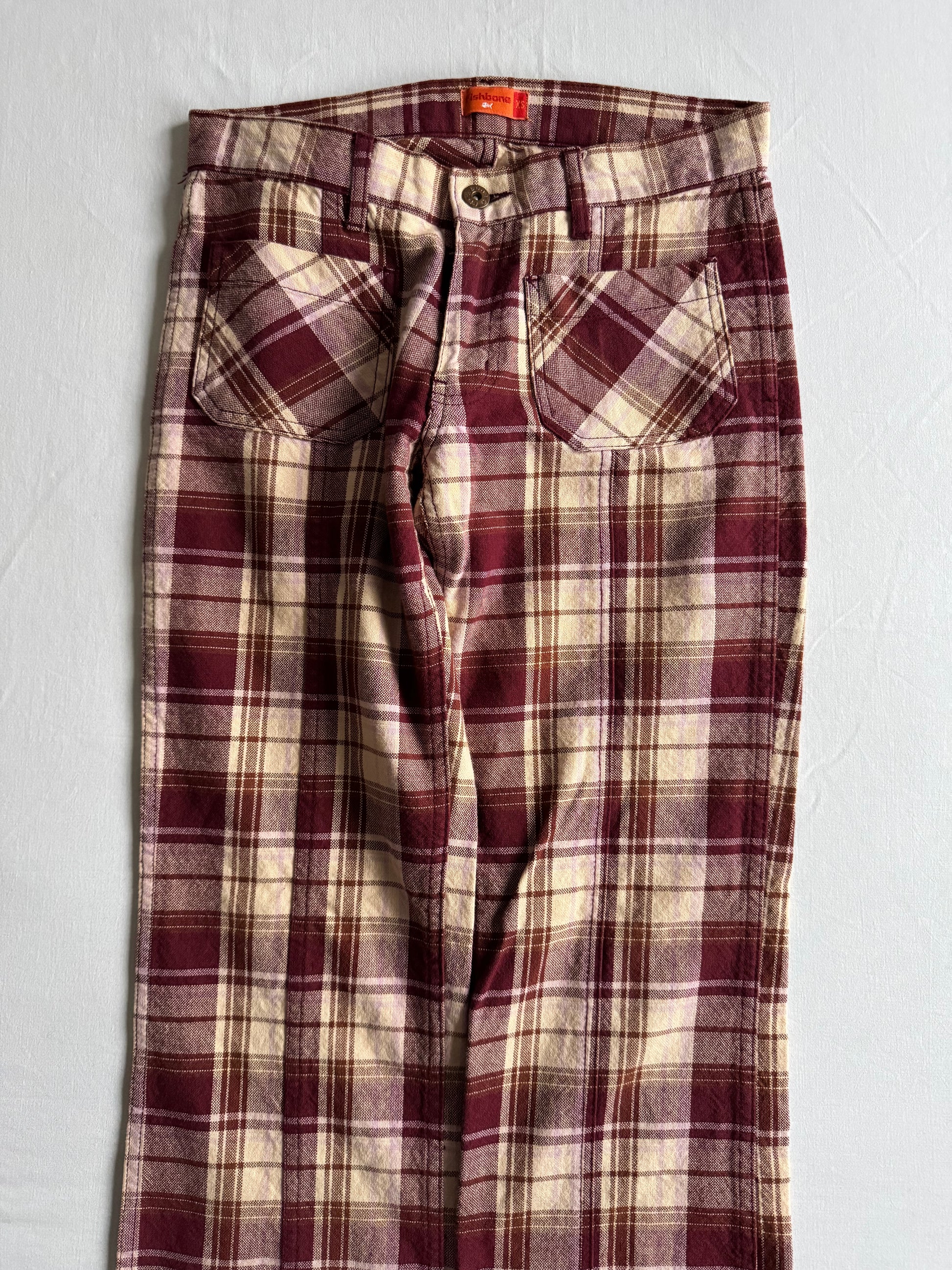 🎣 👖 Pantaloni Y2K Fishbone Flared în Carouri – XS Femei