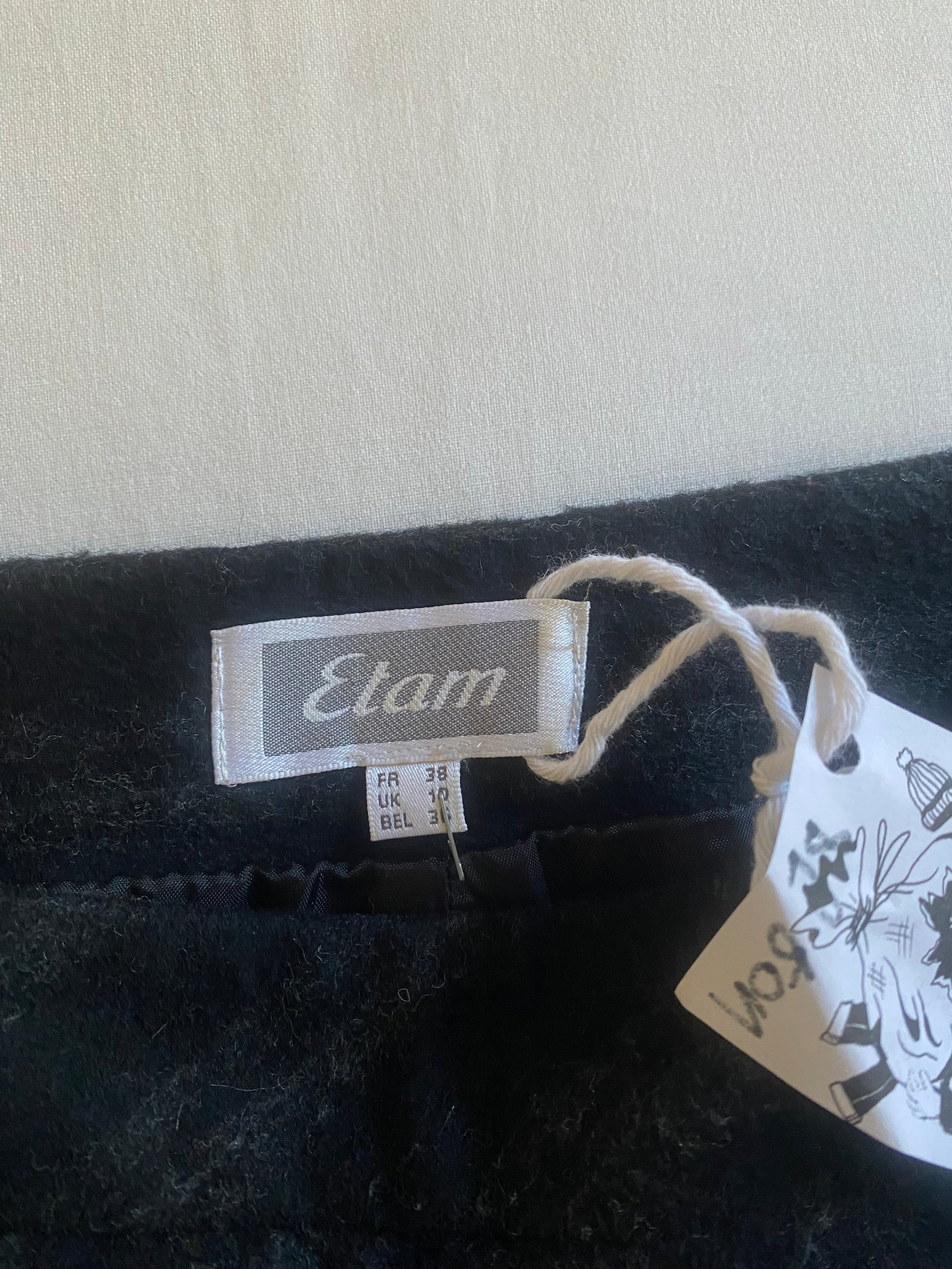 Pantaloni Y2K confecționați din 75% lână și 25% poliamidă, într-o nuanță neagră cu dungi foarte fine, subtil vizibile. Croială bootcut, clasică și elegantă, potrivită pentru outfituri retro sau office-chic. Piesa este etichetată EU 38 și se află în stare foarte bună.