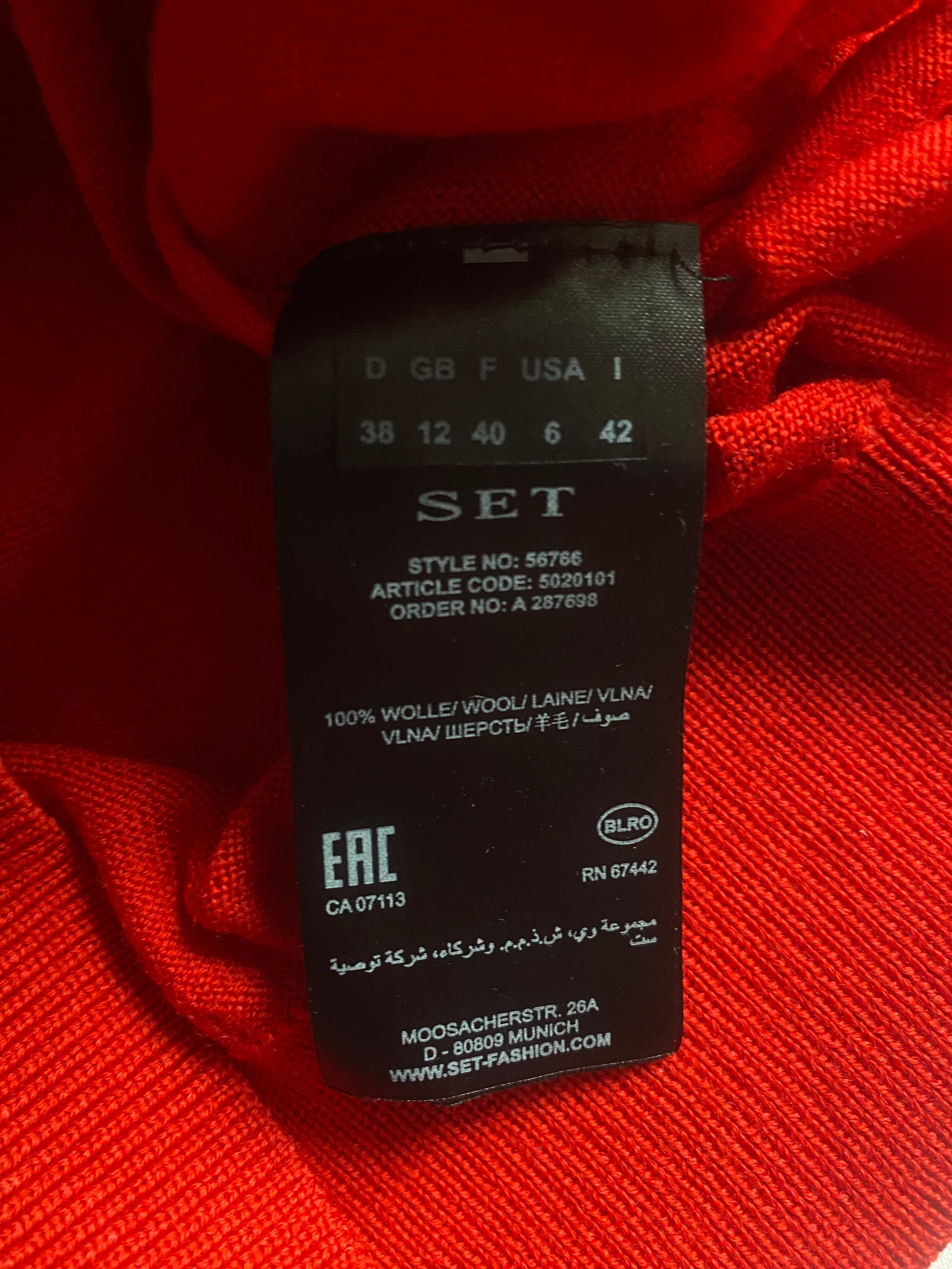 🍒 🐑 Pulover Roşu – Scripted – Lână Merinos – EU 38