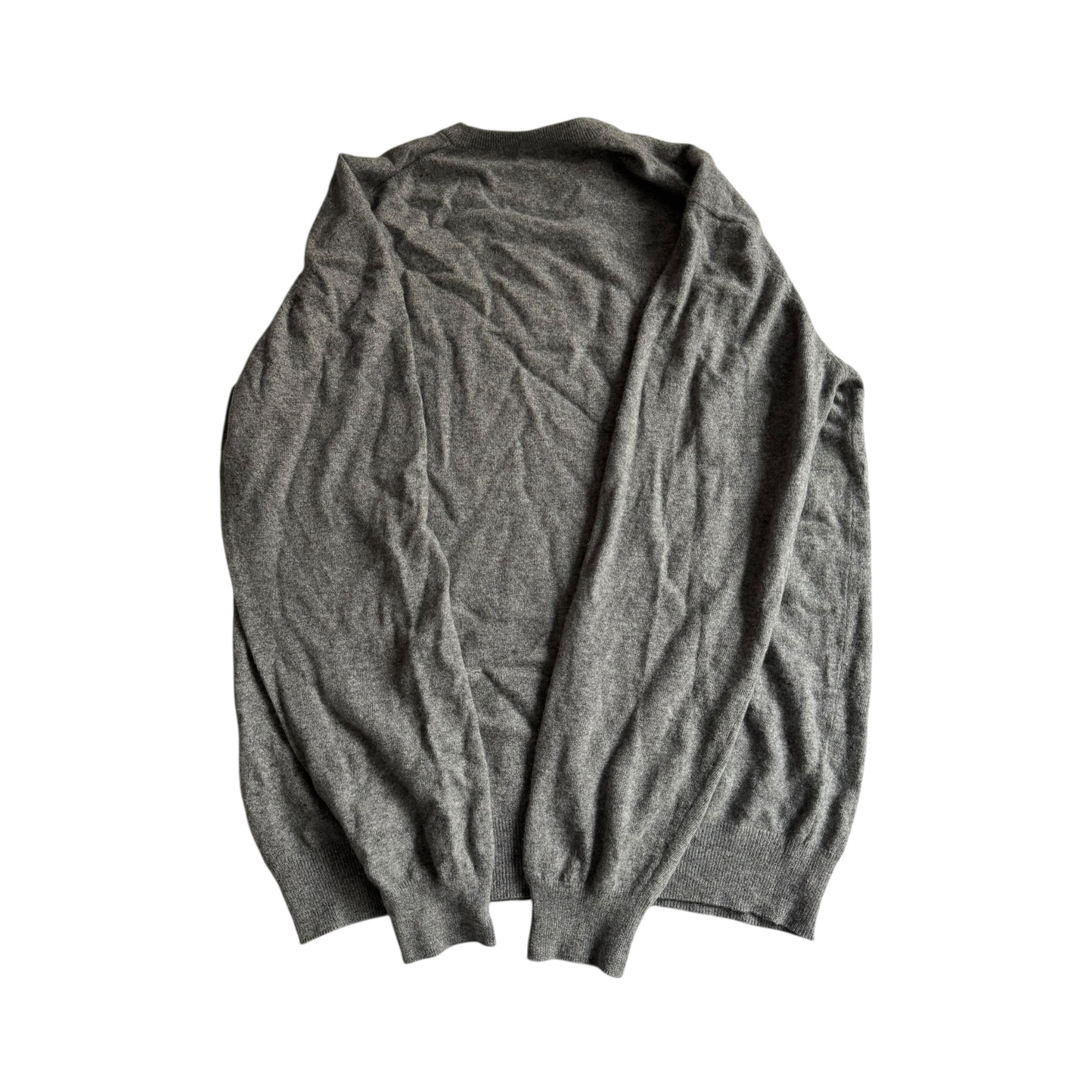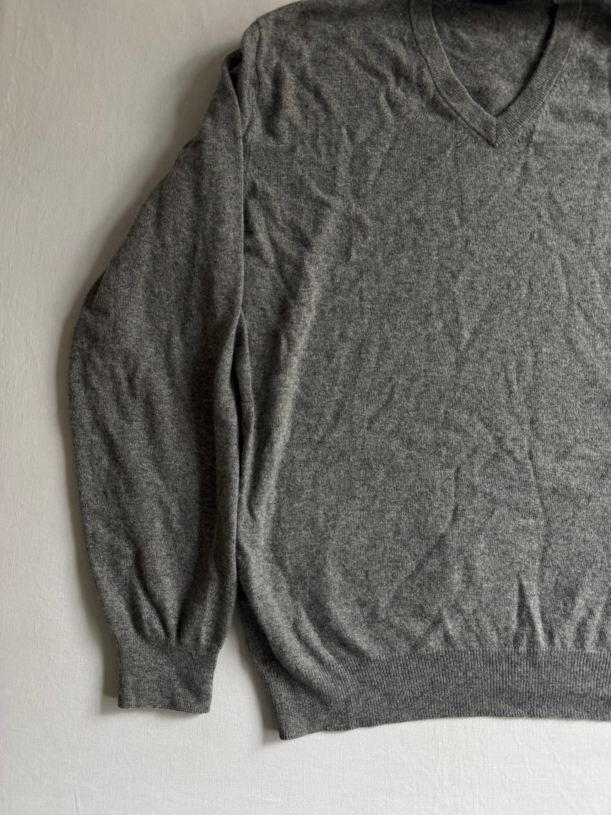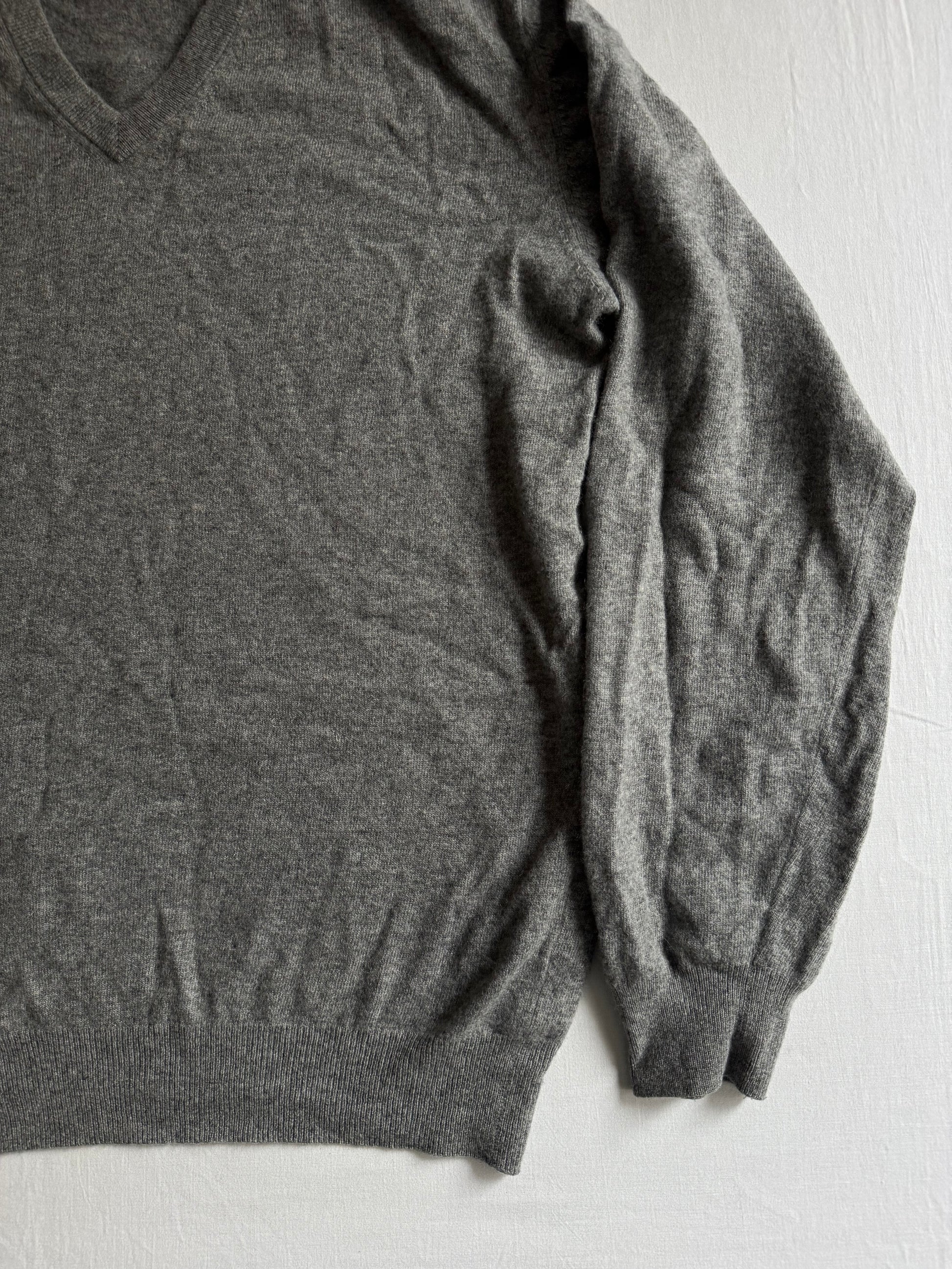 🩶 Pulover Gri cu Guler în V – Amestec Merino, Angora & Cașmir – Mărime L