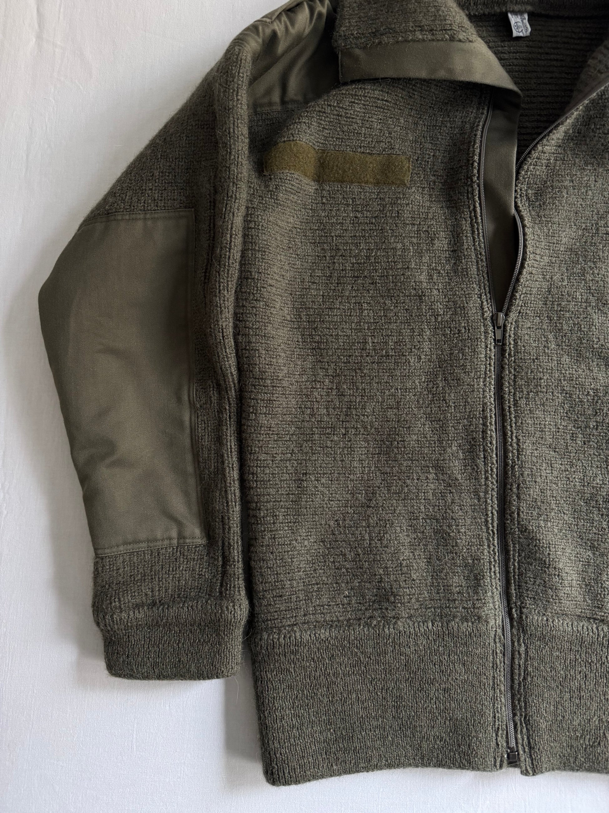 Pulover militar autentic Austrian Army (1995), confecționat din 100% lână pură și groasă, specifică uniformelor militare austriece din anii ‘90. O piesă vintage funcțională, cu o croială practică și structurată, ideală pentru un look utilitar.