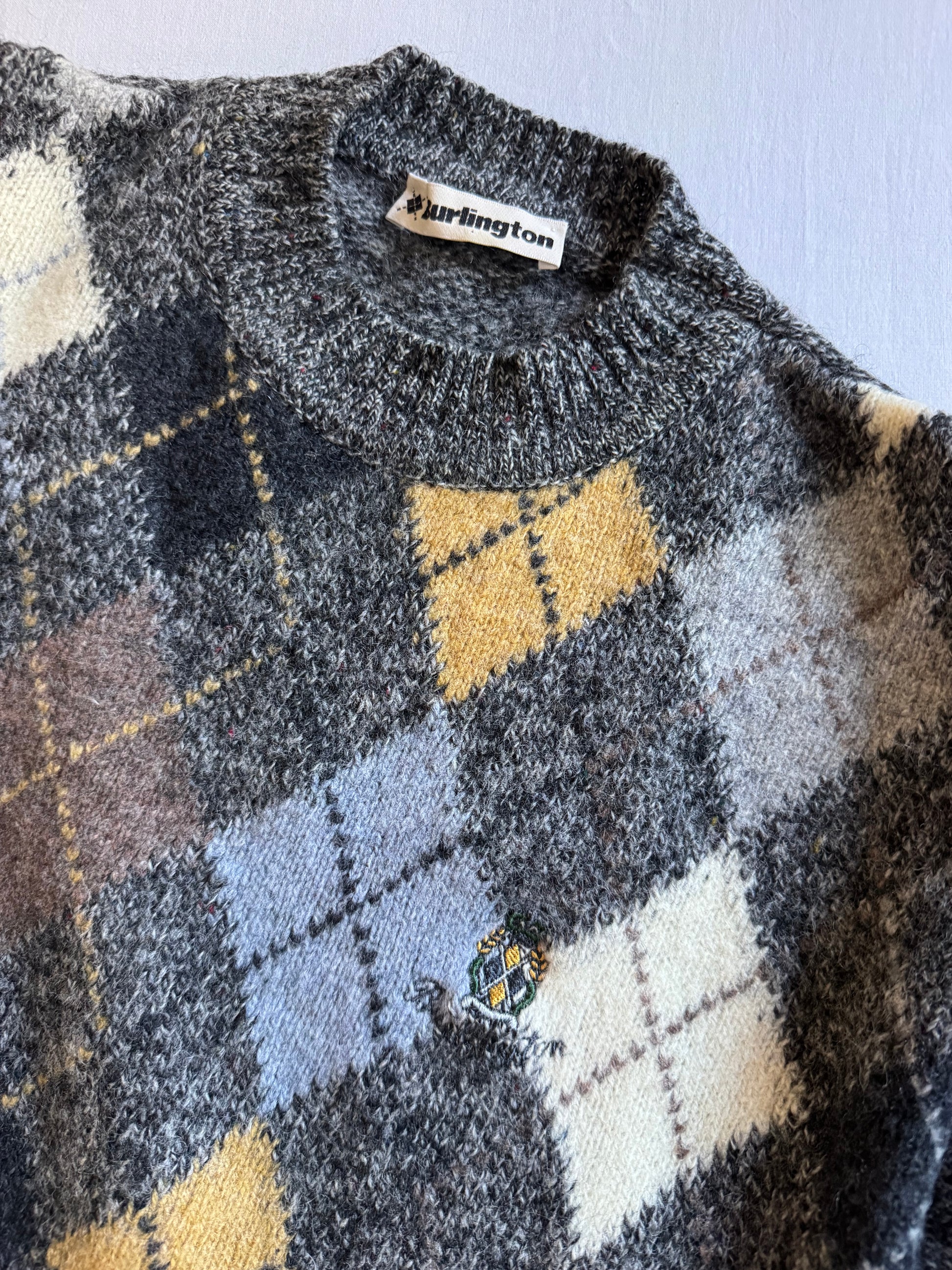 🧶 Pulover vintage Burlington cu model argyle – mărimea L (Made in Italy)